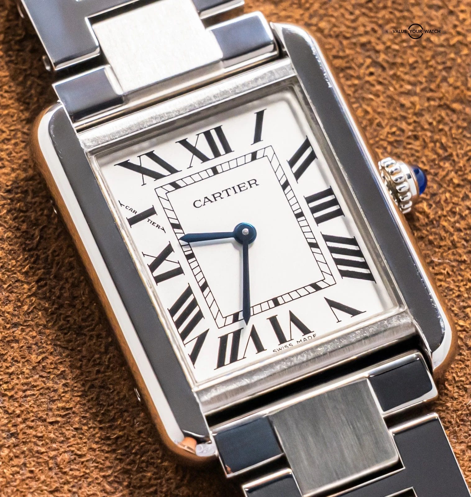 The watch is in phenomenal condition with minimal wear, nothing notable. Do excuse dust/lint/fingerprints in the pictures from the photography process. This Tank Solo is a classic and iconic piece, one of the most popular pieces ever made for women! Ready to be on wrist.