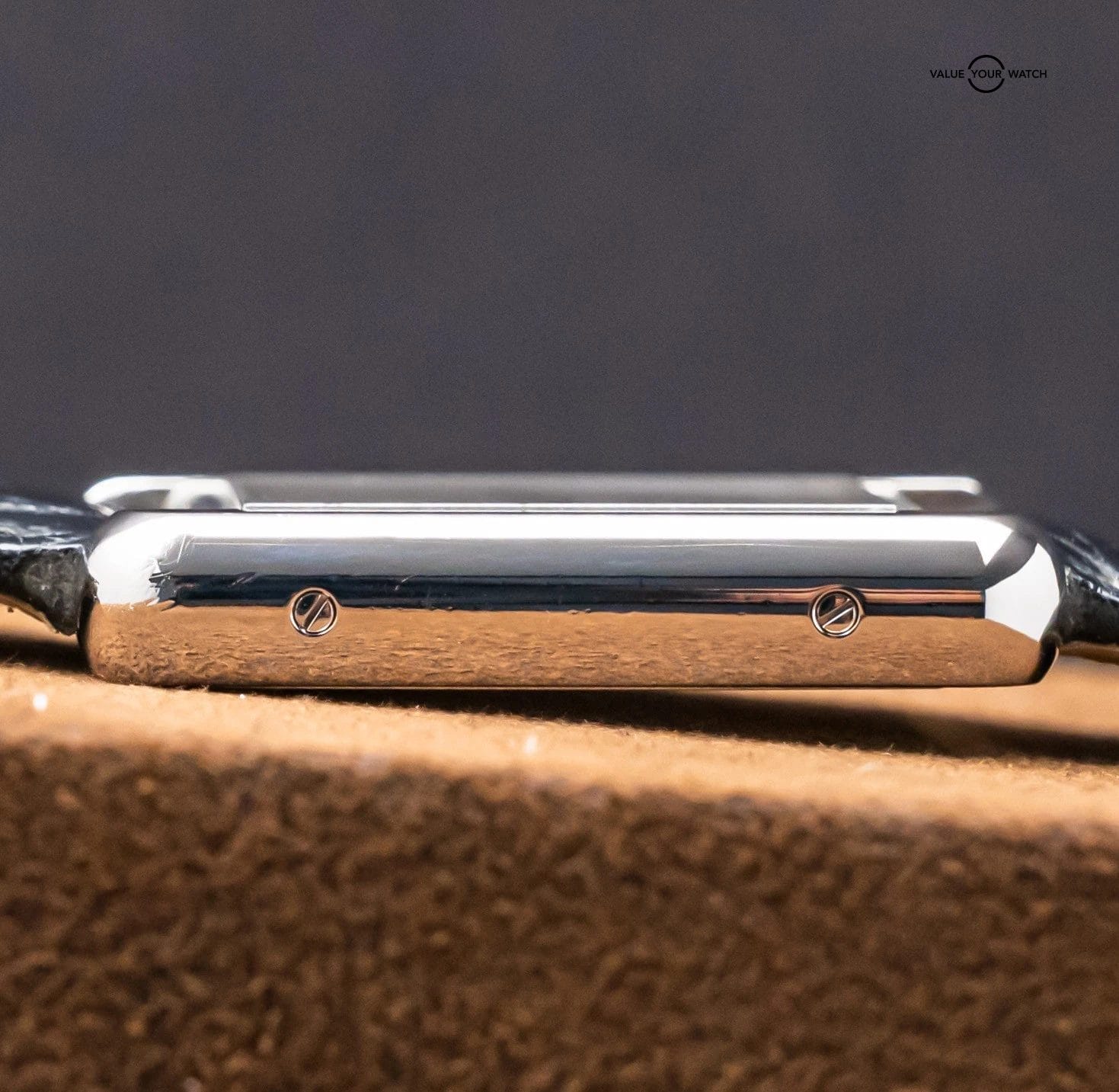 STRIKING Cartier Tank Solo Small Model 31 mm in Stainless Steel with Silver Dial on Black Cartier Leather! Arrives as watch only and was originally sold at Cartier in August 2016. This Tank Solo is a classic and iconic piece, one of the most popular pieces ever made for women!