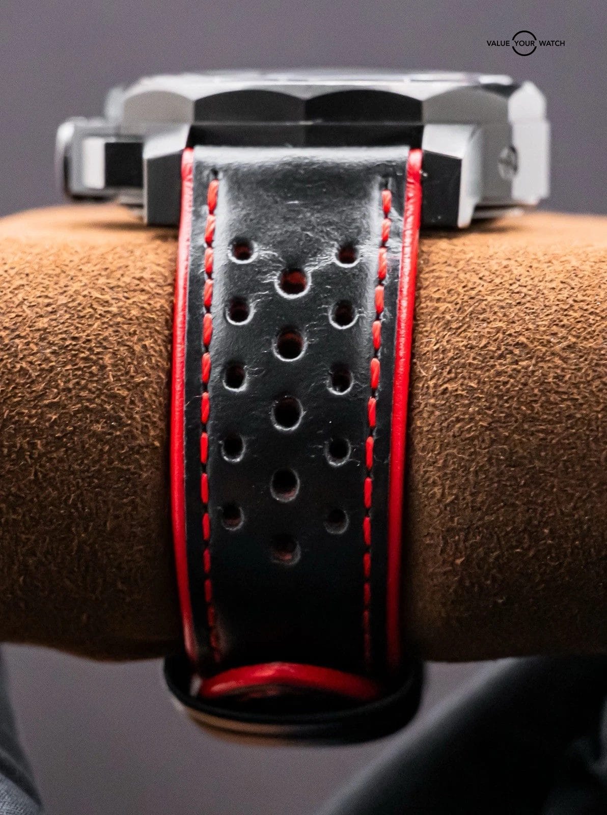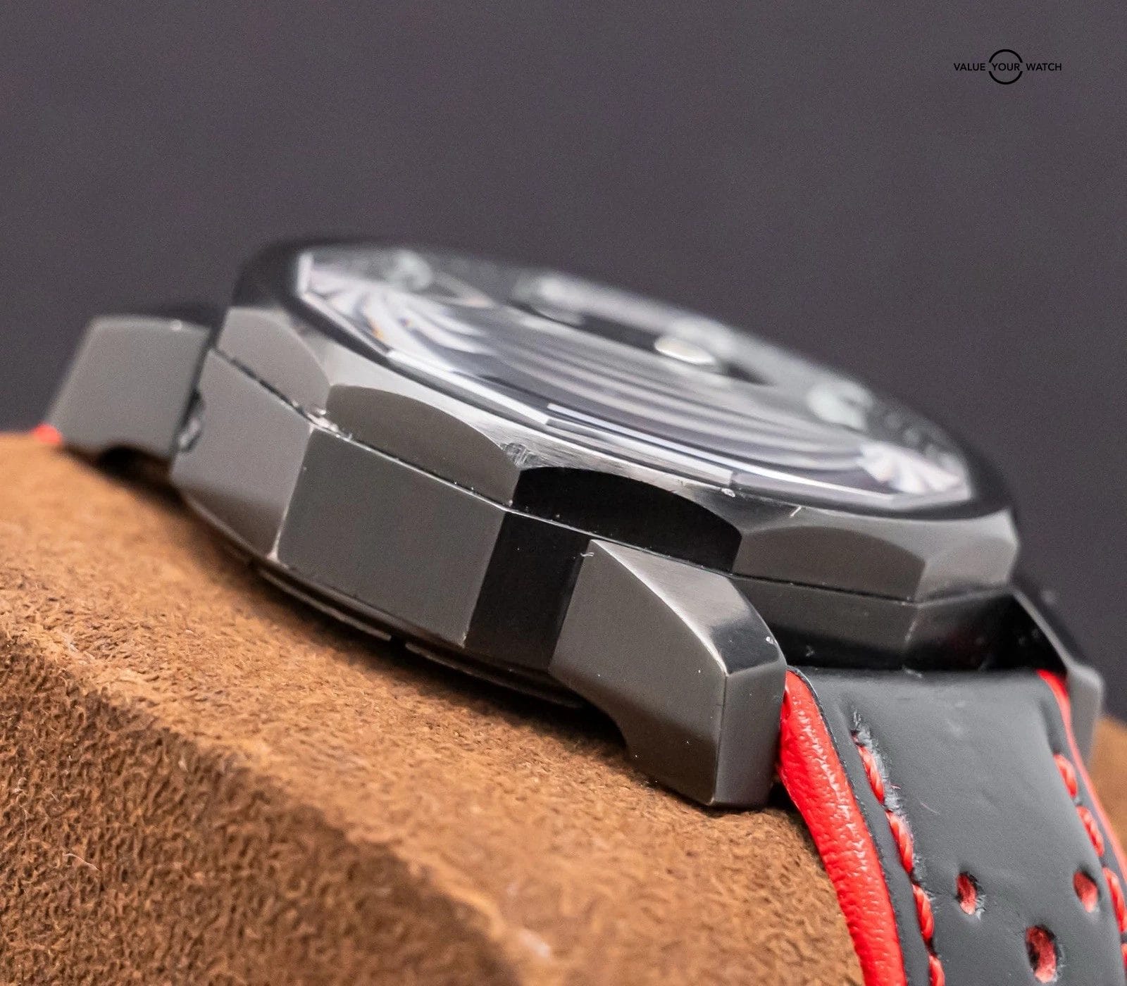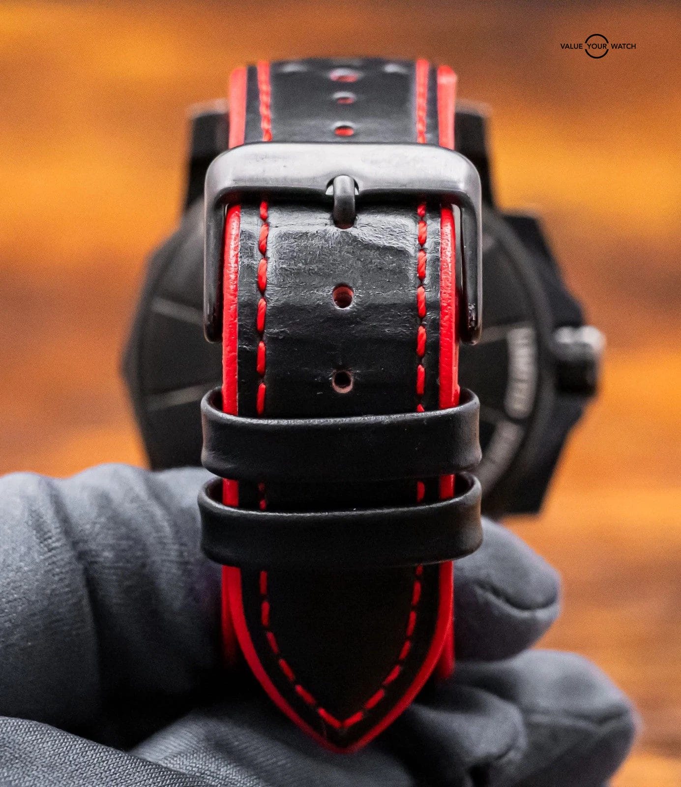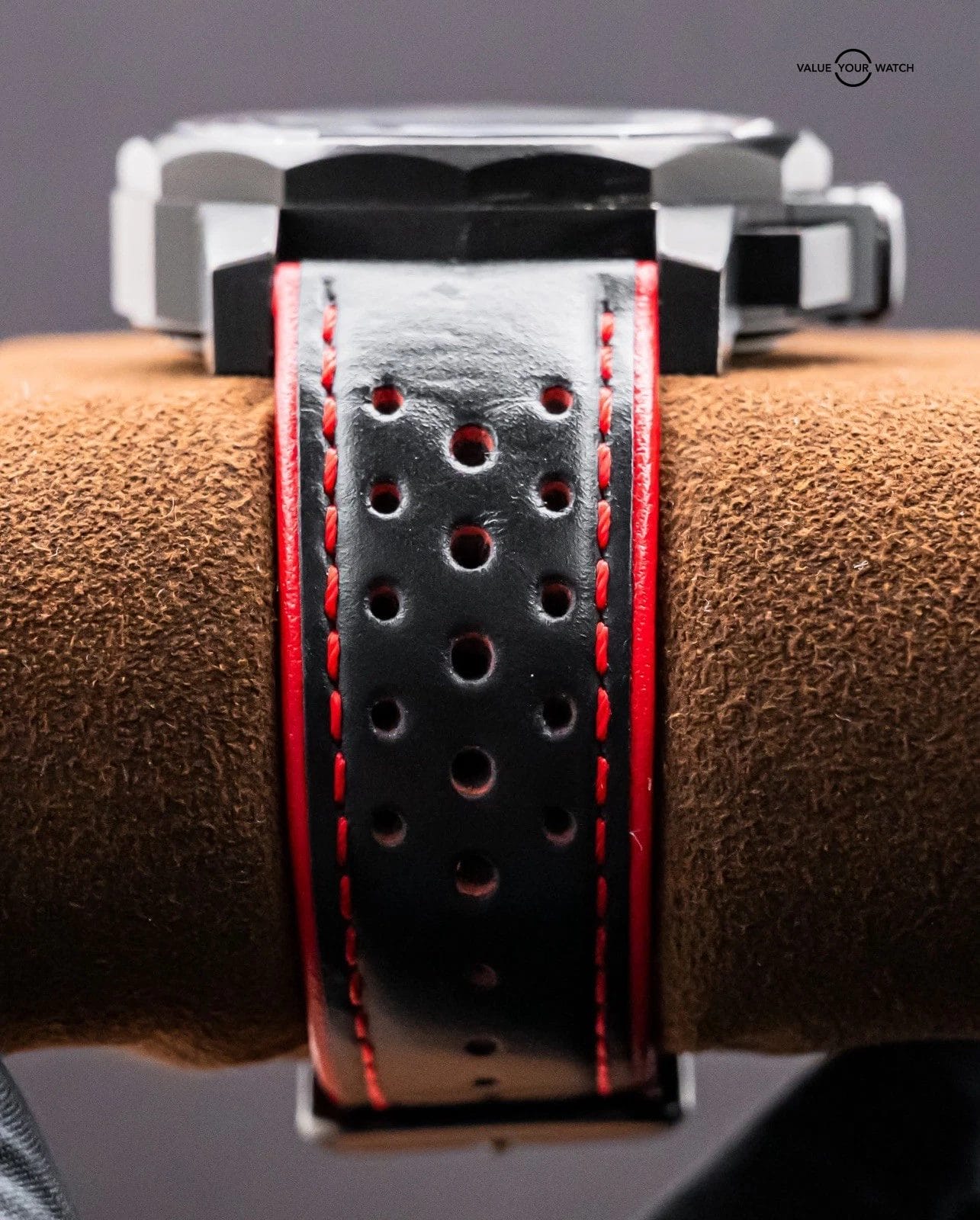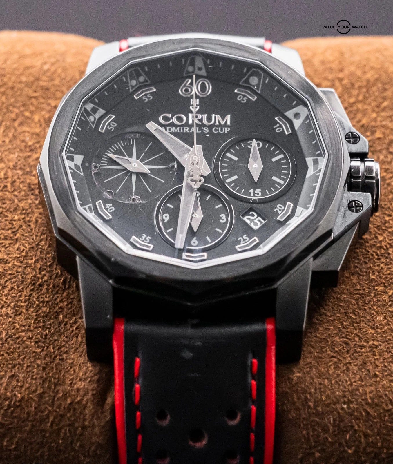 STRIKING Corum Admiral’s Cup 44 mm in Stainless Steel PVD with Black Dial on Aftermarket Black & Red Leather! Arrives as watch only and was recently FULLY SERVICED at my watchmaker in April 2025, a huge value-add. A lot of value for the money and is stunning on wrist!