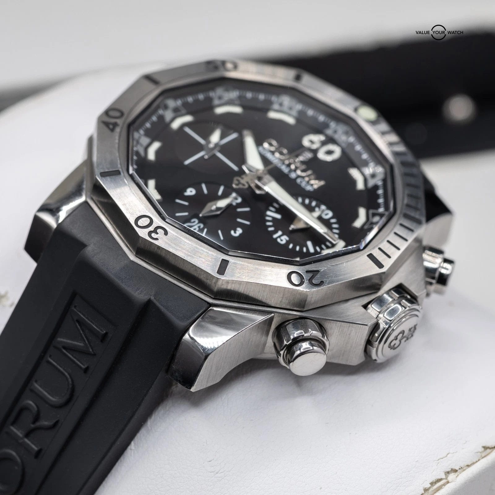Up for sale here is an amazing example of the Corum Admiral’s Cup, cased in solid titanium, this one feels absolutely fantastic on the wrist. Between the 12 sided bezel and the nautical flag indices, there really is no other watch that looks like this! Ref. 753.451.04/0371 AN22.