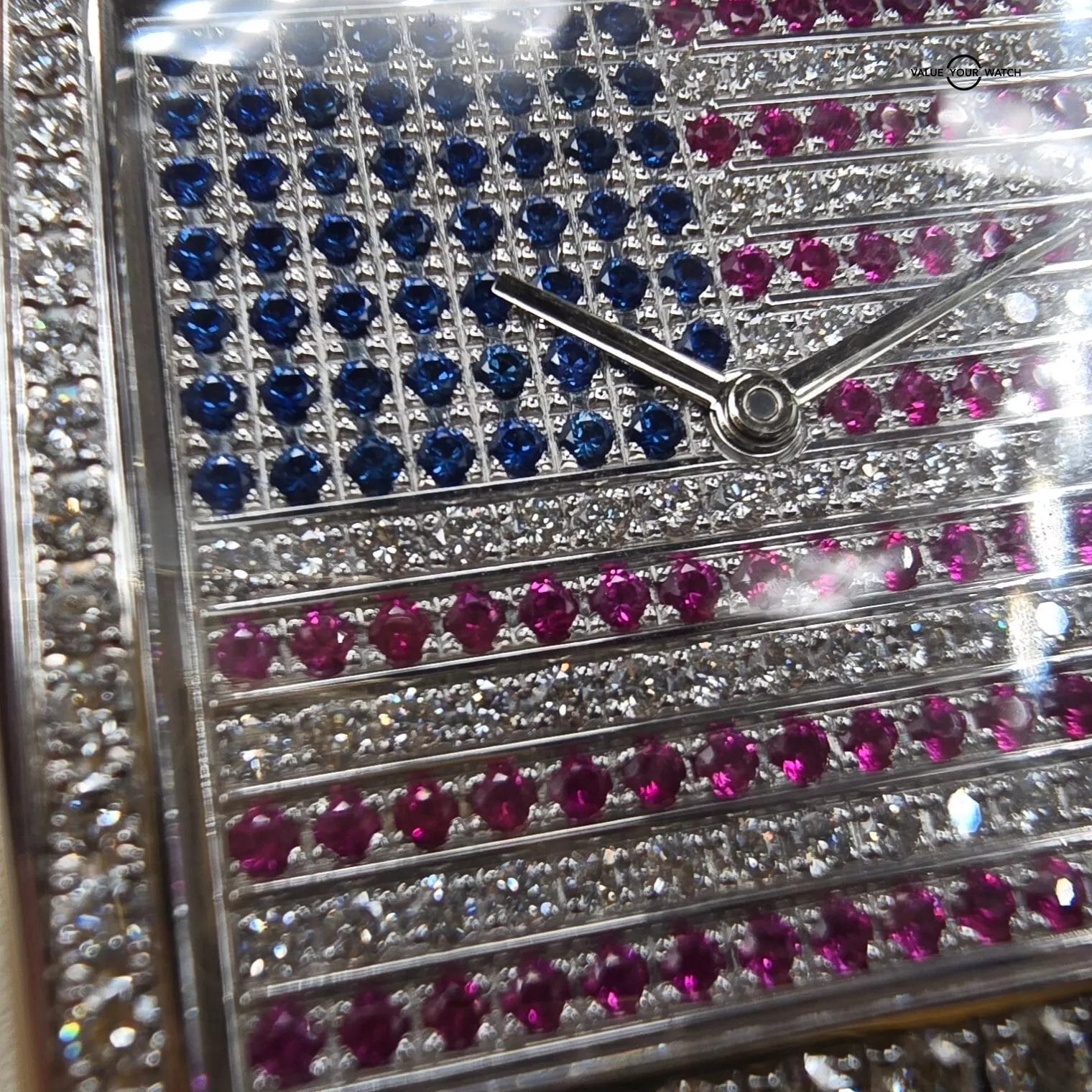 For sale here is an incredible timepiece by Corum. Cased in white gold and sporting an assortment of diamonds, rubies, and sapphires, This watch is absolutely perfect for your next rally, parade, or July 4th party!