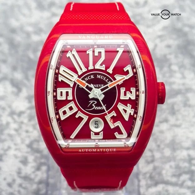 Franck Muller Vanguard Beach Red V 41 SC DT BEACH — bold red tones, curved case and surprisingly light weight