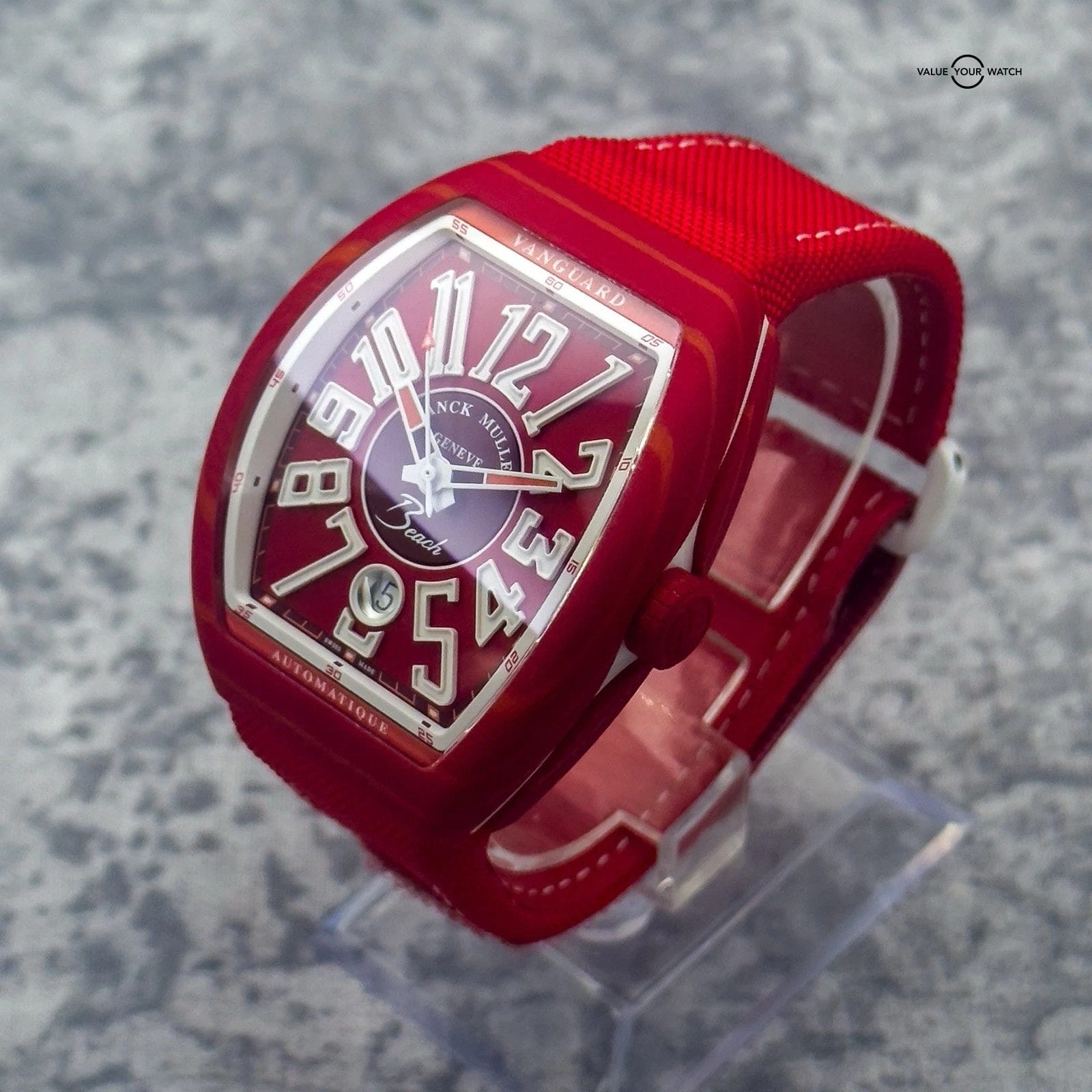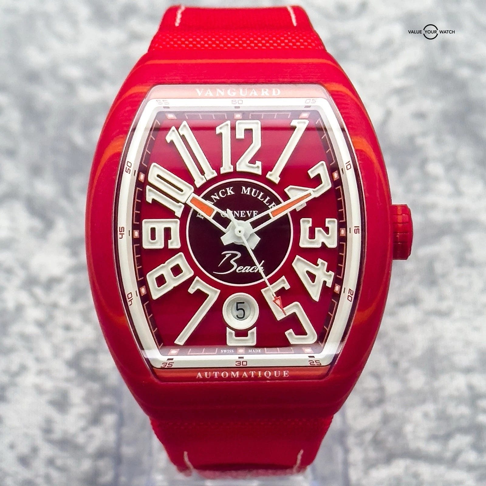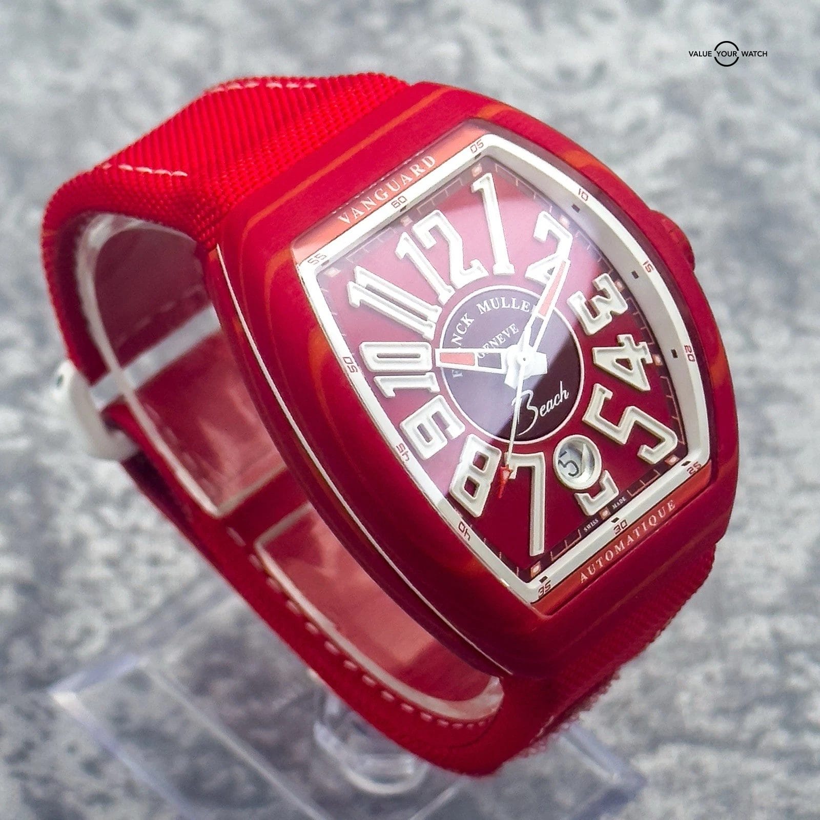 Franck Muller Vanguard Beach Red V 41 SC DT BEACH — bold red tones, curved case and surprisingly light weight