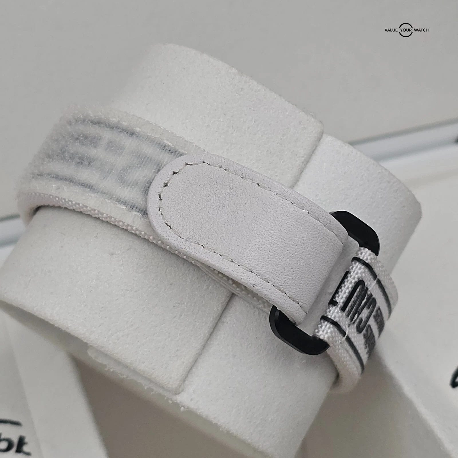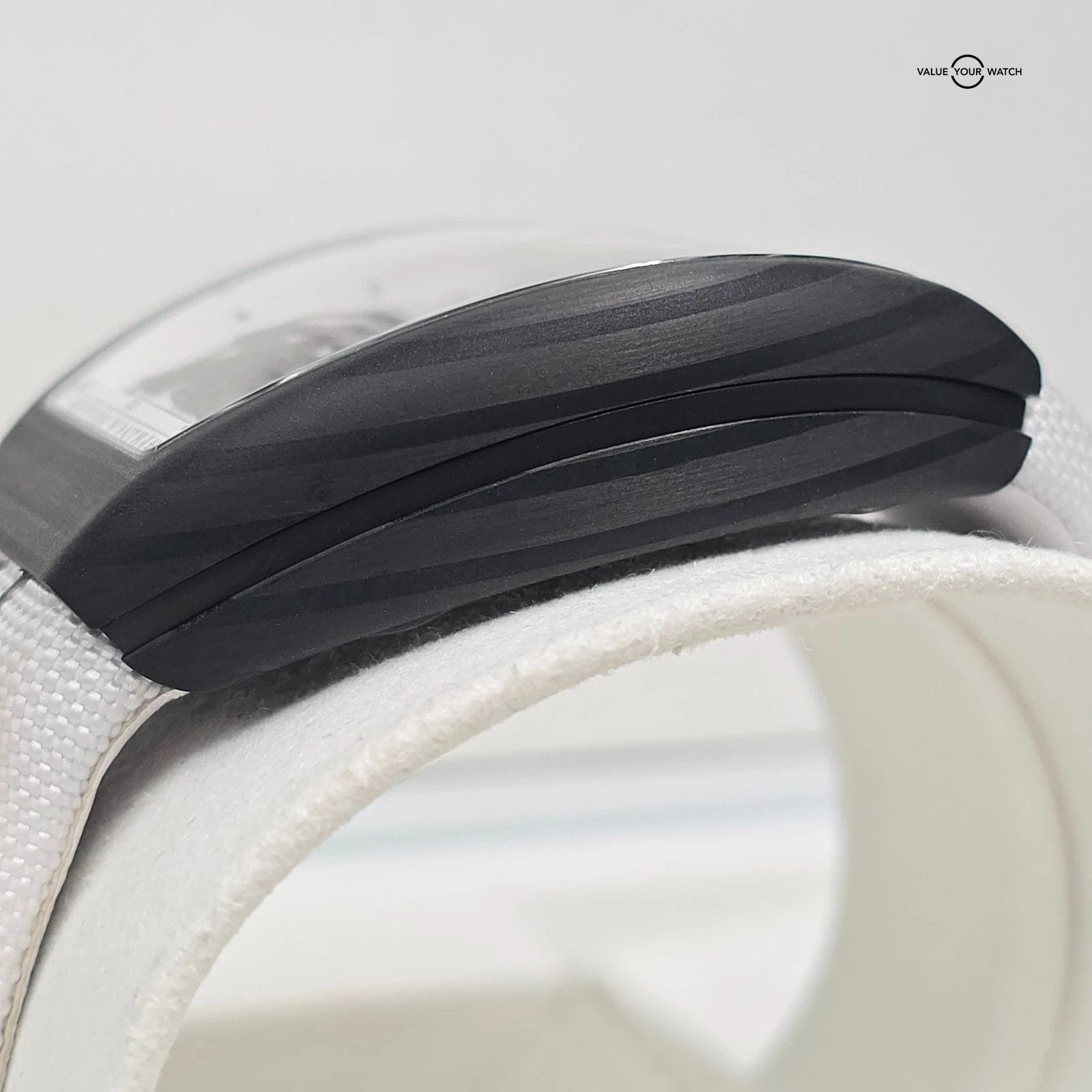Not too sure what to write about this watch- it basically sells itself! Good contrast with the white nylon canvas strap against the black carbon composite case; a better look than most white/black watches ever can pull off.