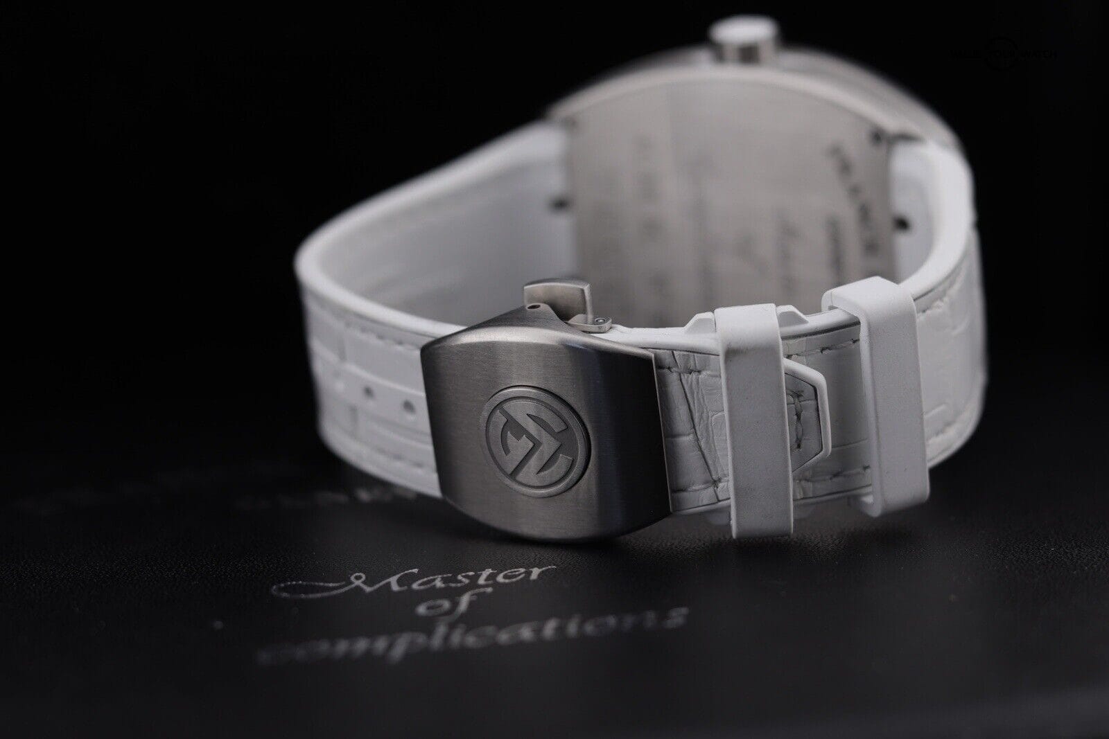 The Franck Muller Vanguard White Men’s Watch V45SCDT is a modern embodiment of Franck Muller’s pioneering spirit in horology. With its bold and distinctive design, this timepiece seamlessly combines contemporary aesthetics with the brand’s dedication to watchmaking excellence.