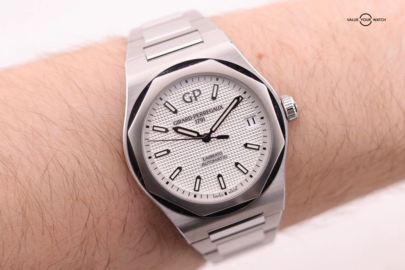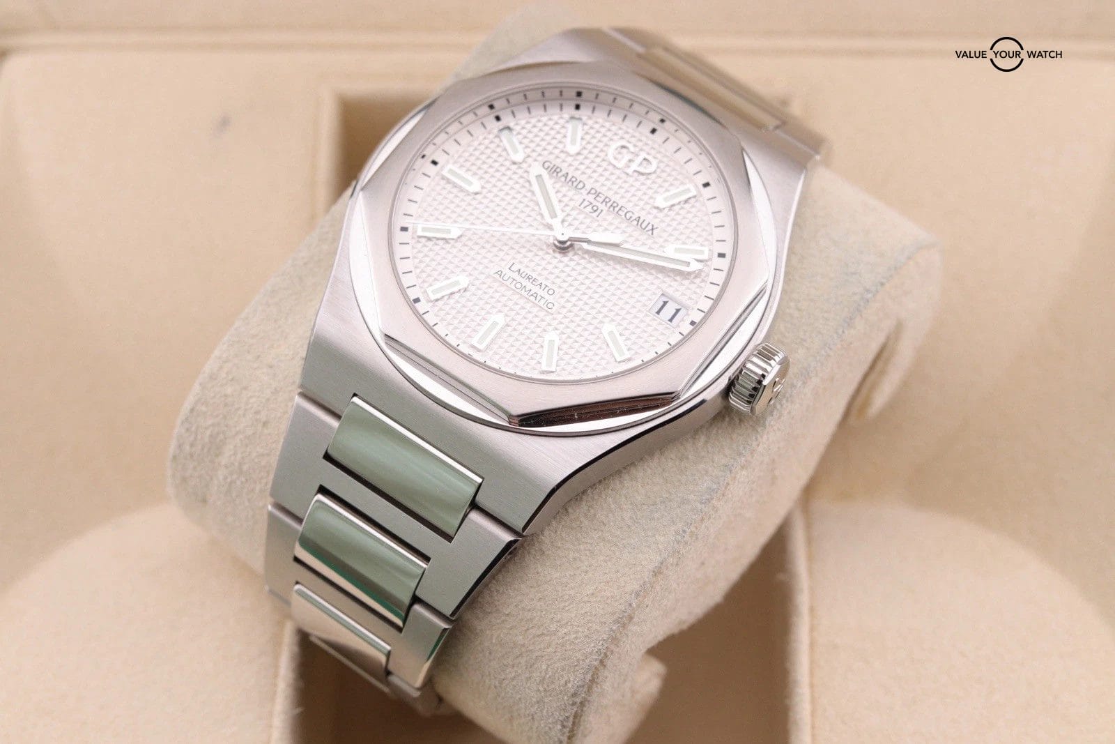 Specification: Girard-Perregaux Laureato 81010-11-131-11A White Dial 42MM Box & Paper