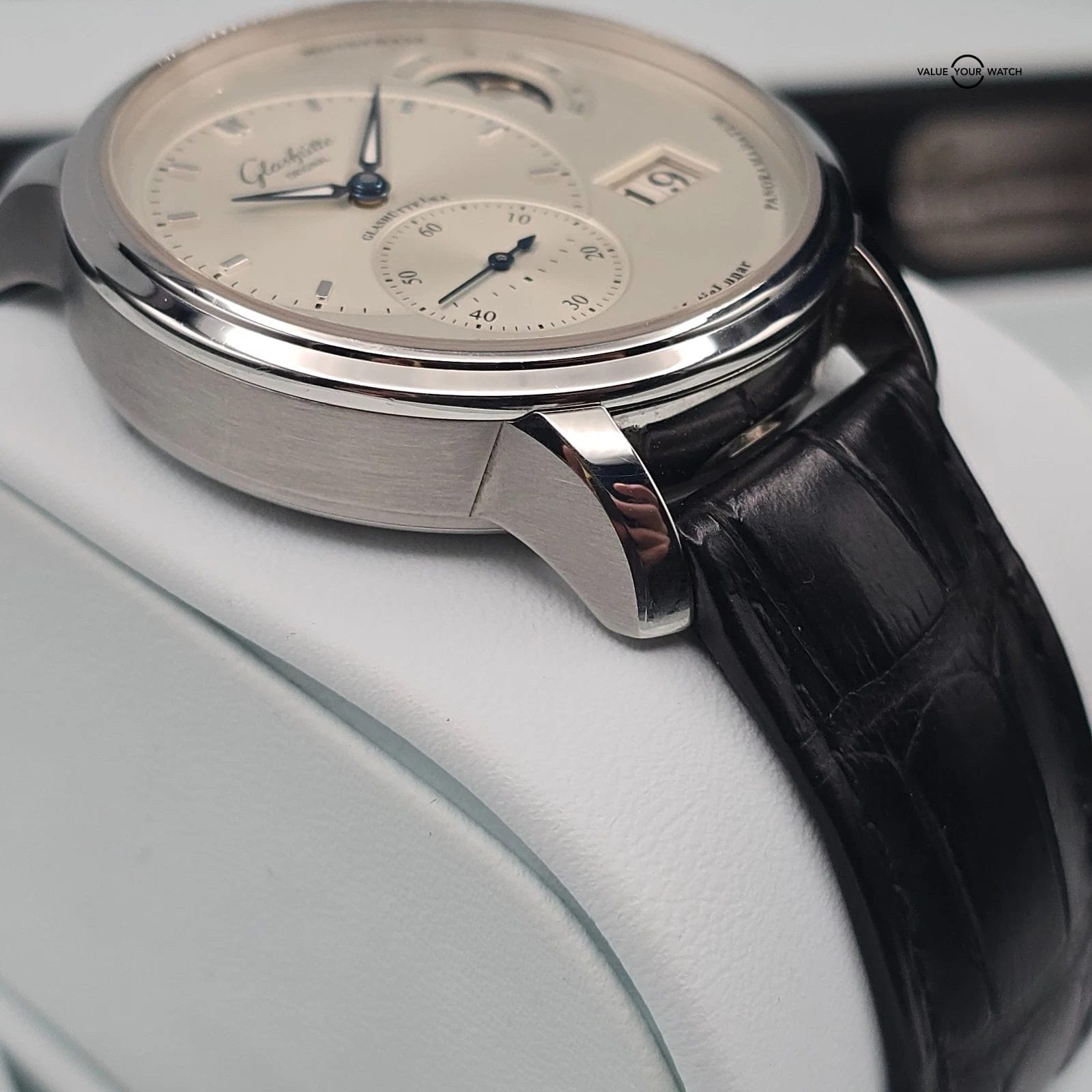 Specification: Glashutte Original PanomaticLunar moonphase in 40mm steel, box and papers!