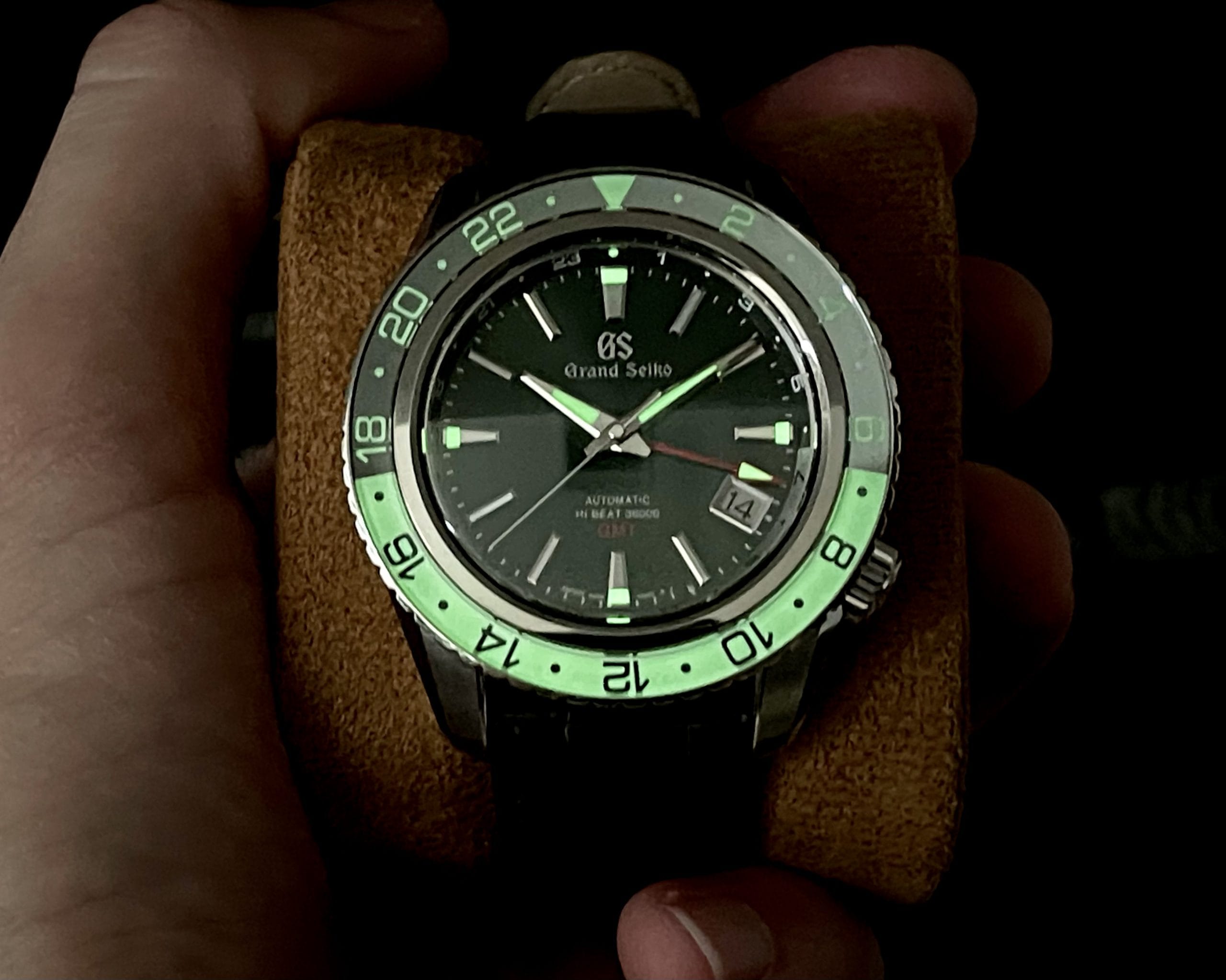 Up for sale is my stunning green dial Grand Seiko Triple Time GMT. With the 10 beat per second movement like what you get on a Zenith El Primero, sapphire capped and fully lumed bezel like you’d get on a Blancpain Fifty Fathoms, and the phenomenal dial design GS is known for, this thing really punches above its weight class. Feature the ability to jump the date forward and backwards, plus the option to view not just one but two different time zones, this is a fantastic option for a frequent traveler!