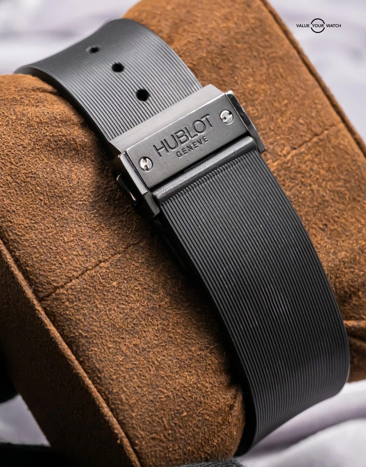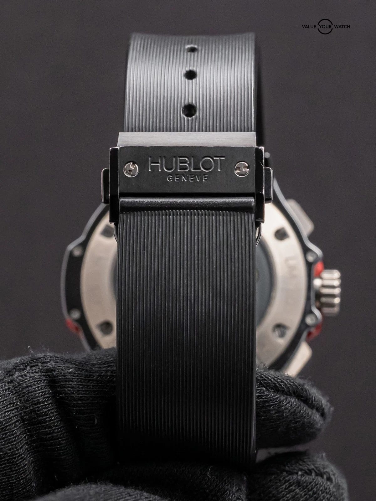 STUNNING Hublot Big Bang 44 Manchester United Limited Edition of 500 in Full Black Ceramic with Black Dial and Black Hublot Structured Rubber! With Red & Yellow Accents including the Red Manchester United Logo at the 3 o’clock, this is the perfect piece for the die hard fan, or for those simply wanting a sick Black & Red piece. Arrives as watch only and is a fantastic value on the secondary market, considering the original MSRP is $18,300. KILLER on wrist!