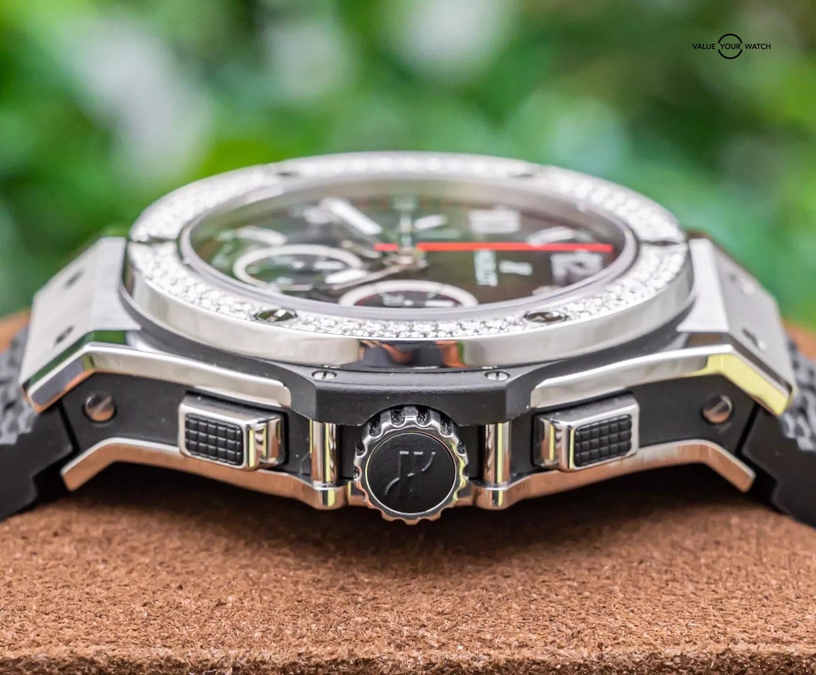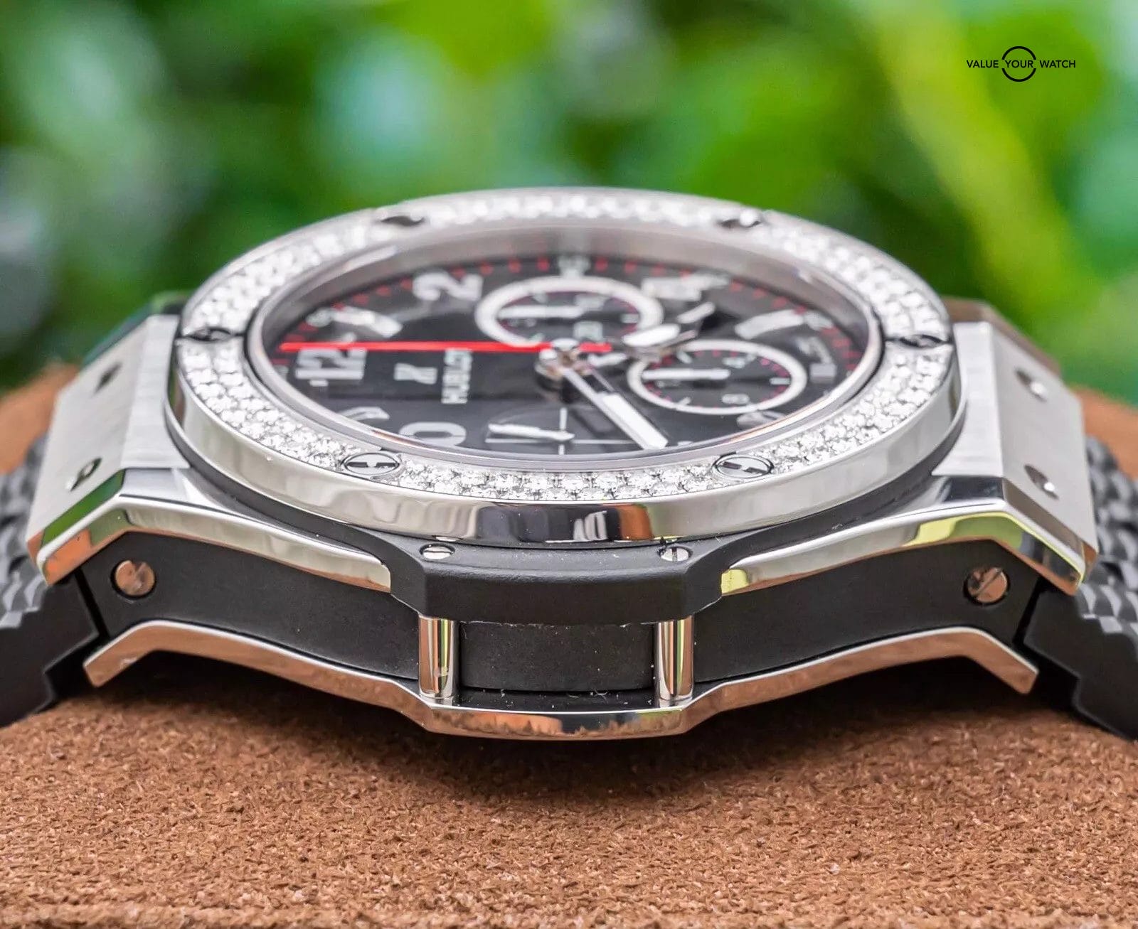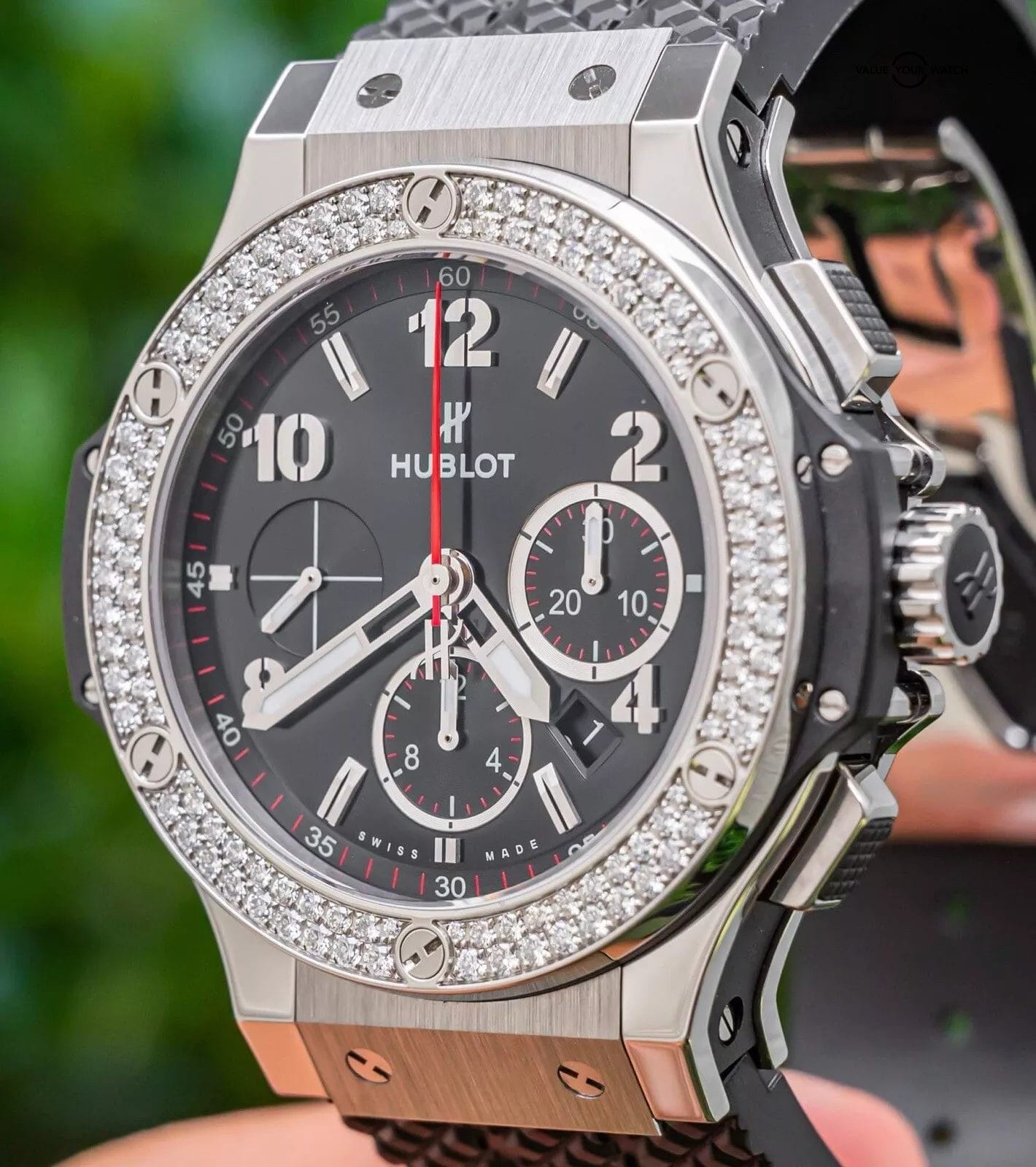 Bezel: Fixed Stainless Steel & 114 Hublot-Set FACTORY Diamonds