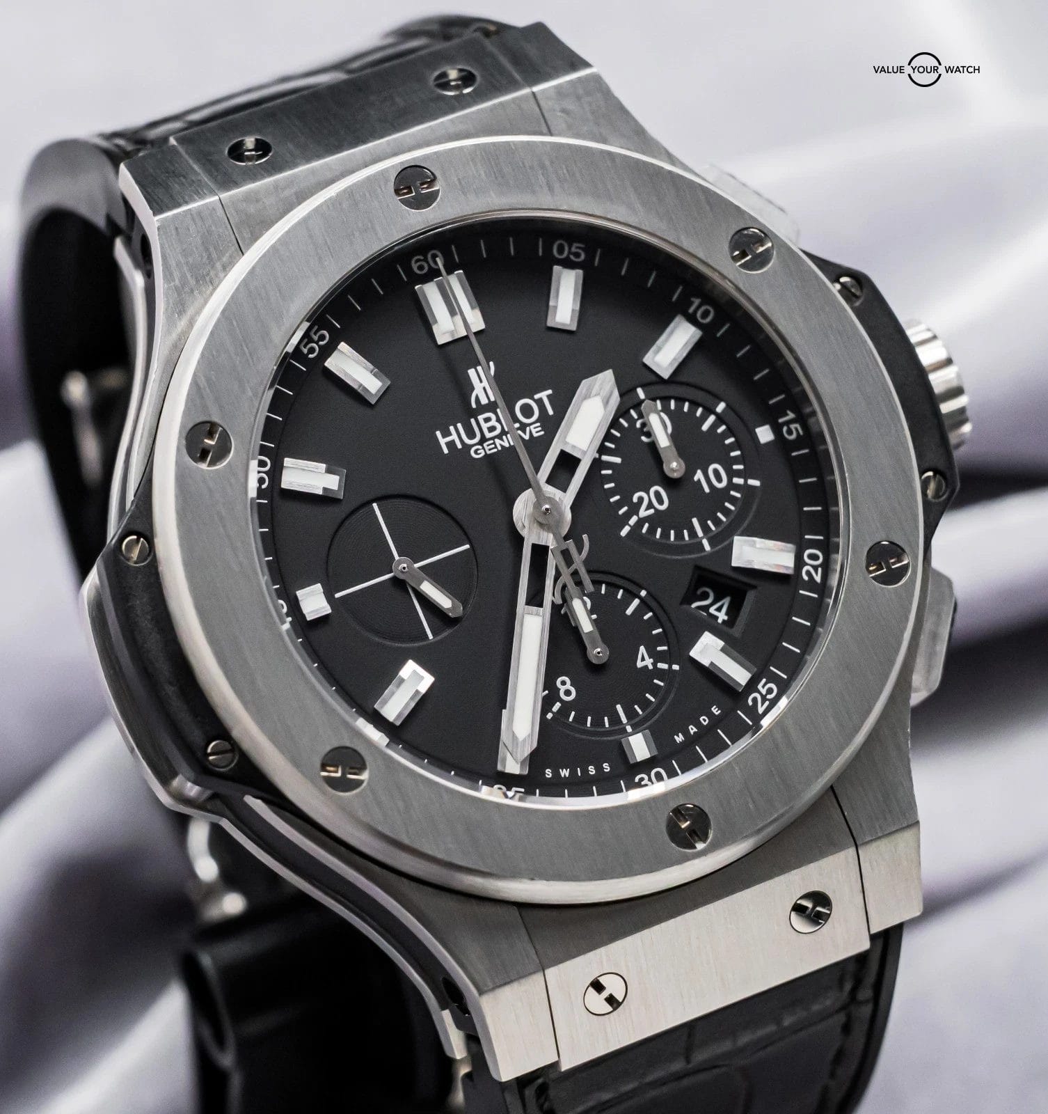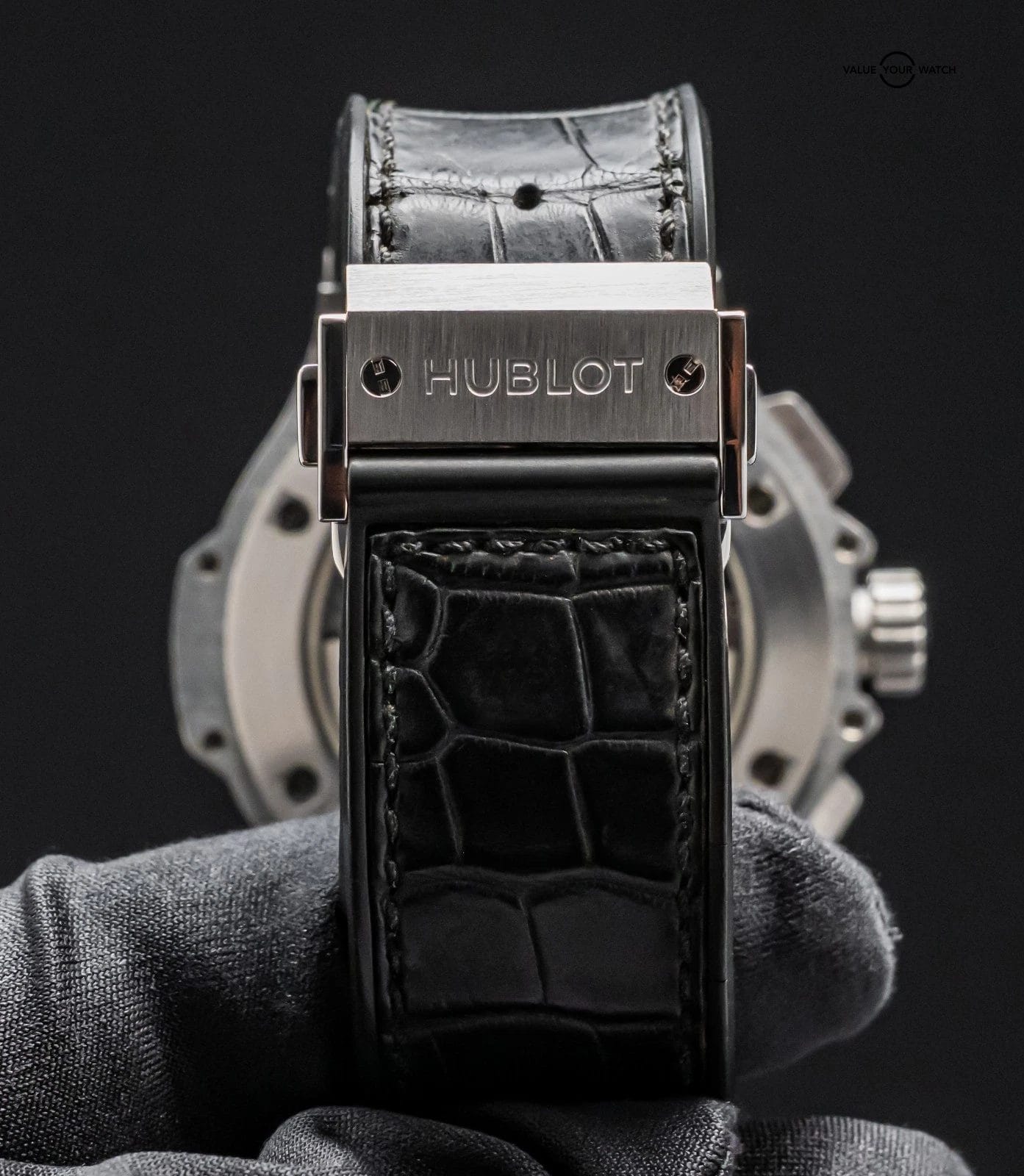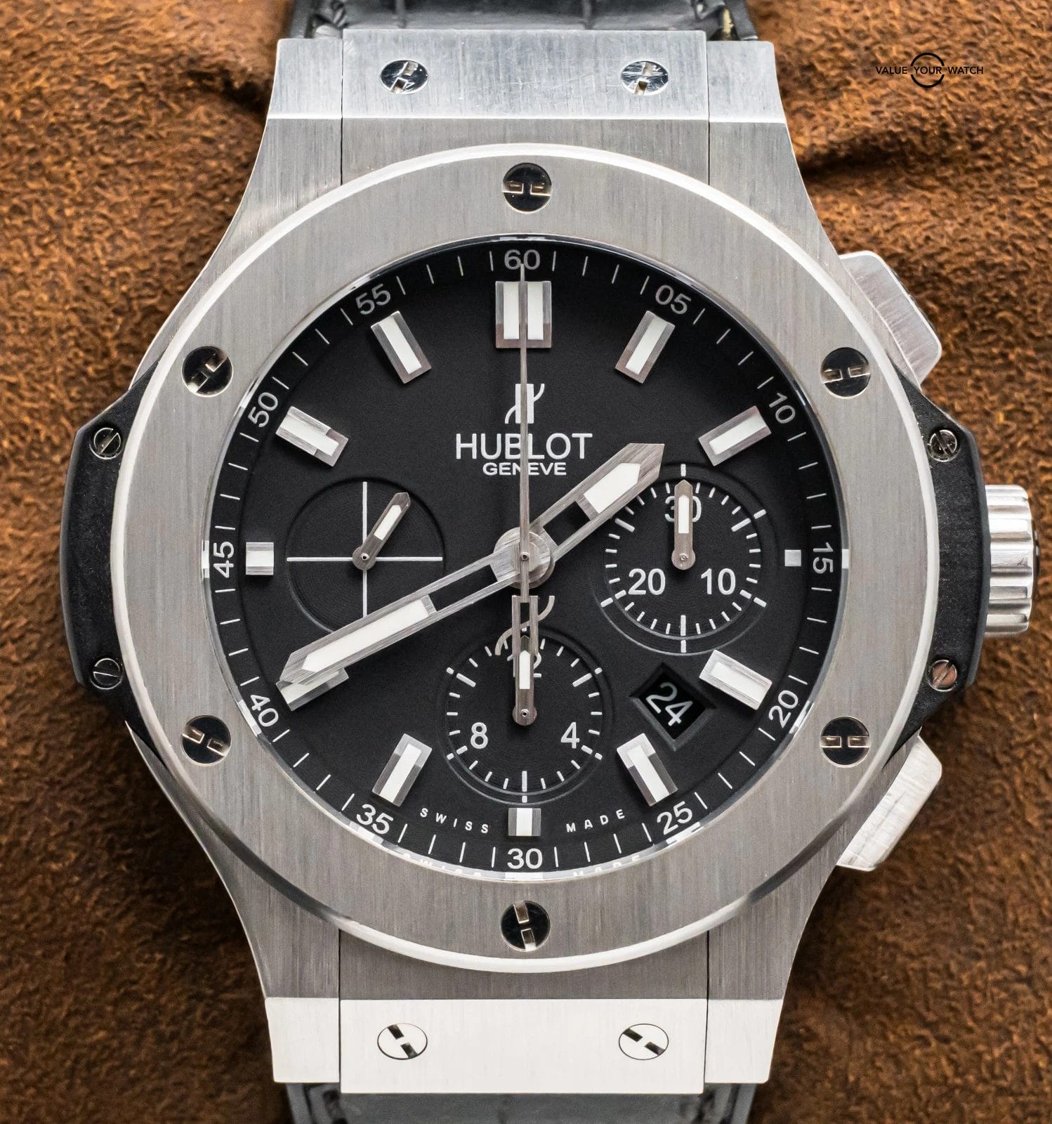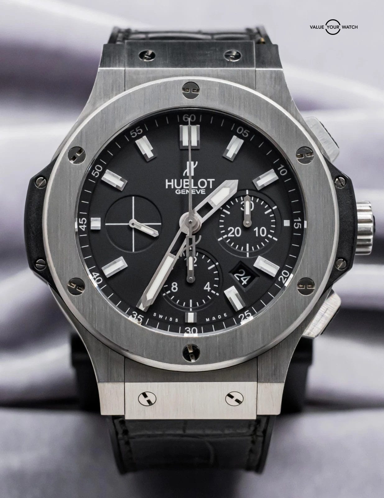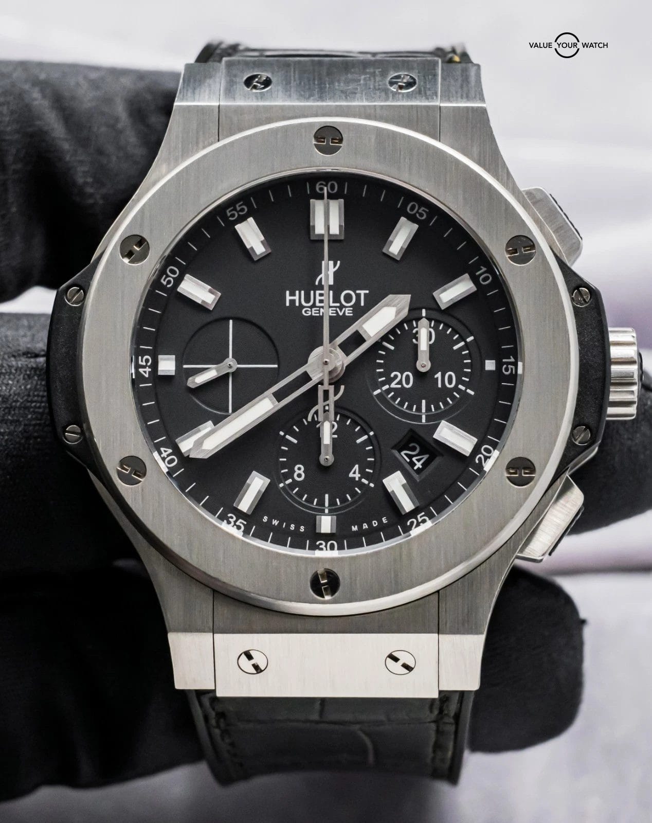 STUNNING Hublot Big Bang 44 Original Steel with Matte Black Dial on Black Hublot Alligator Leather! Arrives with the original Hublot serialized international warranty card. This piece was FULLY SERVICED in November 2024 at my watchmaker, a huge value-add! The brushed stainless steel & matte black dial is what makes this Big Bang unique from other Big Bangs, given this increases the versatility and durability of the watch. It really is a solid Big Bang you can both wear everyday and pair with any colored strap, should you seek to switch it up. The pictures truly don’t do it justice!
