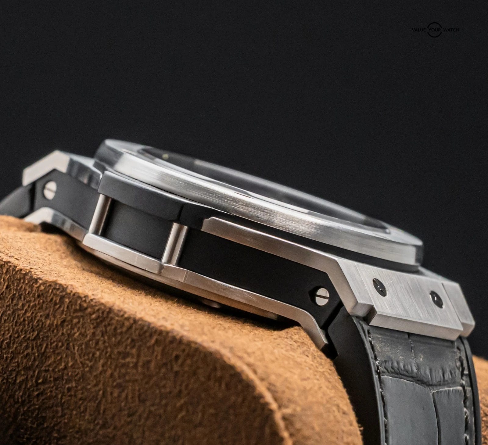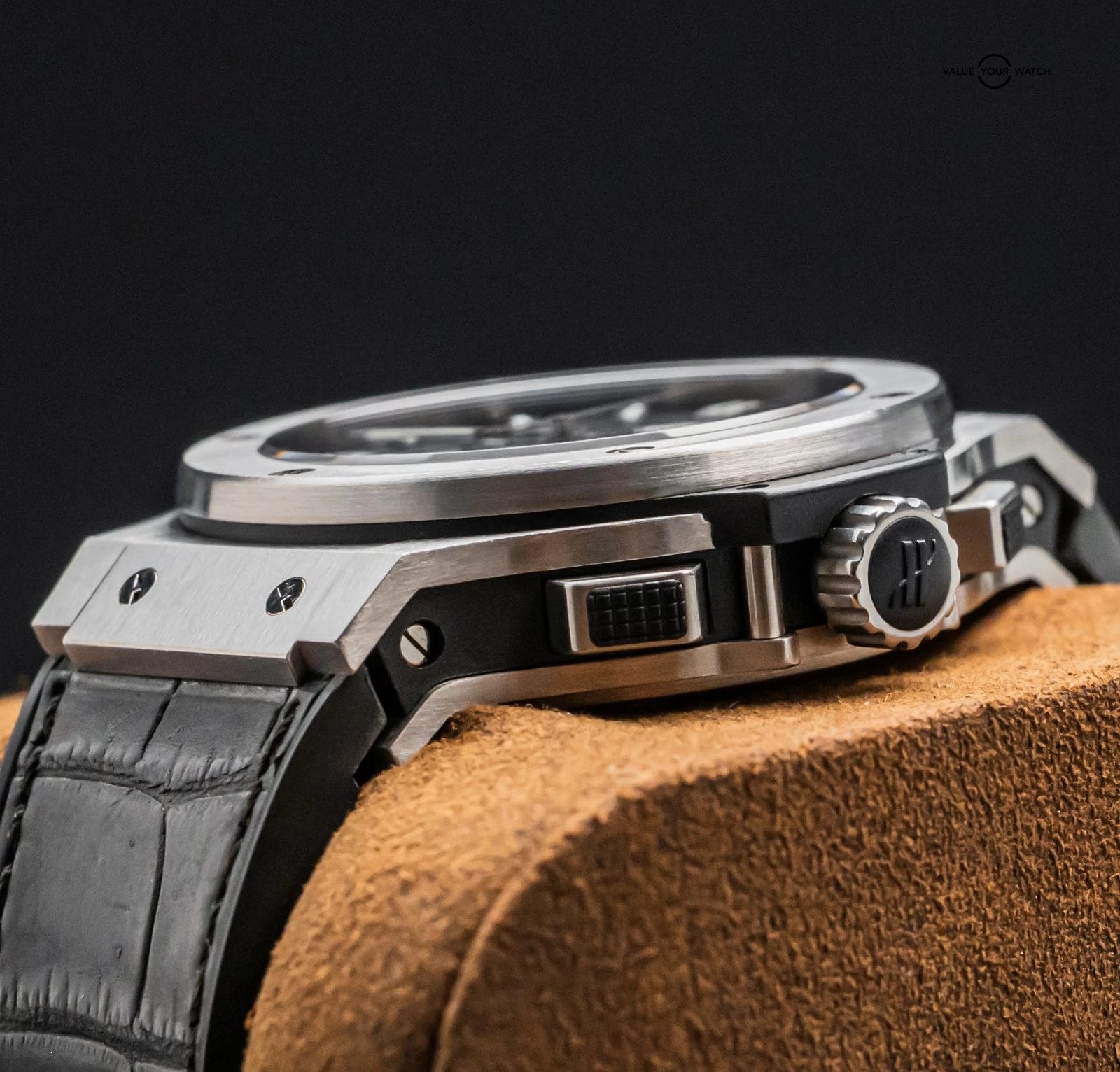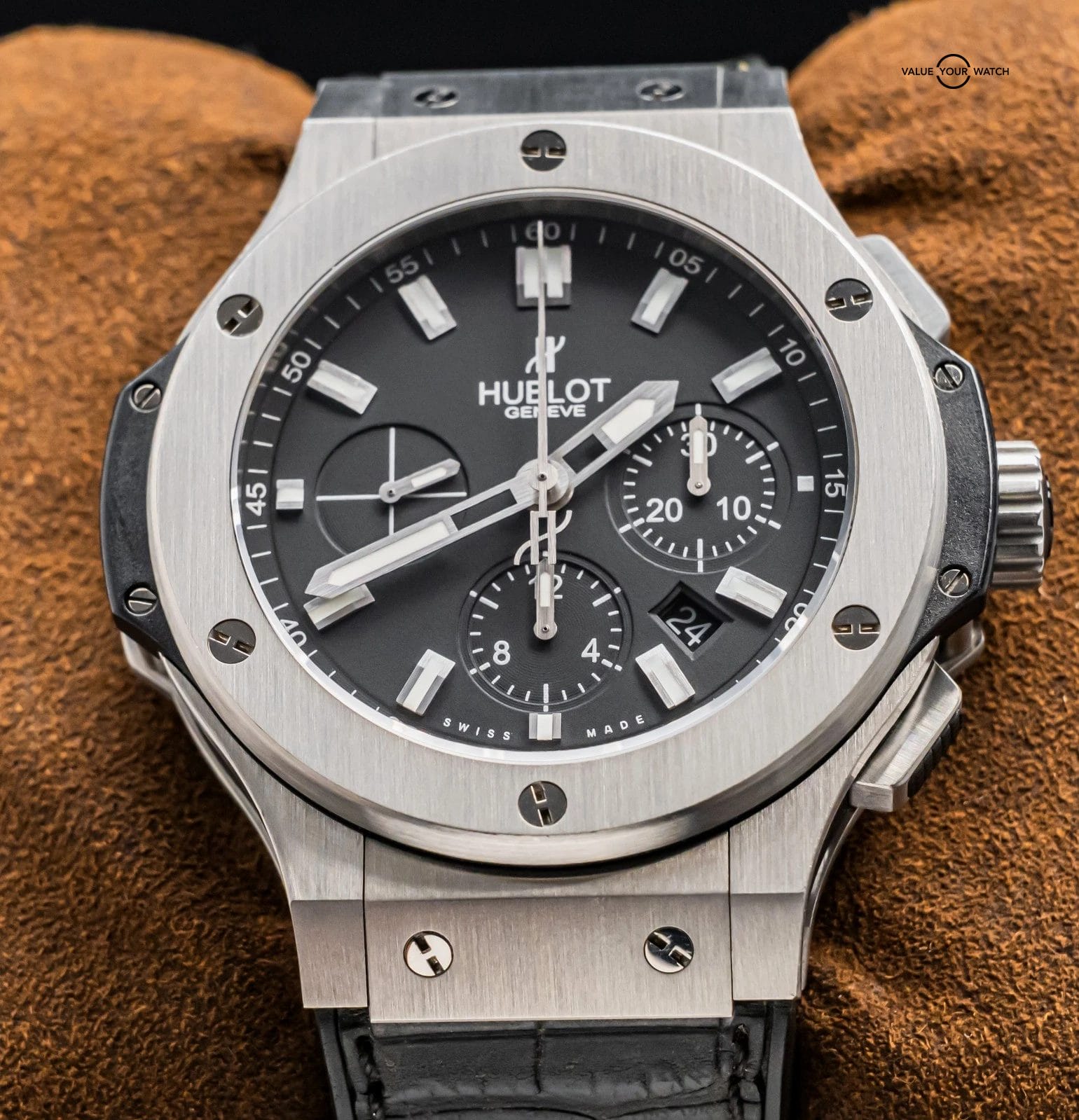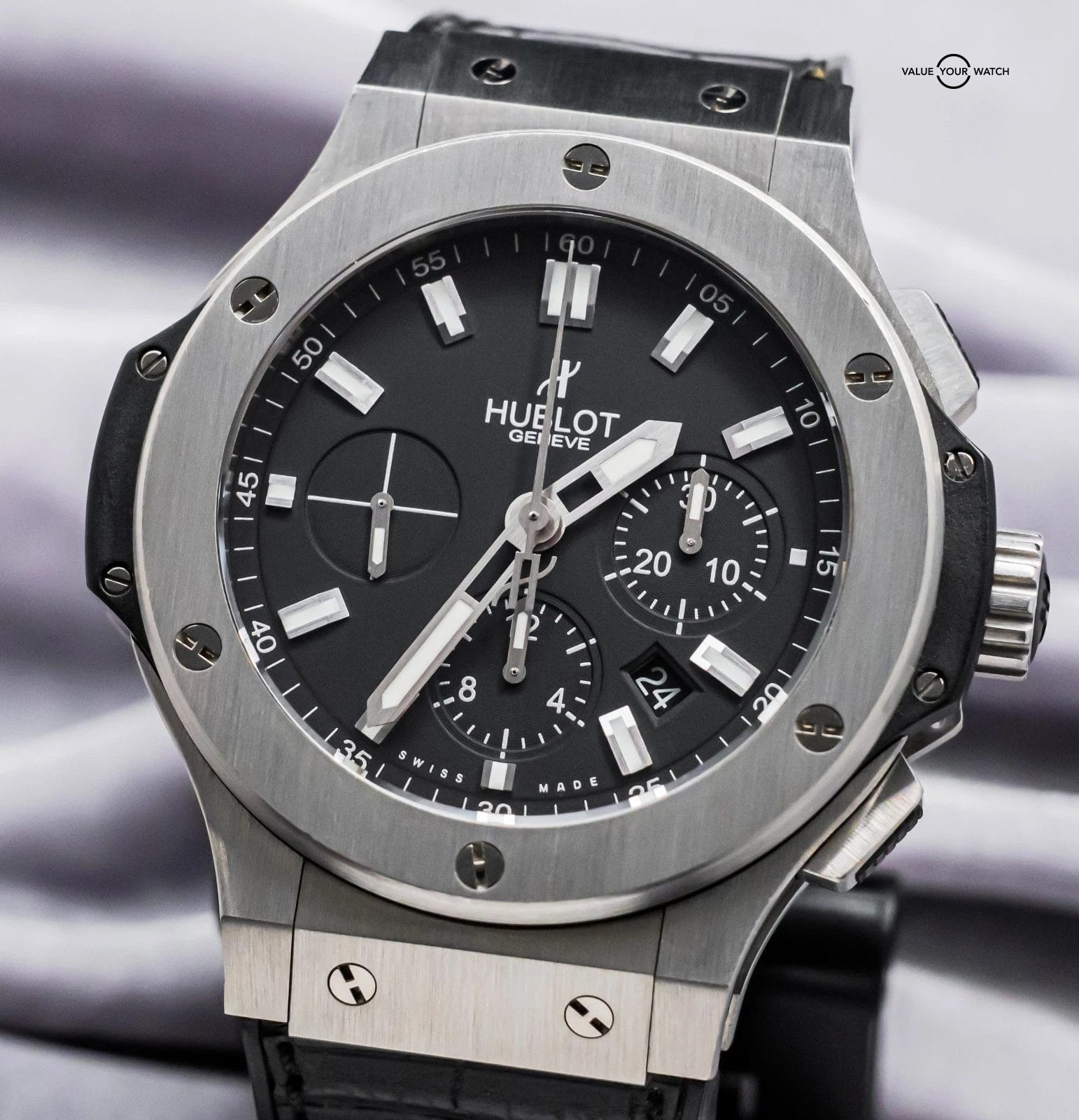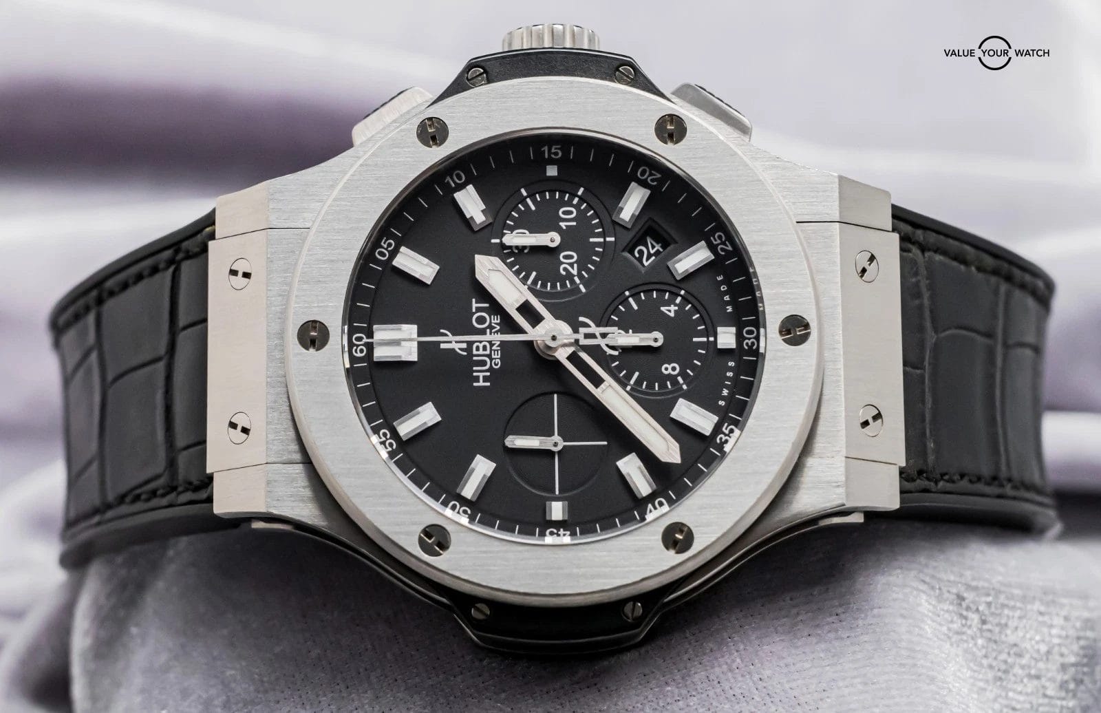 STUNNING Hublot Big Bang 44 Original Steel with Matte Black Dial on Black Hublot Alligator Leather! Arrives with the original Hublot serialized international warranty card. This piece was FULLY SERVICED in November 2024 at my watchmaker, a huge value-add! The brushed stainless steel & matte black dial is what makes this Big Bang unique from other Big Bangs, given this increases the versatility and durability of the watch. It really is a solid Big Bang you can both wear everyday and pair with any colored strap, should you seek to switch it up. The pictures truly don’t do it justice!