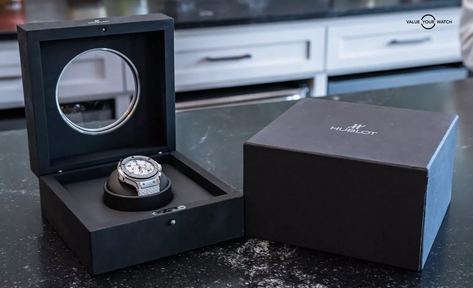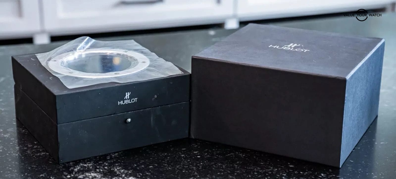 This watch is in great condition with only minor wear, nothing notable. This is the most modern generation of the Big Bang ever created where the dial says “Hublot”, dropping “Geneve” that is used on the older models. The boxes have typical wear (due to the materials Hublot originally used), this is normal. This Big Bang looks fantastic and is ready to be on wrist!