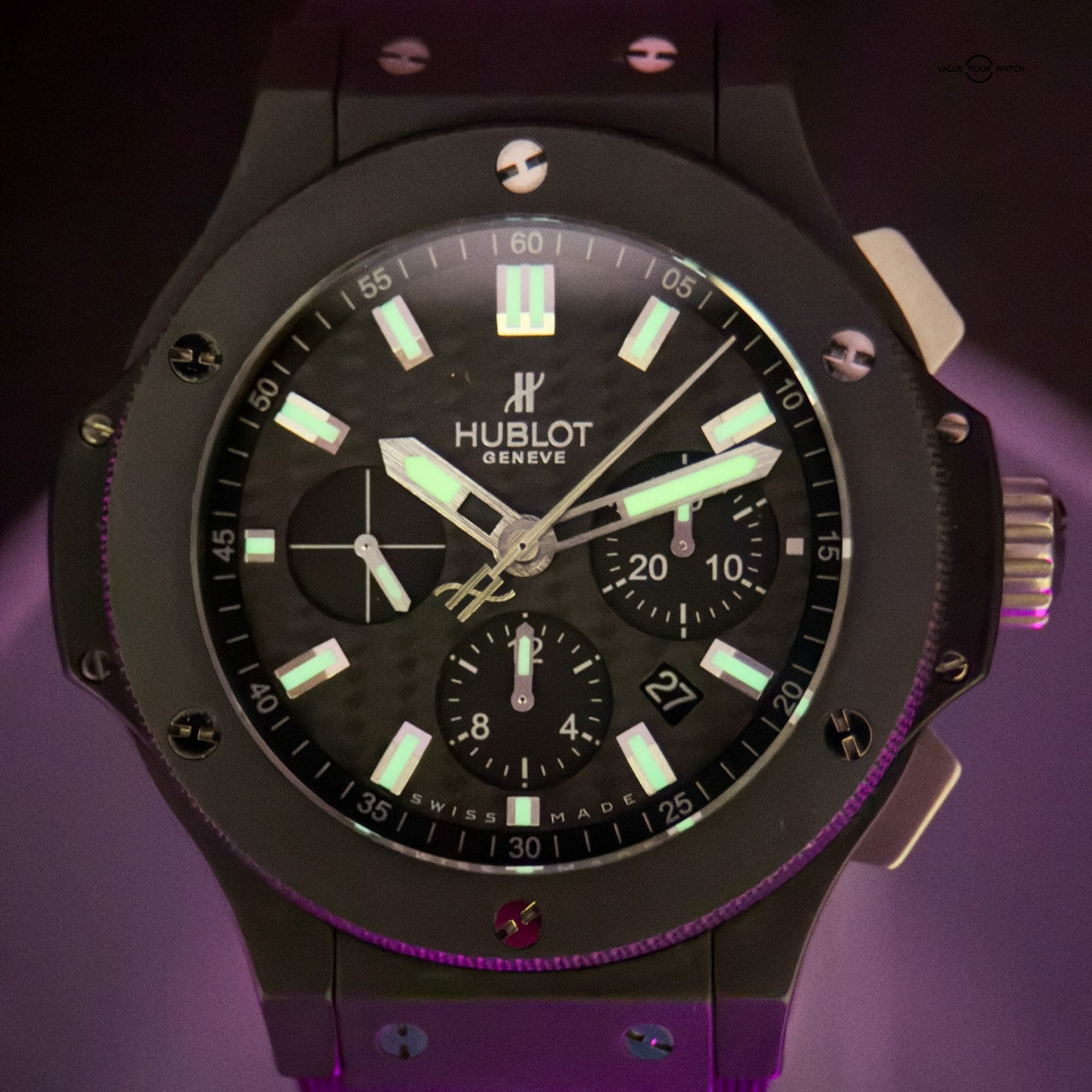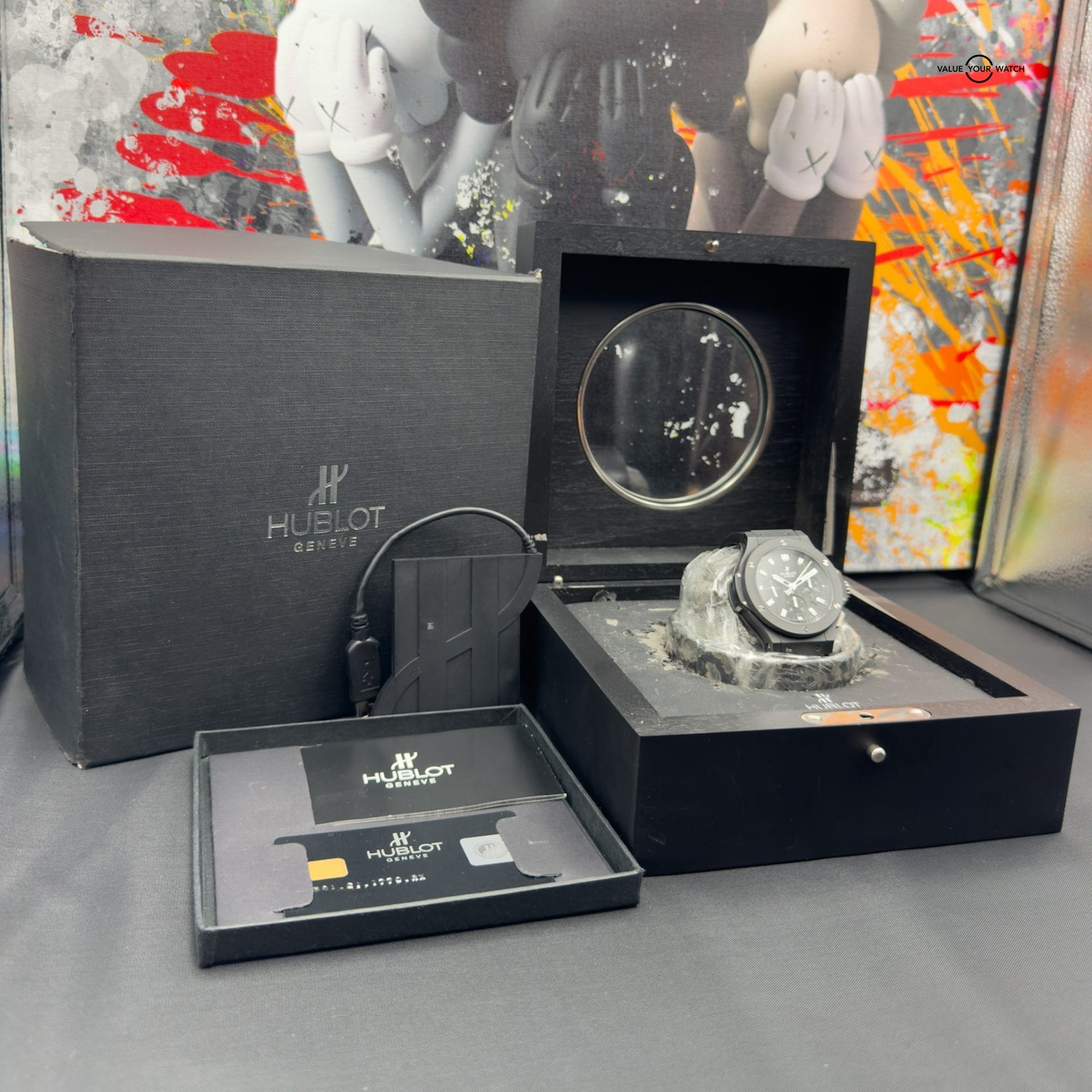 Up for sale is the beautiful Big Bang Black Magic. Watch is in very good condition overall. No major visible marks on the crystal, clasp or case. All complications function as they should.