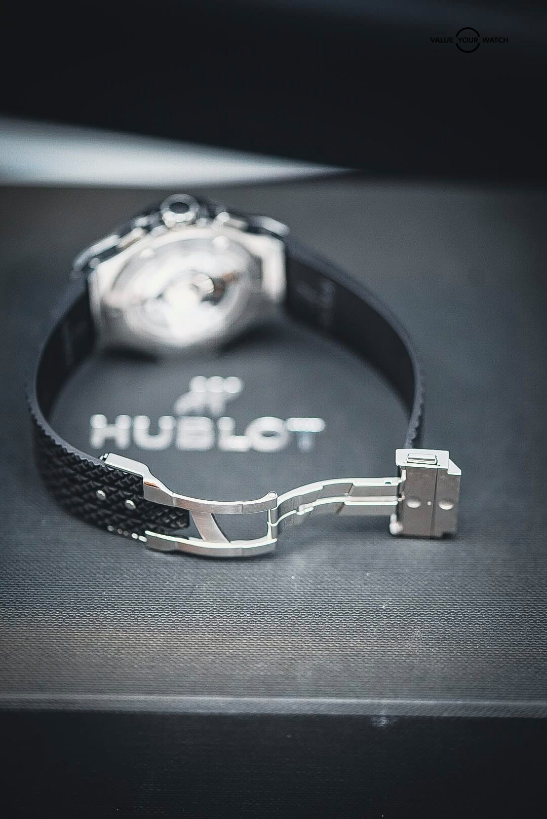 Powered by Hublot’s automatic movement, this Big Bang runs perfectly and delivers reliable everyday performance. The black rubber strap enhances comfort while reinforcing the sporty, modern aesthetic that defines the Big Bang collection.