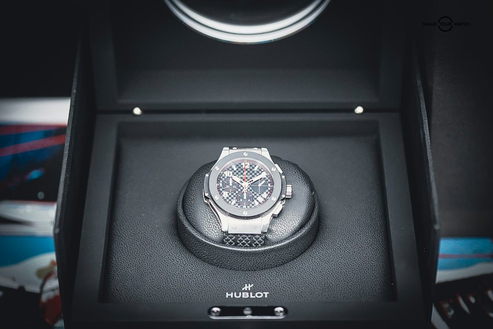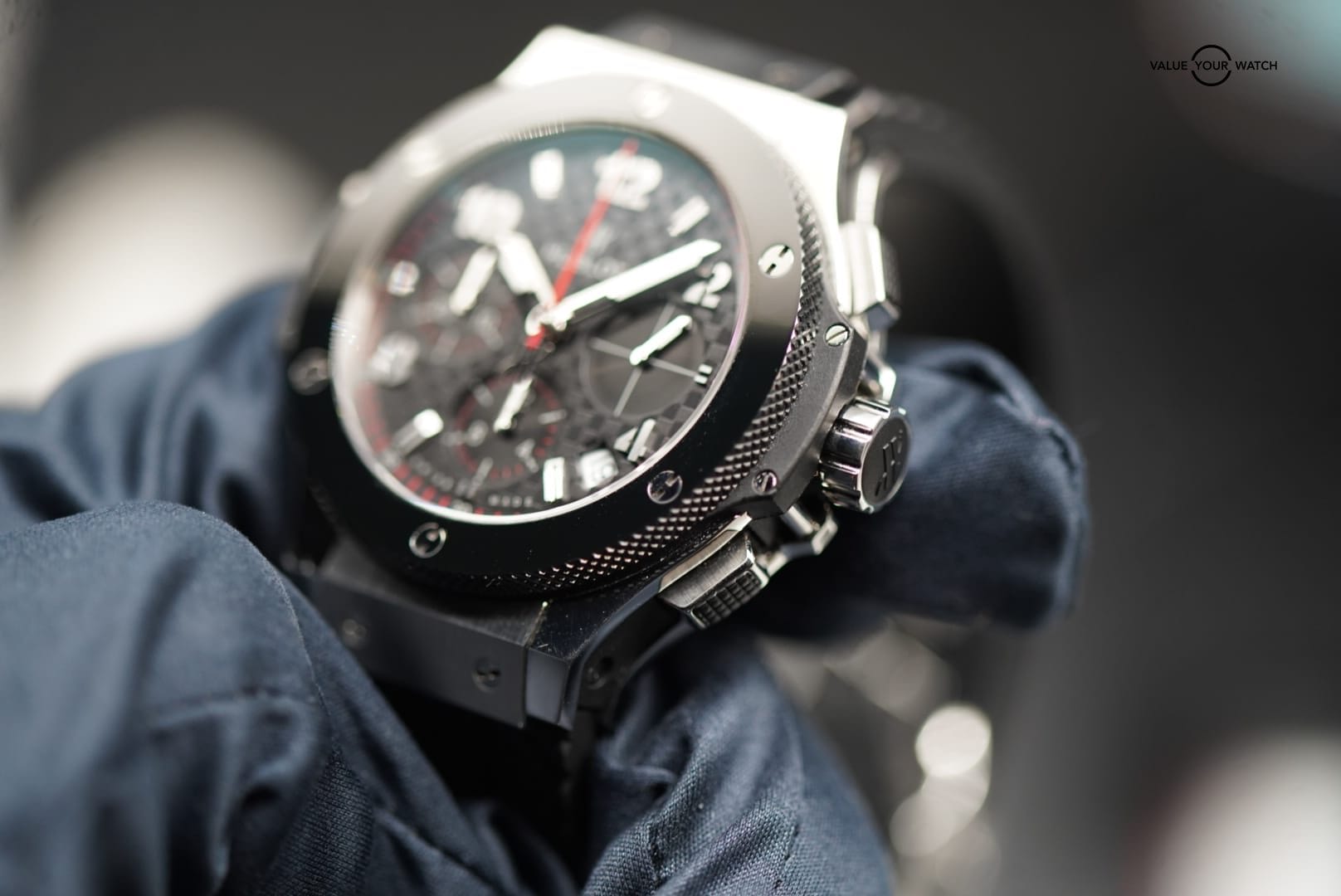 This 2024 example is presented in very good condition. There is a tiny anti-reflective (AR) mark on the crystal visible only under magnification with a jeweler’s loupe. It comes as a Full Set, making it an excellent opportunity for collectors seeking a late-model Hublot with complete presentation and strong wrist presence.