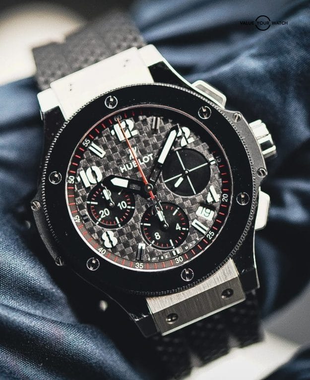 Introducing the Hublot Big Bang Carbon Dial, Reference 341.SB.131.RX — a contemporary and unmistakable expression of Hublot’s signature design language. The 41mm stainless steel case is paired with a black ceramic bezel and a striking carbon fiber dial, creating depth and texture that immediately stands out on the wrist.