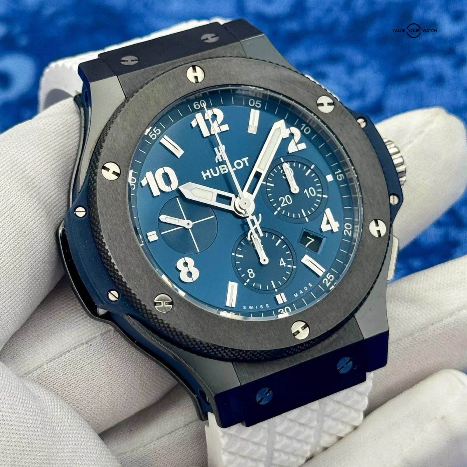 Hublot Big Bang Chrono Blue Black Ceramic 44mm 2 OEM Straps B&Ps – 301.CM.710.RX