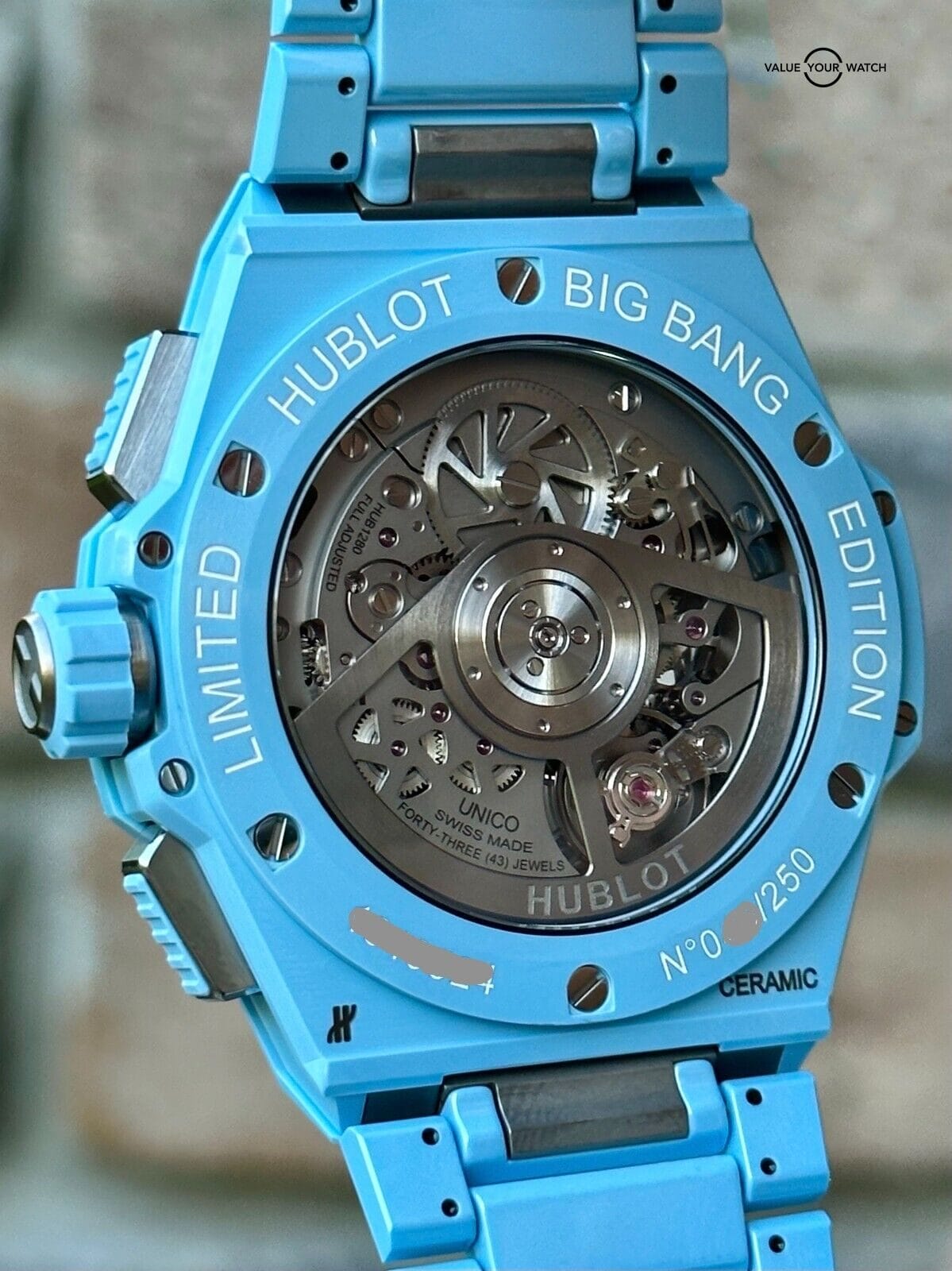 This particular Hublot Big Bang model is a limited edition, with only 250 pieces available worldwide. Each watch is individually numbered, making it a true collector’s item. The exclusivity of owning one of only 250 watches adds to its desirability and value.