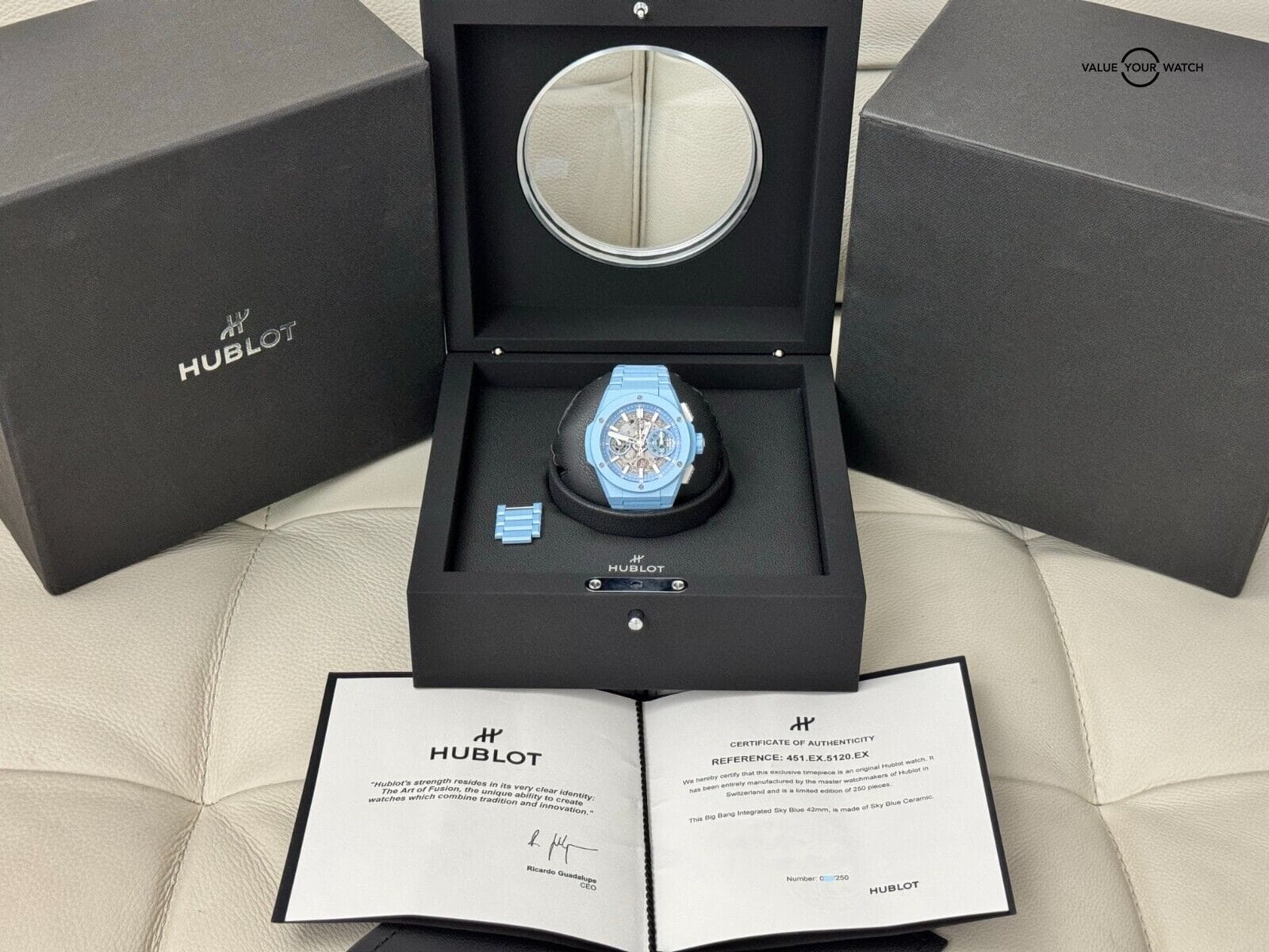 Introducing my Hublot Big Bang Integrated Sky Blue Ceramic Model 451.EX.5120.EX – Limited Edition 1 of only 250 Pieces