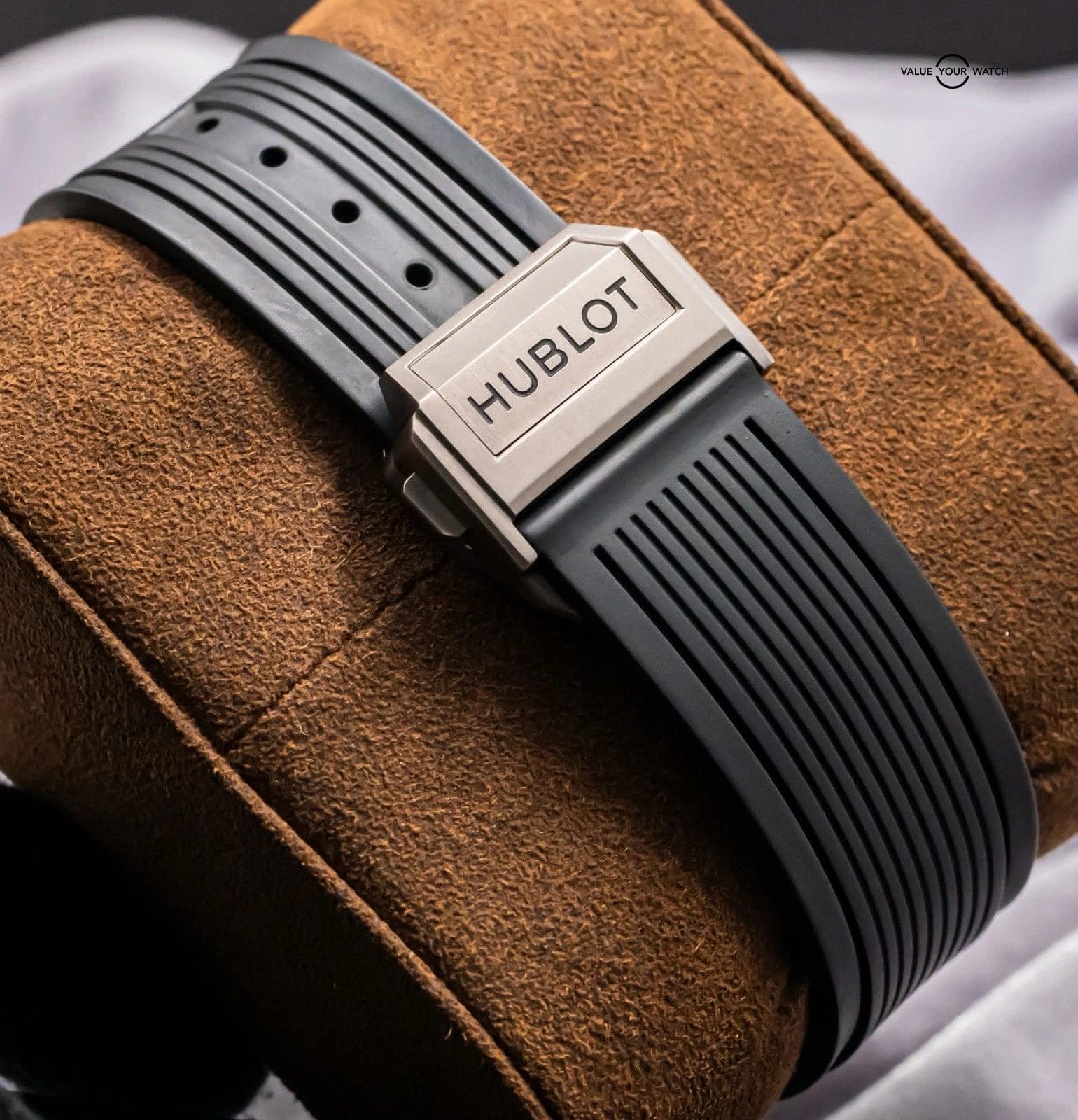 STRIKING Hublot Big Bang Meca-10 in Matte Titanium & Skeleton Dial on Black Hublot Rubber Strap! Arrives as a complete set with the original Hublot boxes and international warranty card. This piece was FULLY SERVICED at Hublot in September 2025, a huge value-add including their WARRANTY until September 2026. Very comfortable watch on the rubber strap, I wear Hublots everyday as they are my go tos due to their comfort. A lot of people don’t know that the 10 in Meca-10 stands for a 10 Day Power Reserve; Hublot developed this movement entirely in-house!