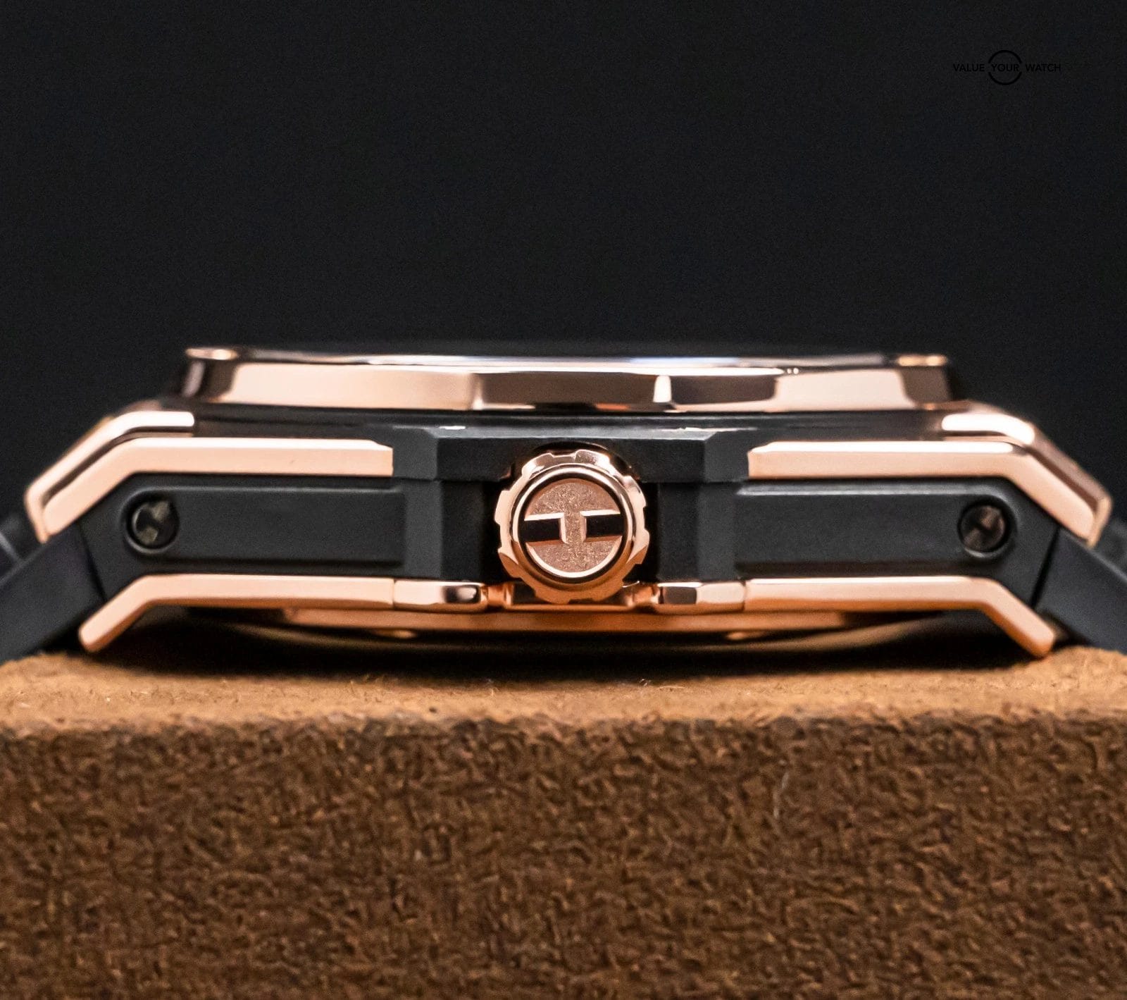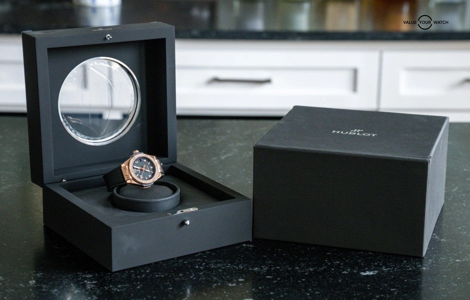 Looks absolutely stunning in person and is in phenomenal condition with minimal wear. Keeps great time on my timegrapher when tested! Do excuse the dust/lint in the pictures from the photography process. This One Click is completely sold out at Hublot and is incredibly difficult to find on the secondary market, and certainly not at this price point. Clean and desirable setup overall, ready to be enjoyed on wrist!