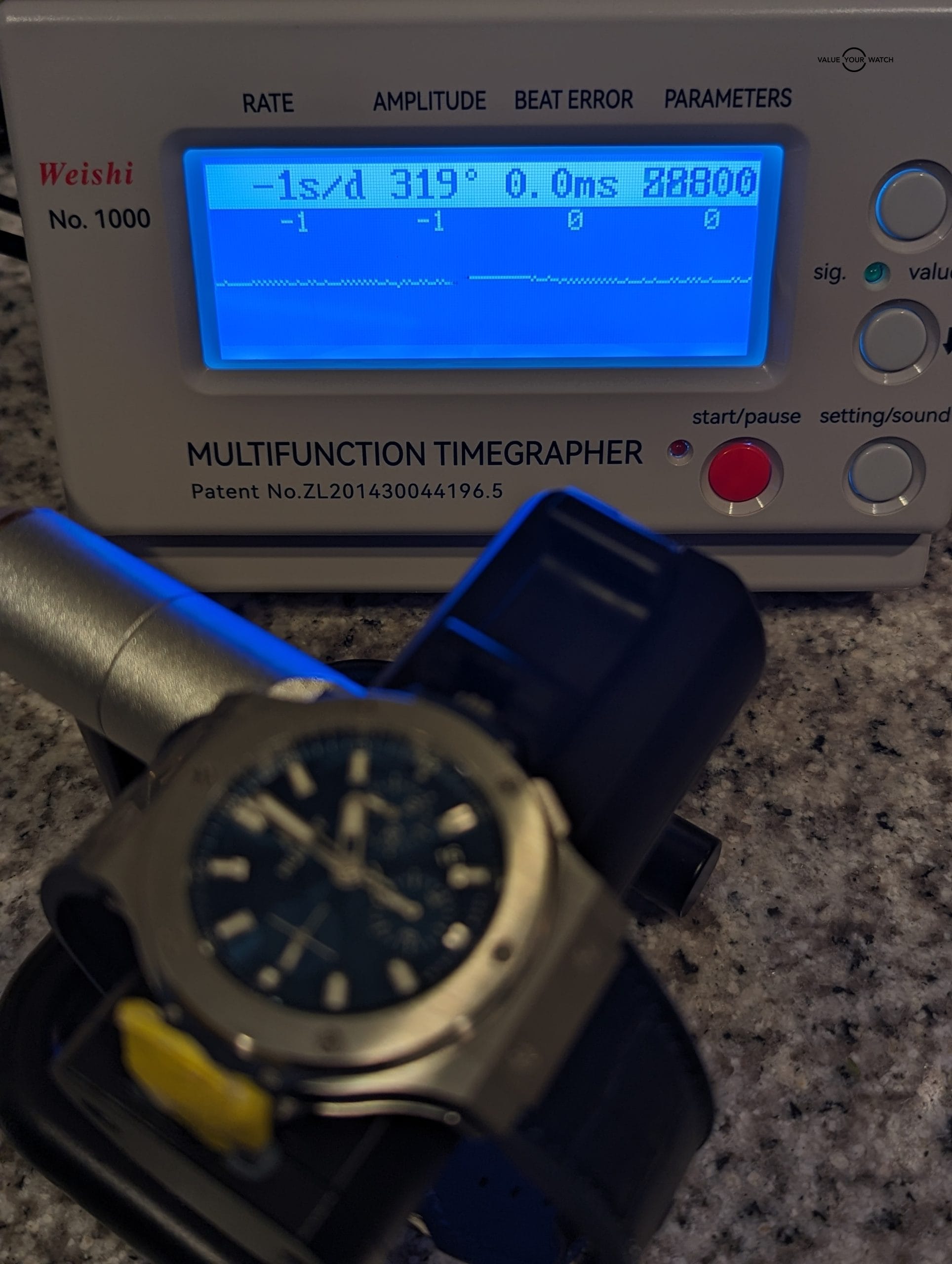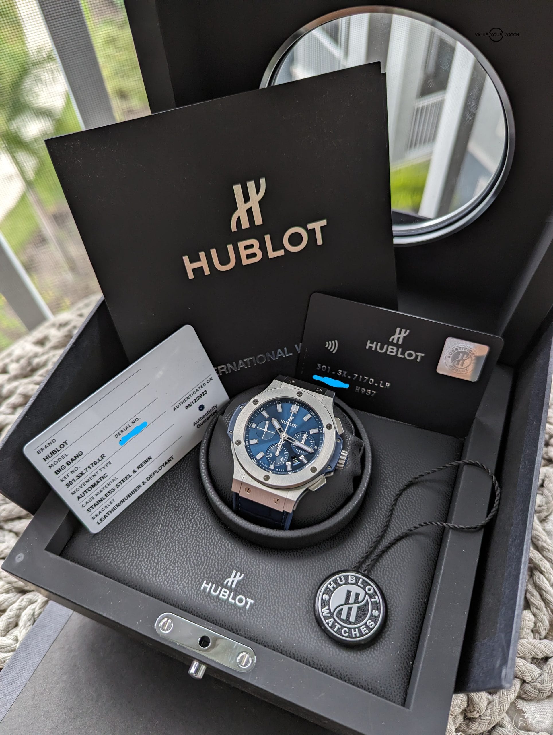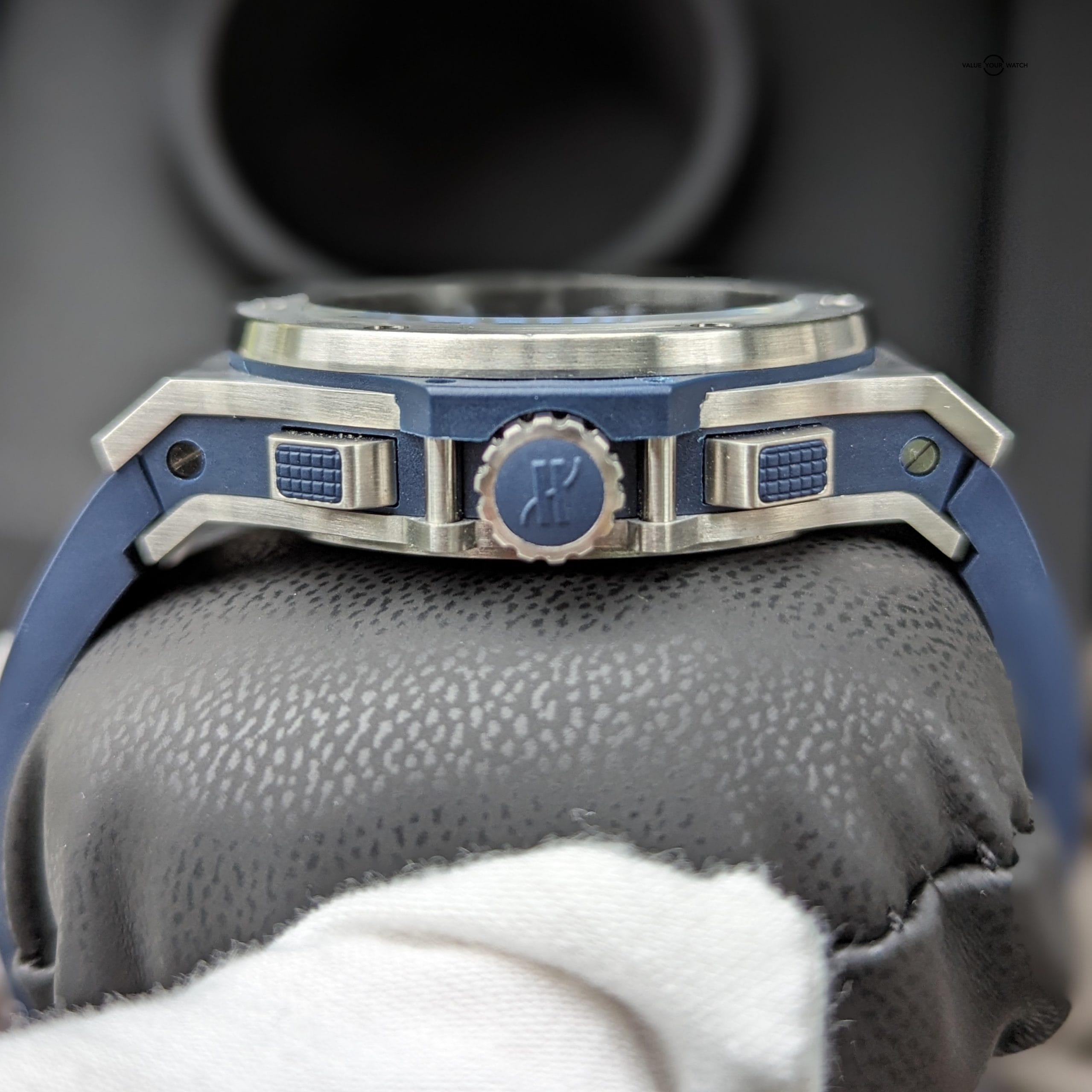 This timepiece comes on a original Hublot blue croc leather strap which is excellent shape, and is lined with blue rubber, making it extremely supple and comfortable. Securing it to your wrist is an original Hublot double push button deployant clasp. Overall the watch is in immaculate condition, only a minor hairline here or there, most notable on the deployant clasp, that is only visible at certain angles. Crystal is free from any blemishes. Functioning as it should, and keeping impeccable time (see timegrapher photo), this watch is good to go for many years.