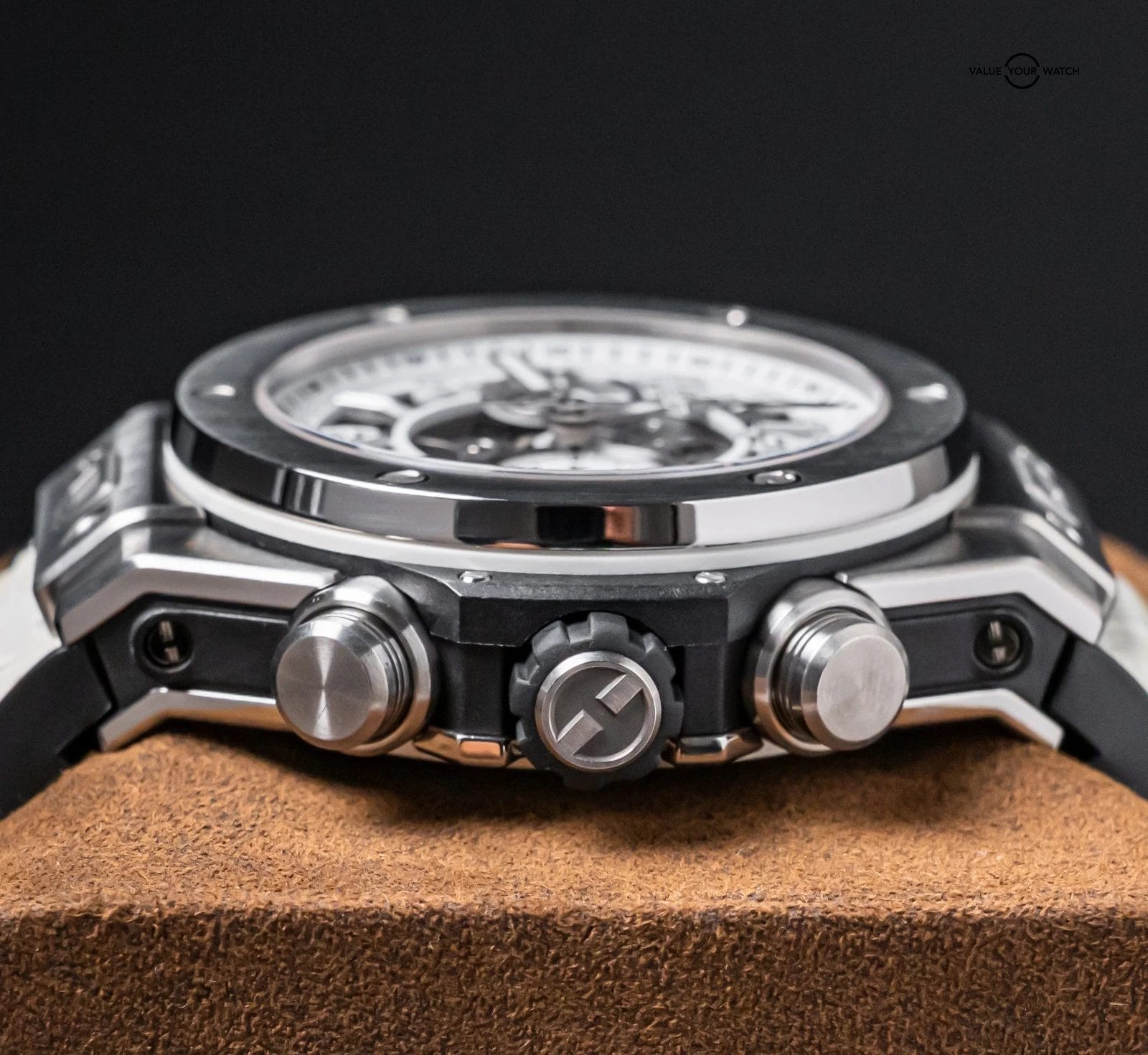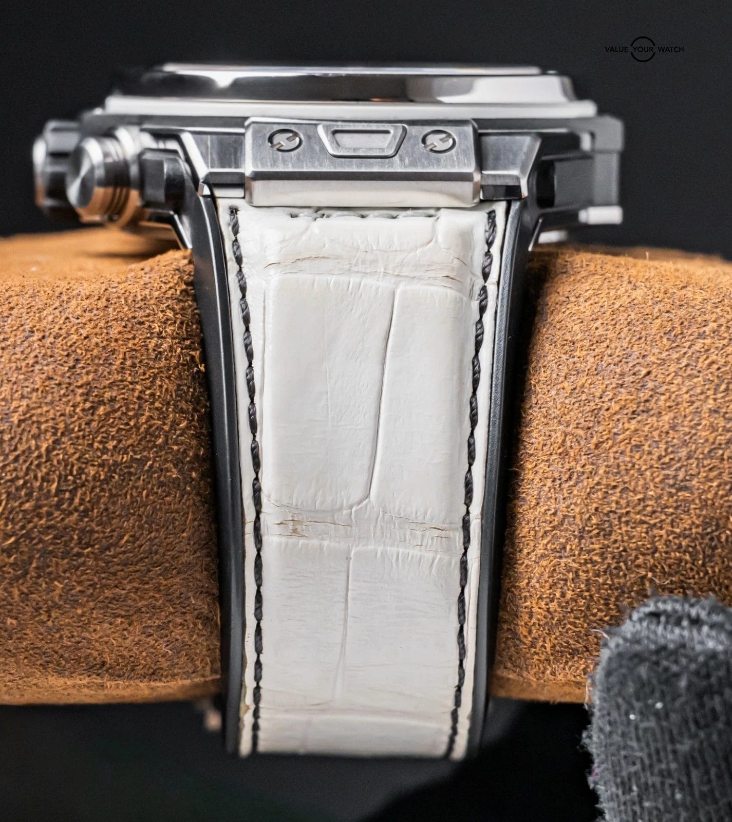 Band: White Hublot Alligator Strap, Backed in Rubber