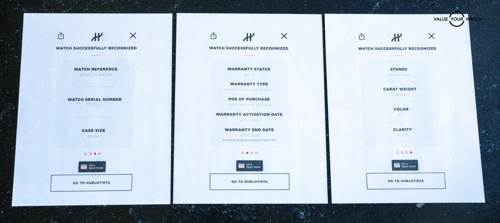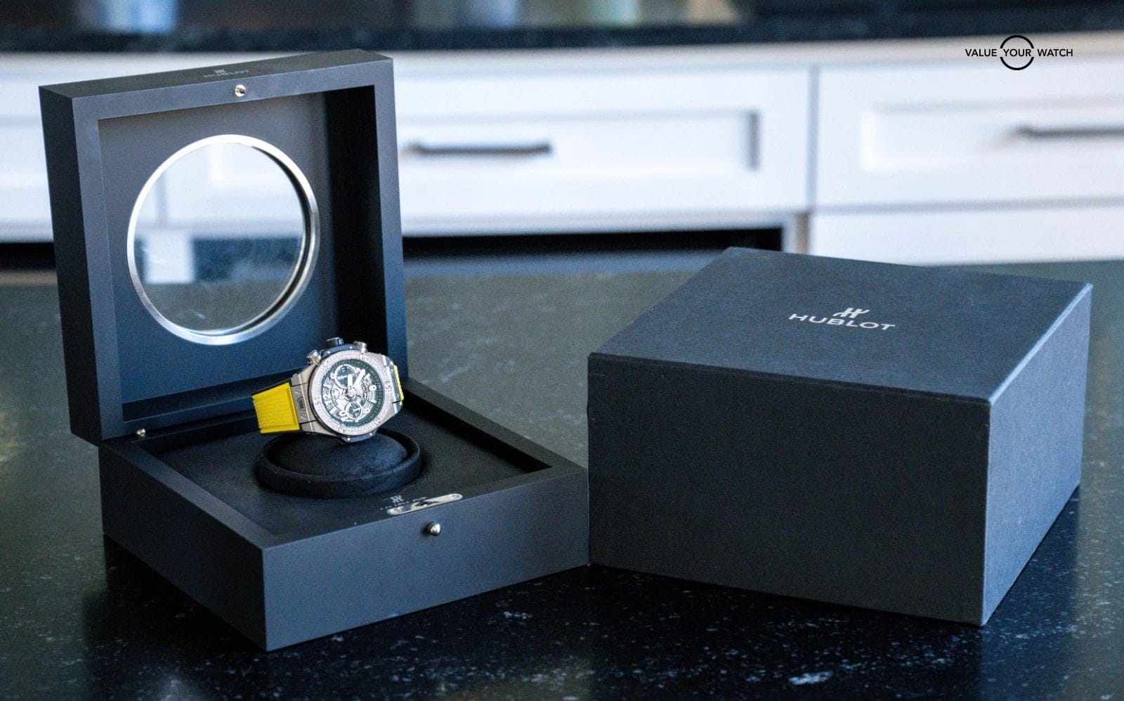 Since 2022, Hublot has stopped producing warranty cards- the e-warranty follows the watch, so we will continue listing these as with boxes & papers as it comes with everything new as if you were purchasing it brand new from Hublot.