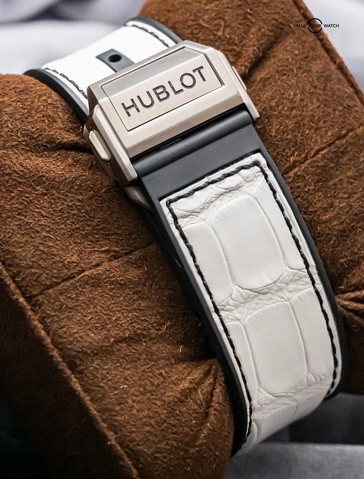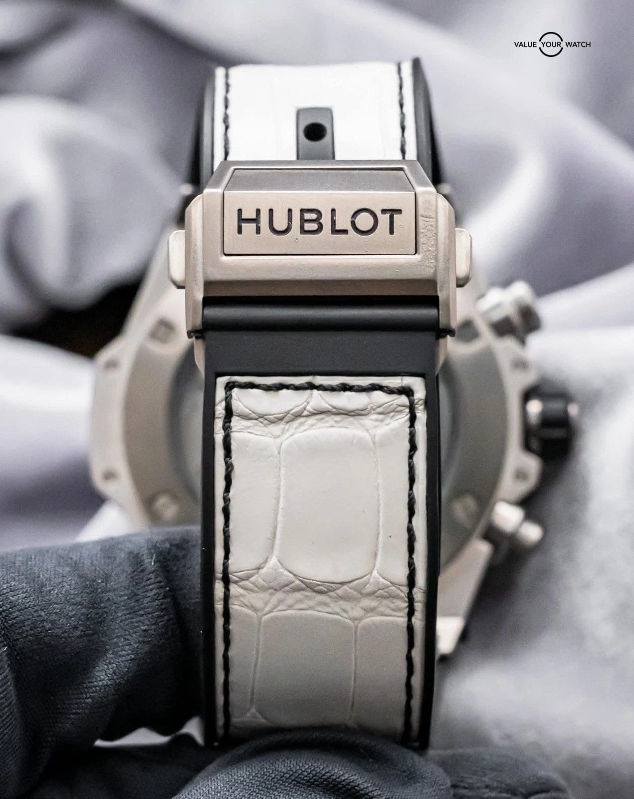 Band: BRAND NEW UNWORN White Hublot Alligator Strap, Backed in Rubber