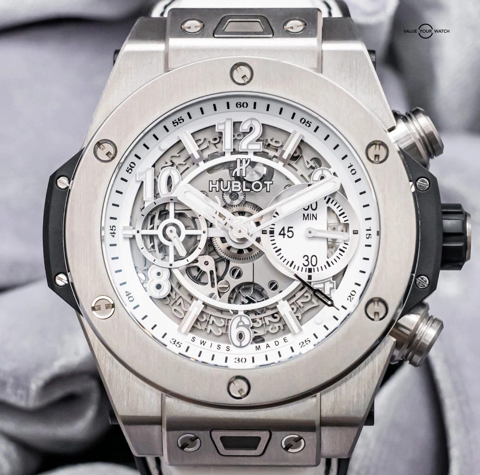 Specification: Hublot Big Bang Unico Titanium White JSM15 45 mm $20K MSRP 411.NE.2010.LR.JSM15
