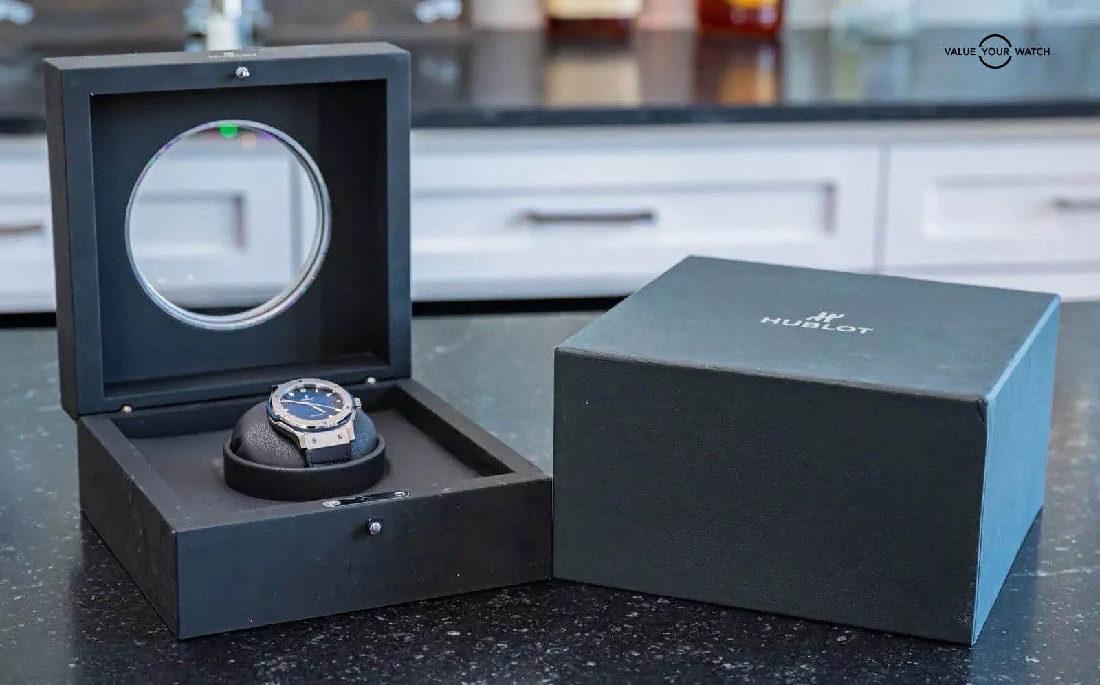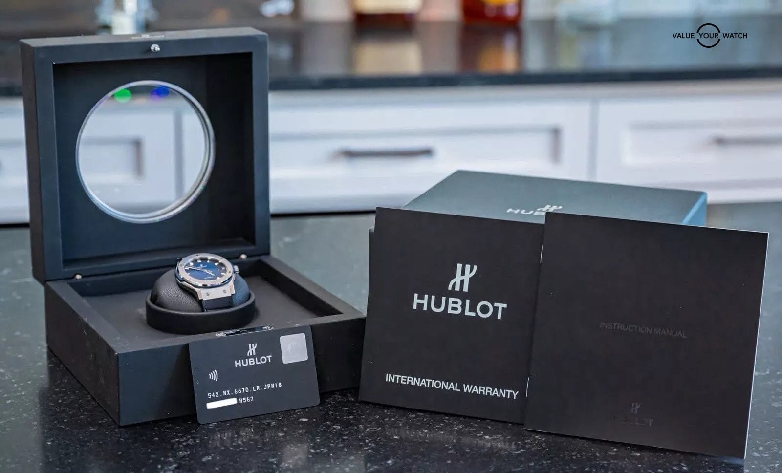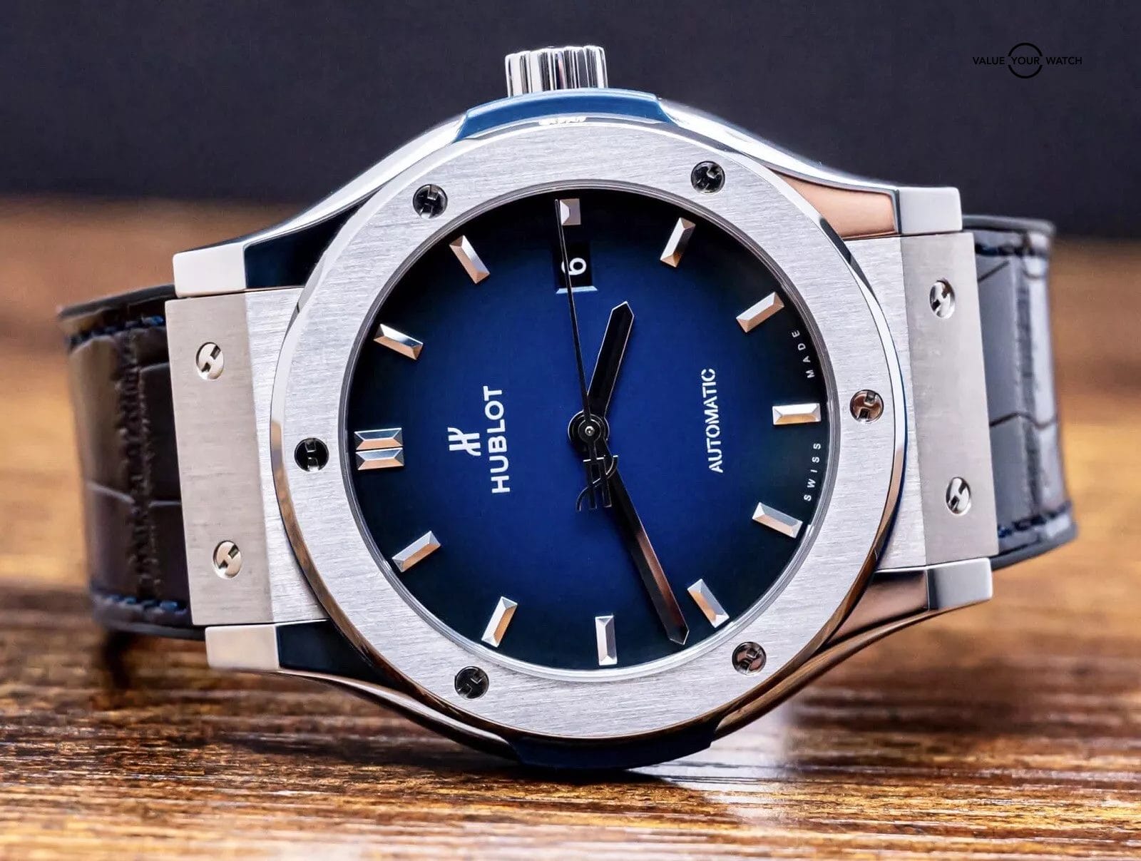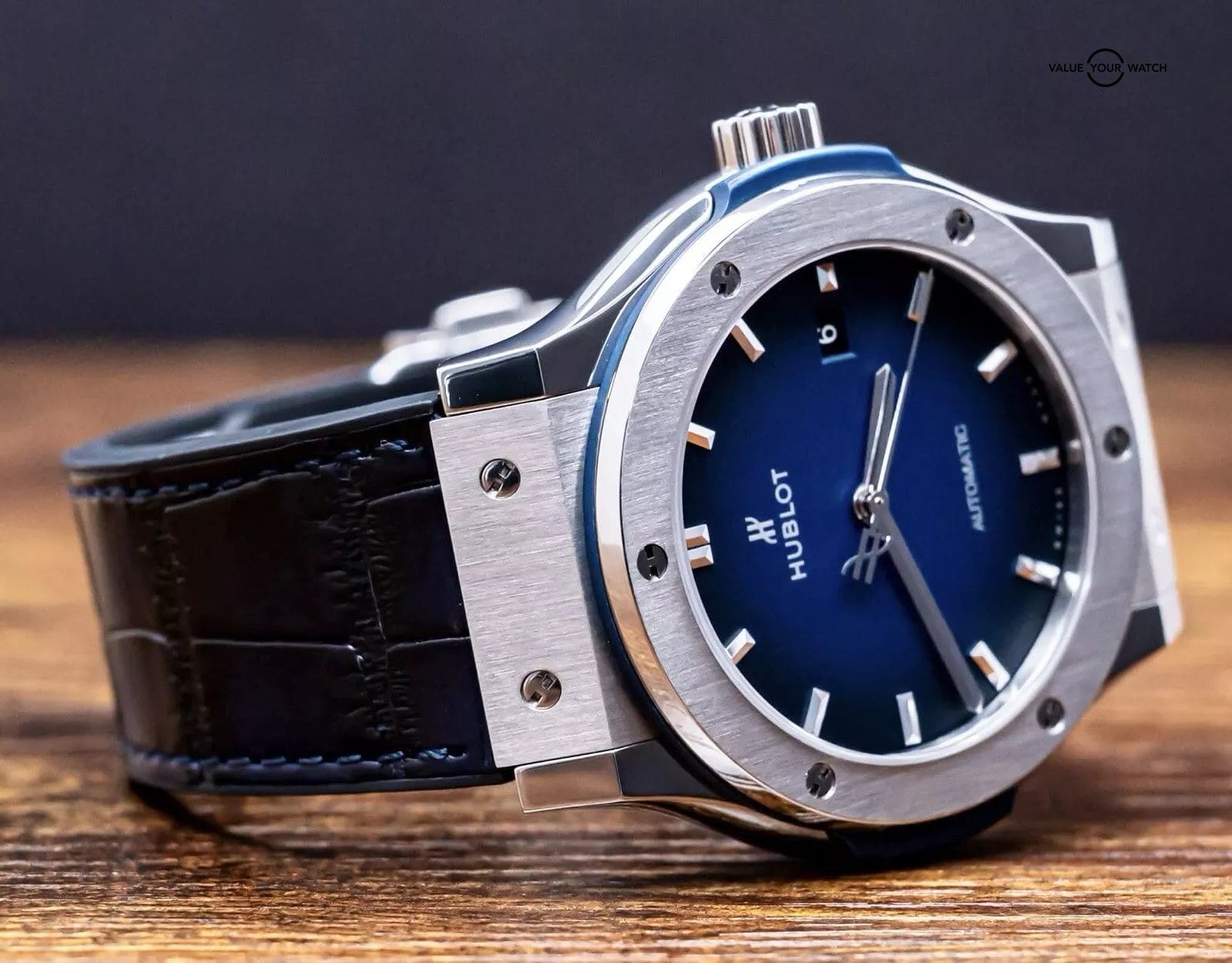 STUNNING Hublot Classic Fusion Titanium Deep Blue 42 mm with Blue Dial on BRAND NEW UNWORN Hublot Dark Blue Alligator Strap! Do not confuse this with the more common normal Blue Dial, this is the *RARE* Deep Blue Edition, made with the Blue Dial that fades from Blue to Black, SUPER cool. Arrives as a complete set with the original boxes and papers including the international warranty card. Originally purchased from a Hublot Authorized Dealer in 2019! This BRAND NEW UNWORN strap cost me near $700 from Hublot, may the next owner truly enjoy this STRIKING piece on wrist!