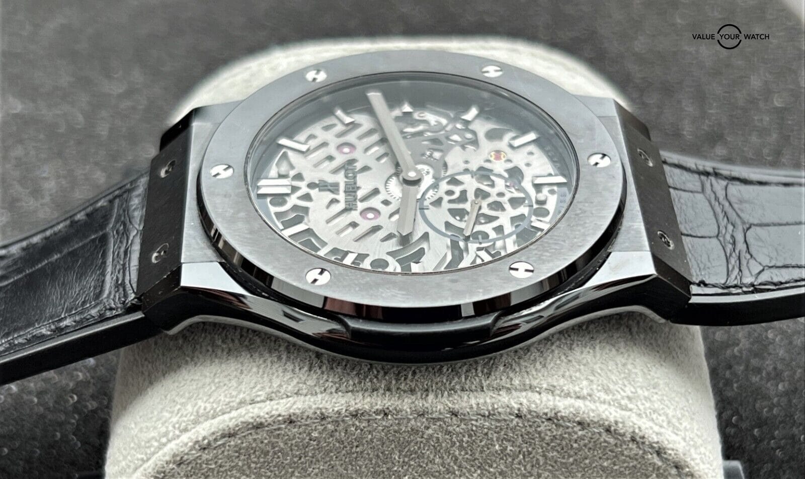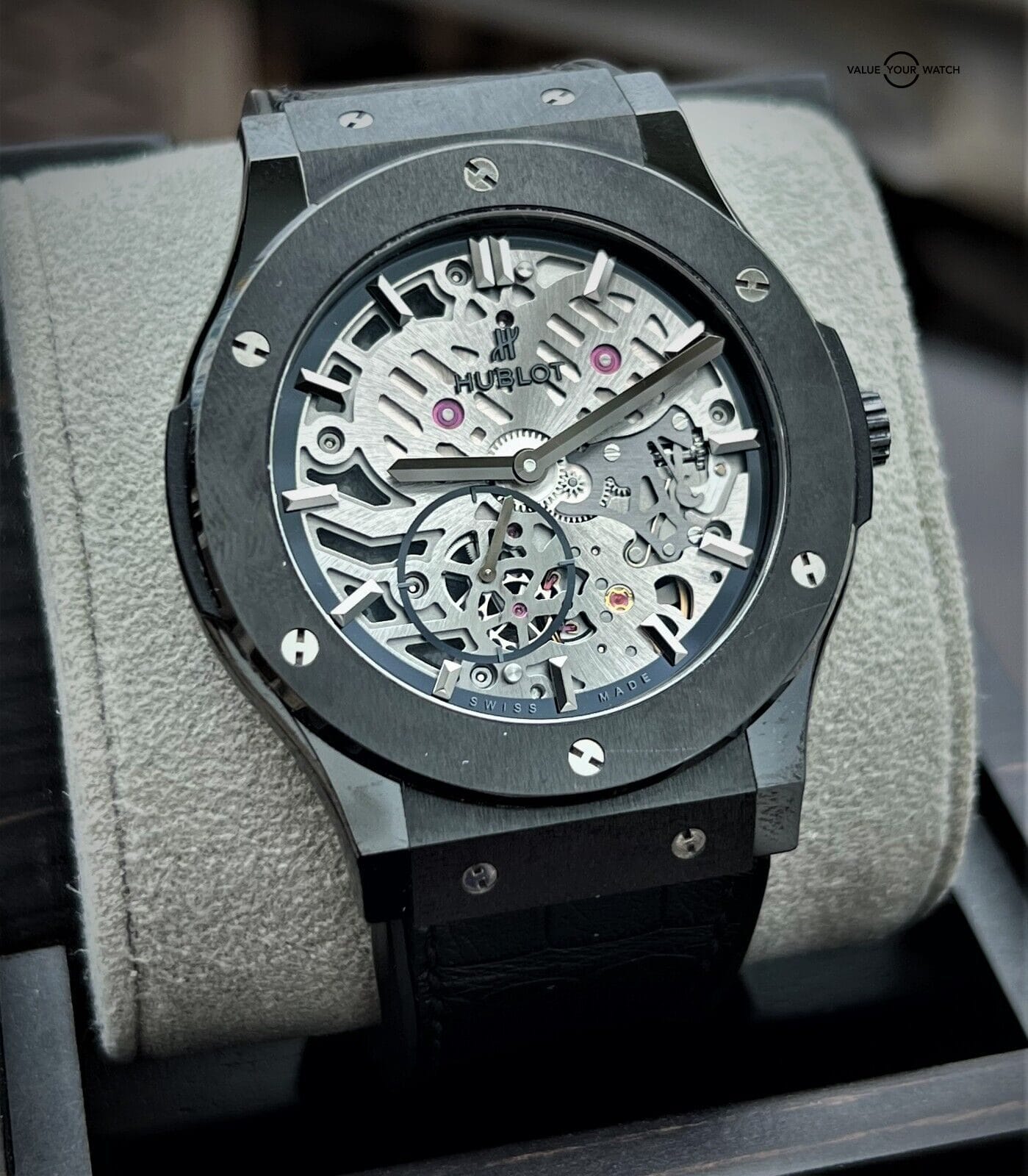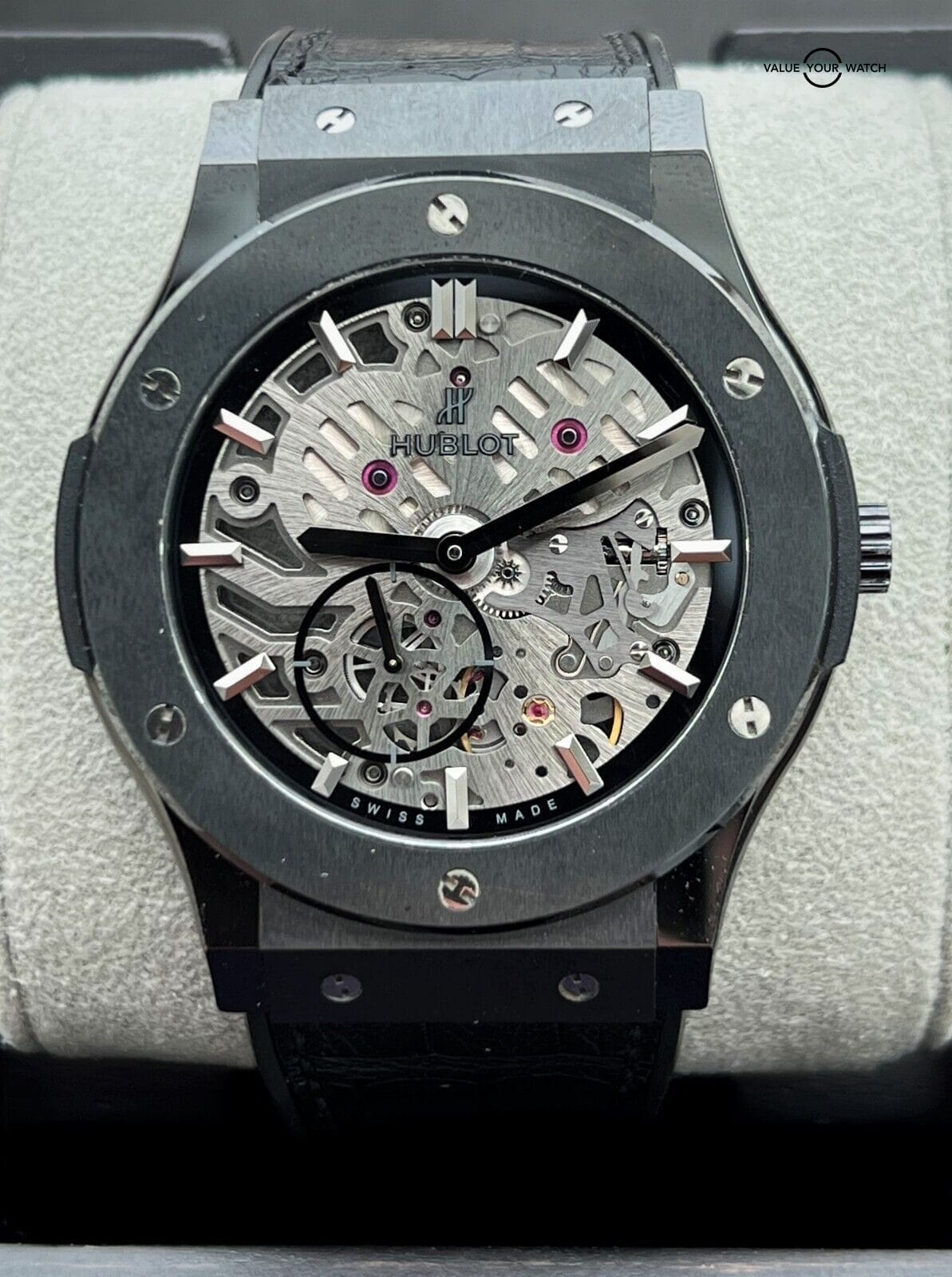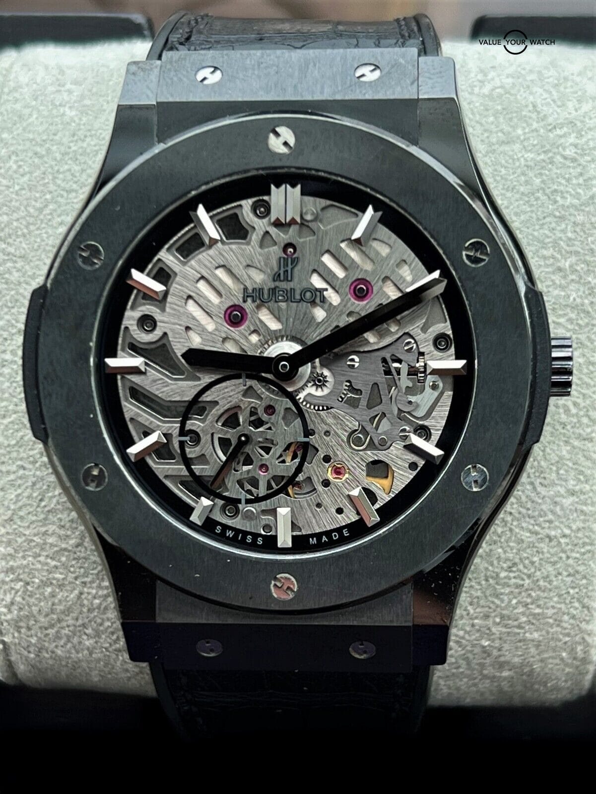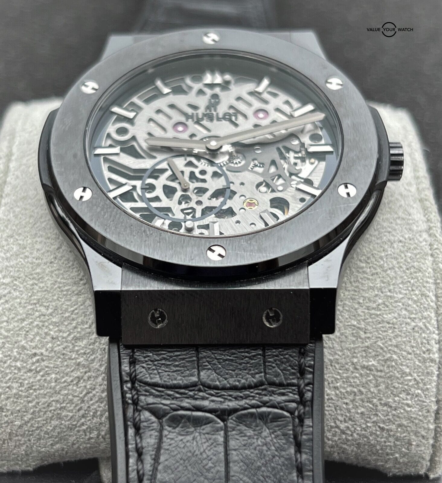Hublot Classic Fusion Ultra Thin Black Skeleton Classico Ceramic BOXES/PAPERS!