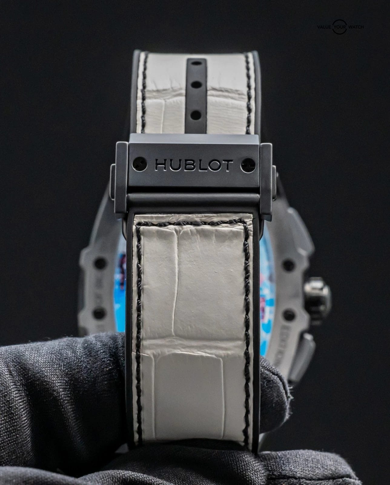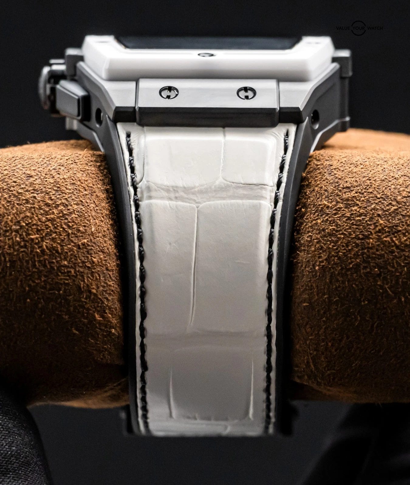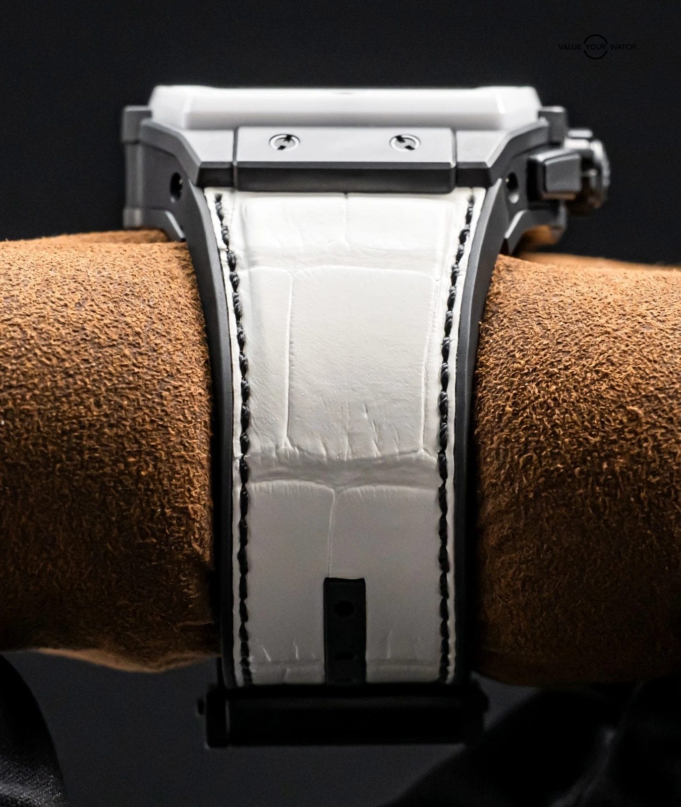 Band: BRAND NEW UNWORN White Hublot Alligator Strap w/Black Stitching