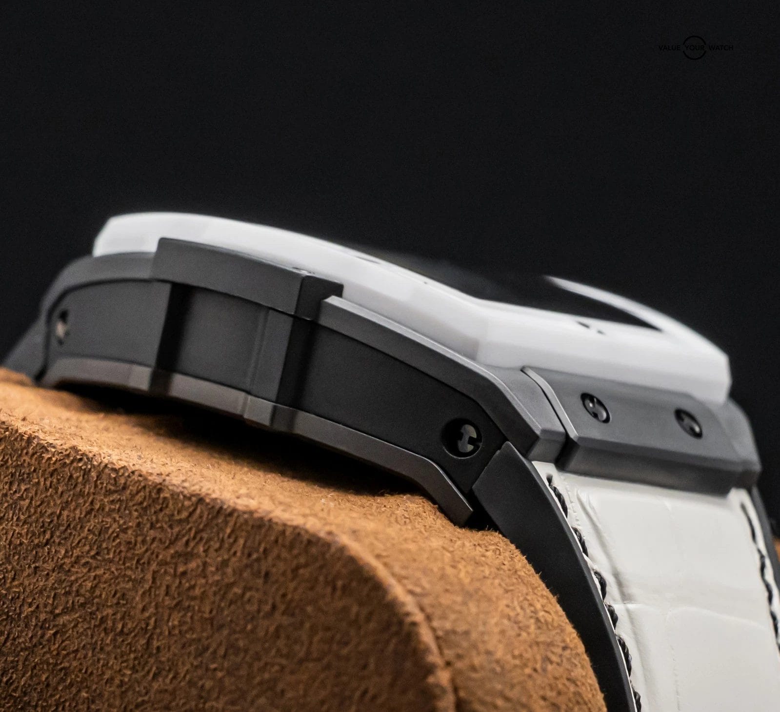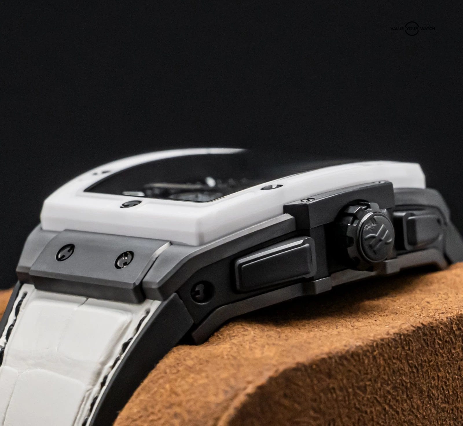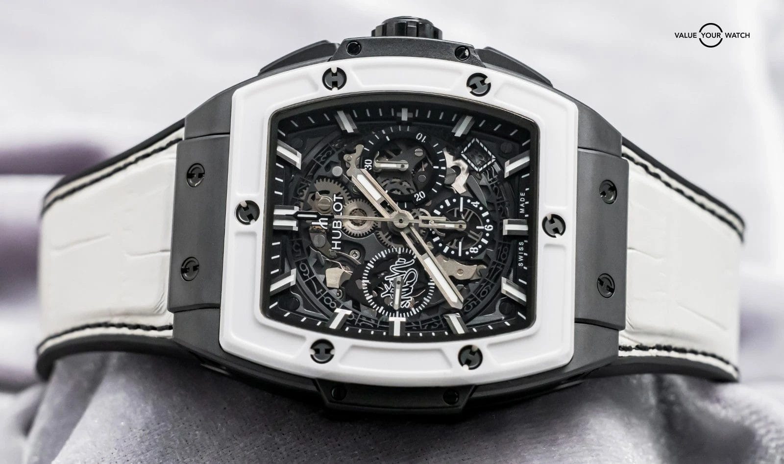 Band: BRAND NEW UNWORN White Hublot Alligator Strap w/Black Stitching