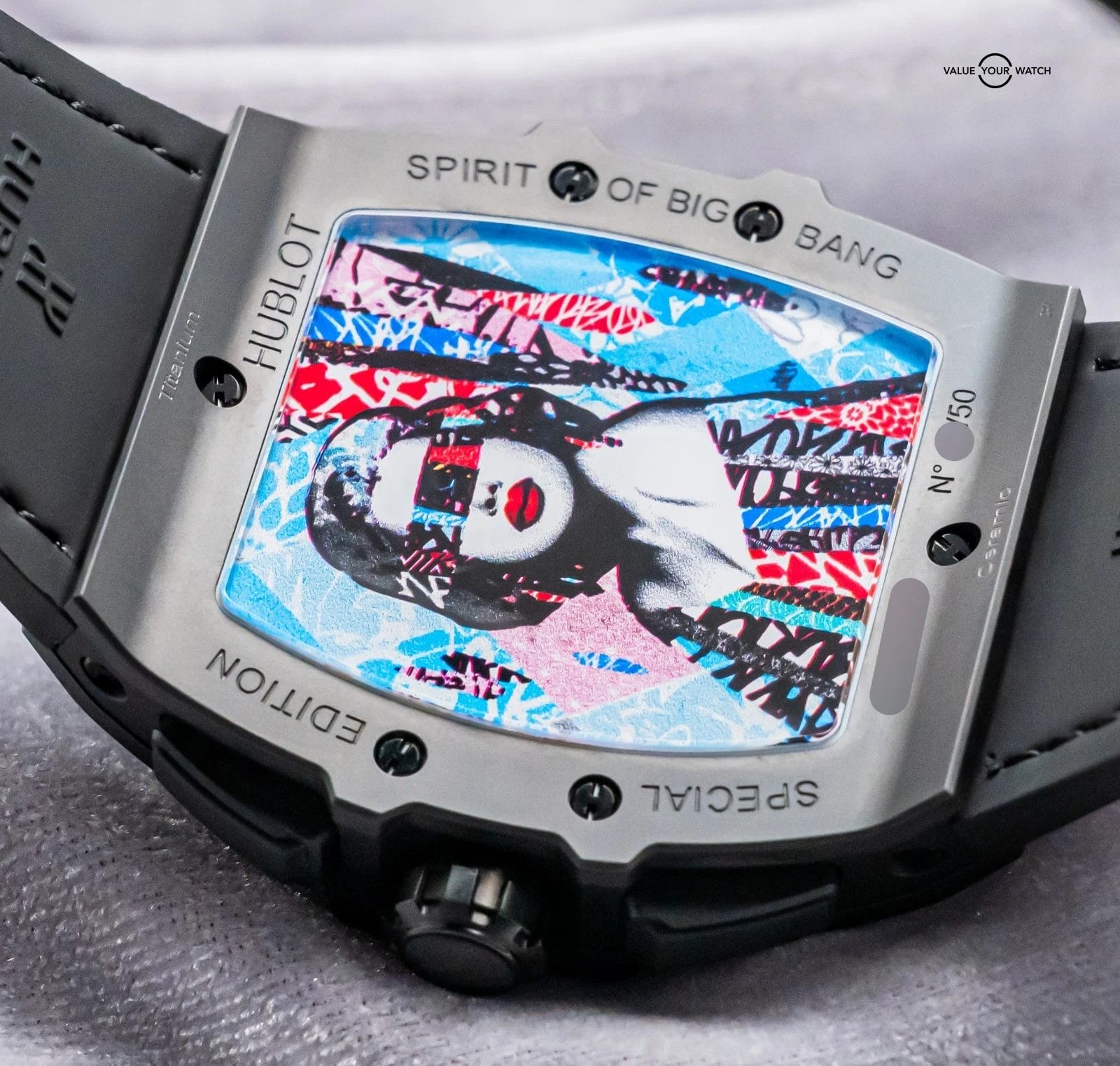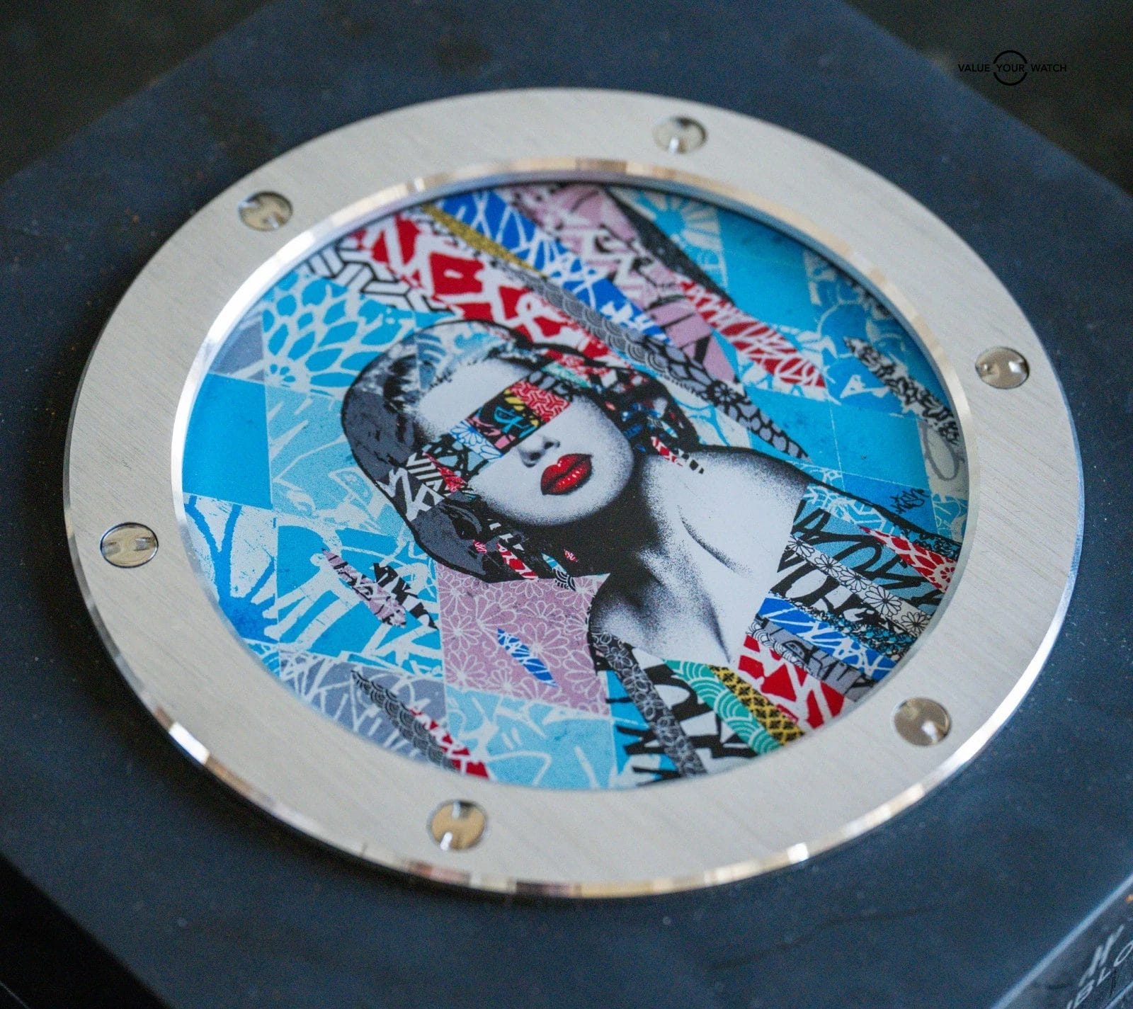 Said by WatchProSite, Artist Hush said, “The image I created for Hublot has a multitude of ideas which represent ‘Fame, individuality and strength to the iconic personality’ as well as placing itself in time through my contemporary street art influenced aesthetic. I took inspiration from Hollywood icons and tried to celebrate that through the strong posing image of a woman’s portrait.”