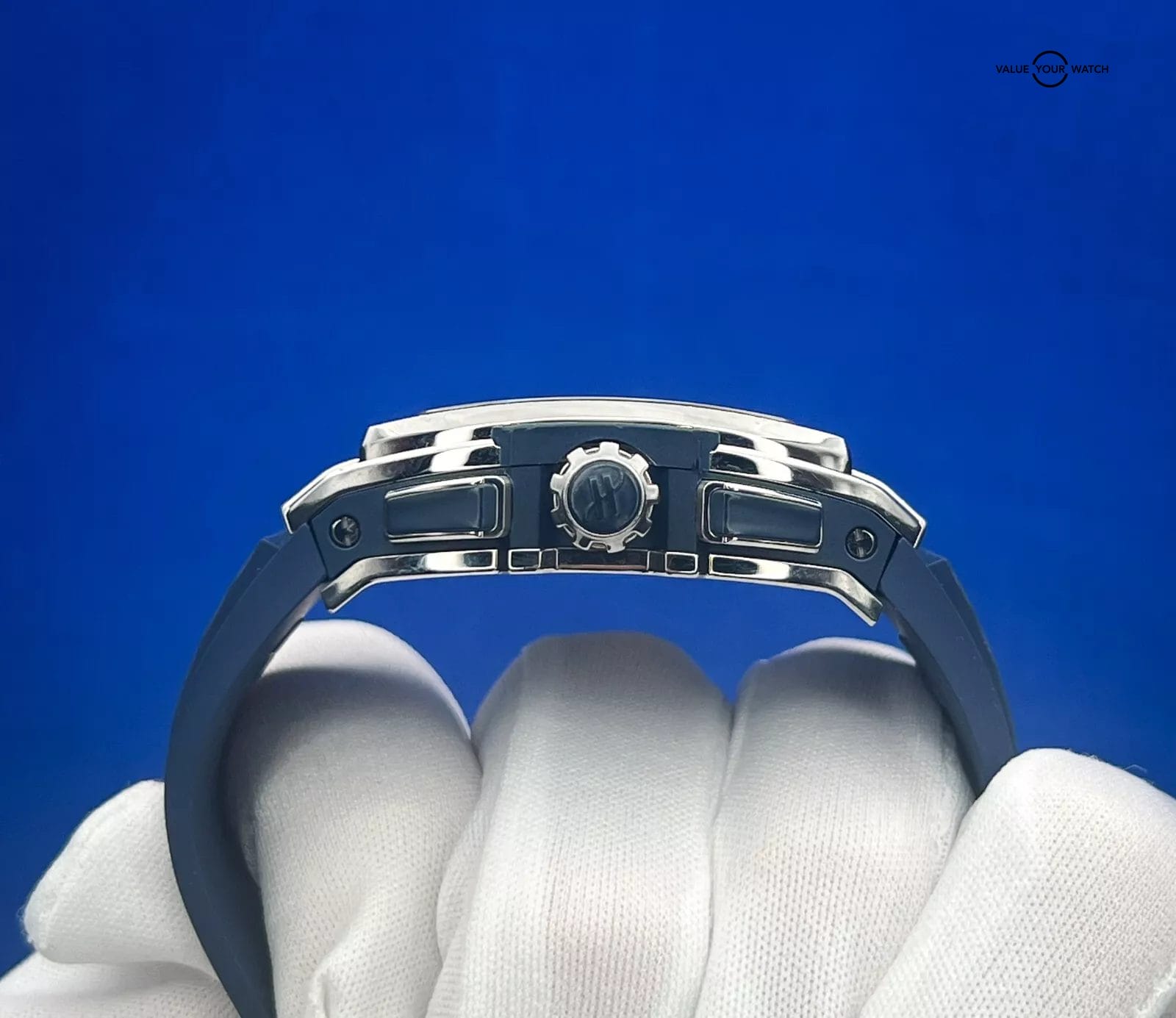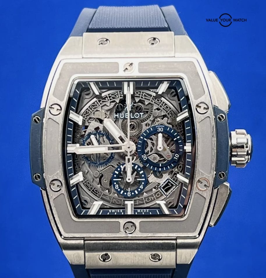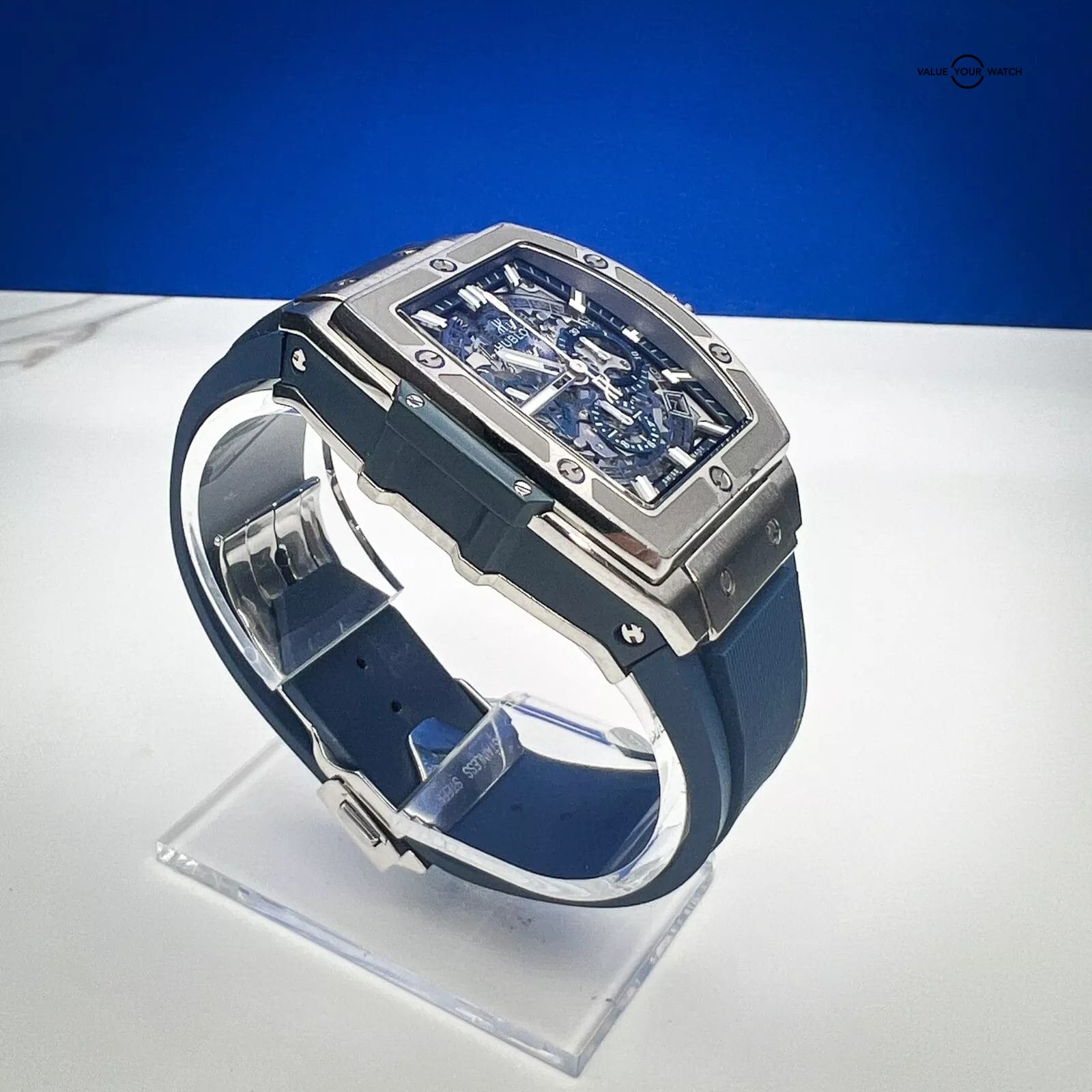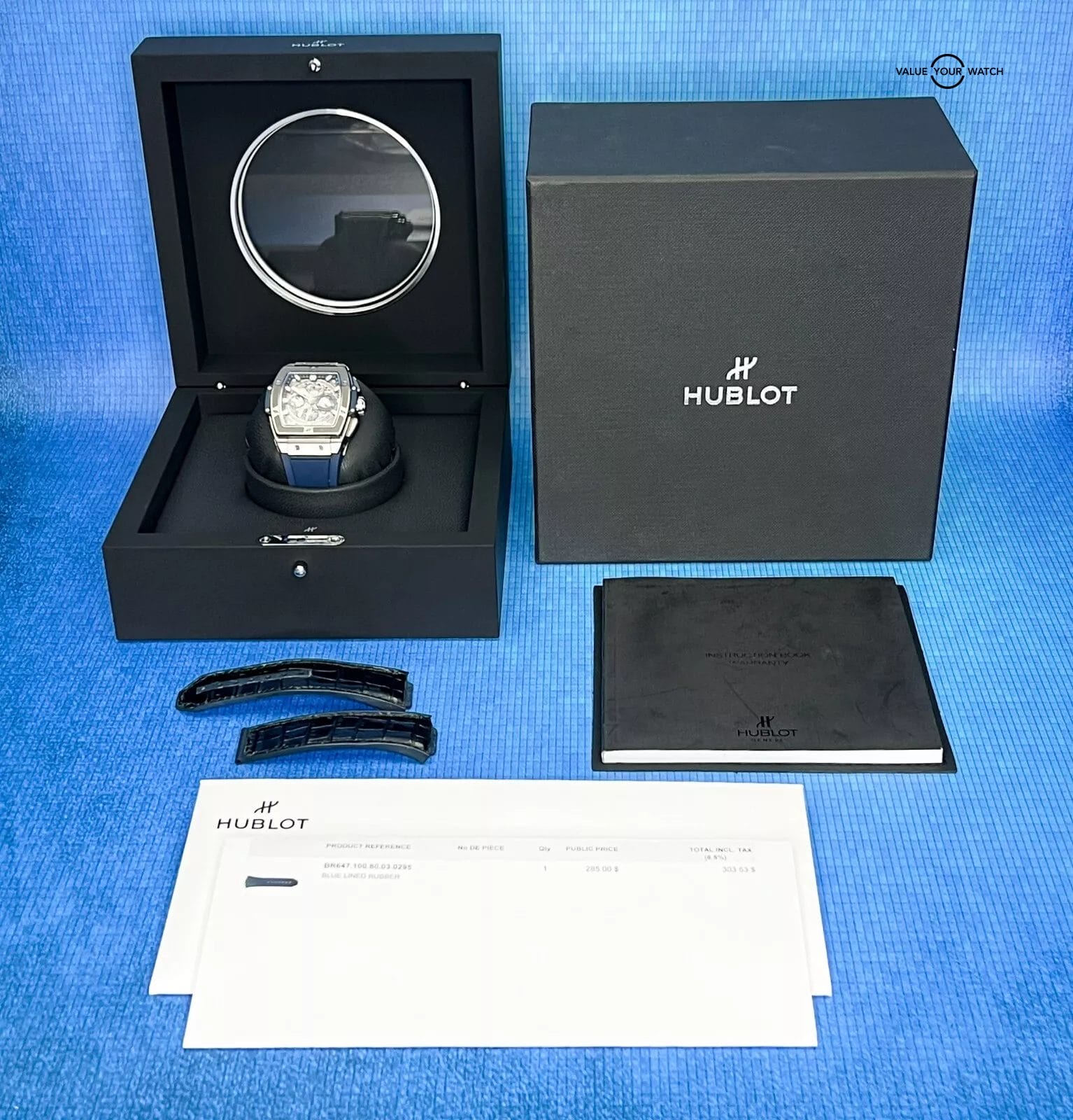 The Hublot Spirit of Big Bang Blue Titanium 641.NX.7170.LR is a stunning chronograph that seamlessly blends bold design with unparalleled Hublot craftsmanship.