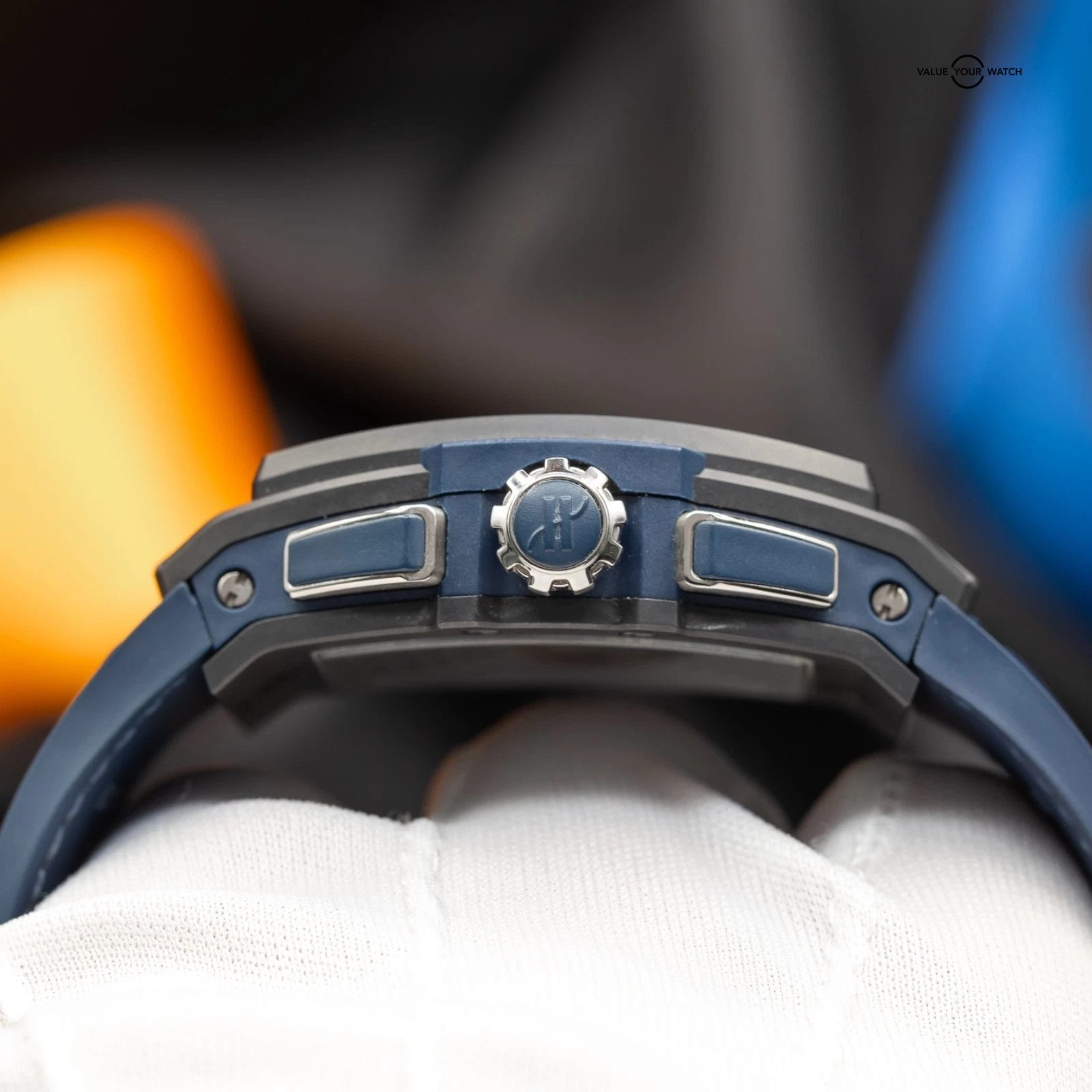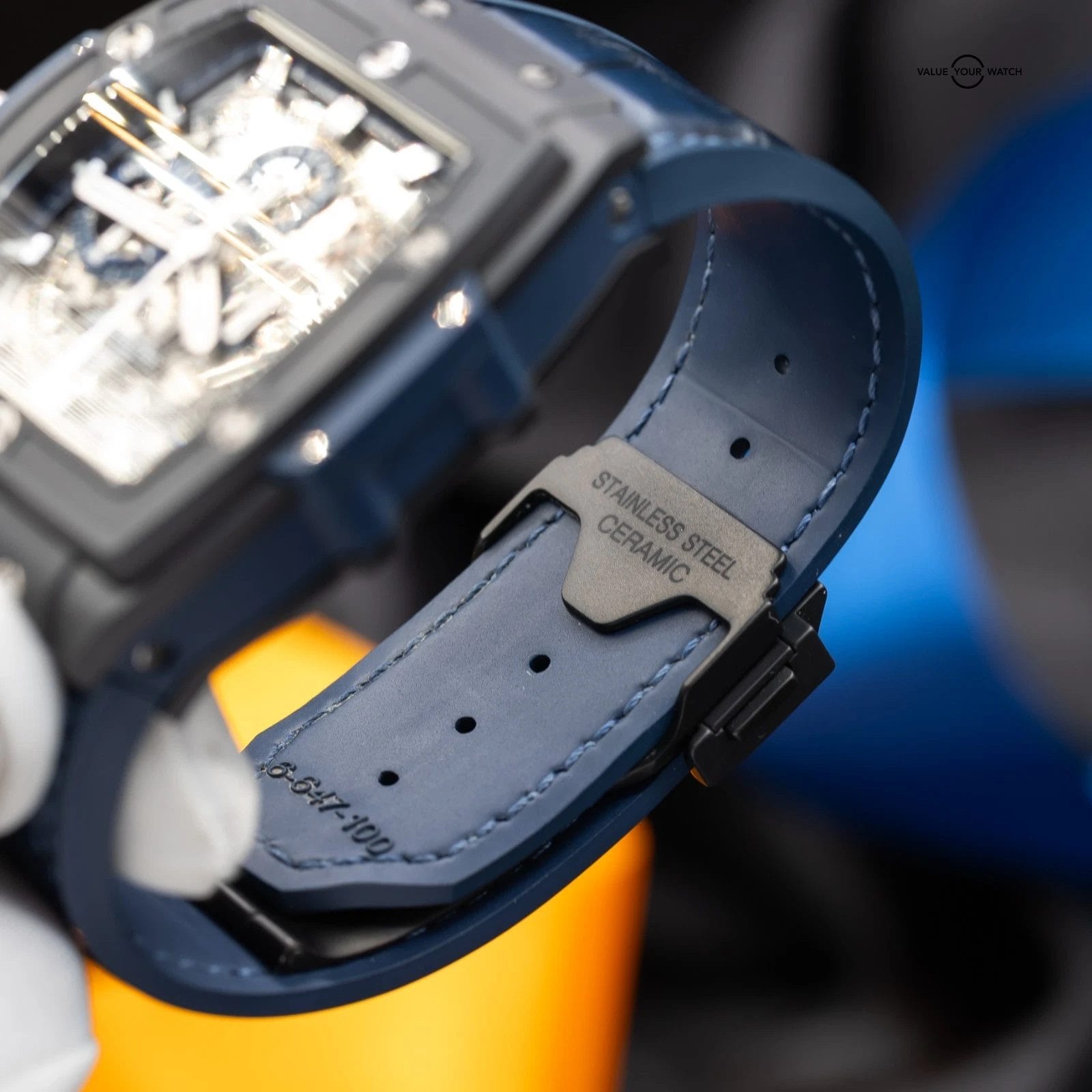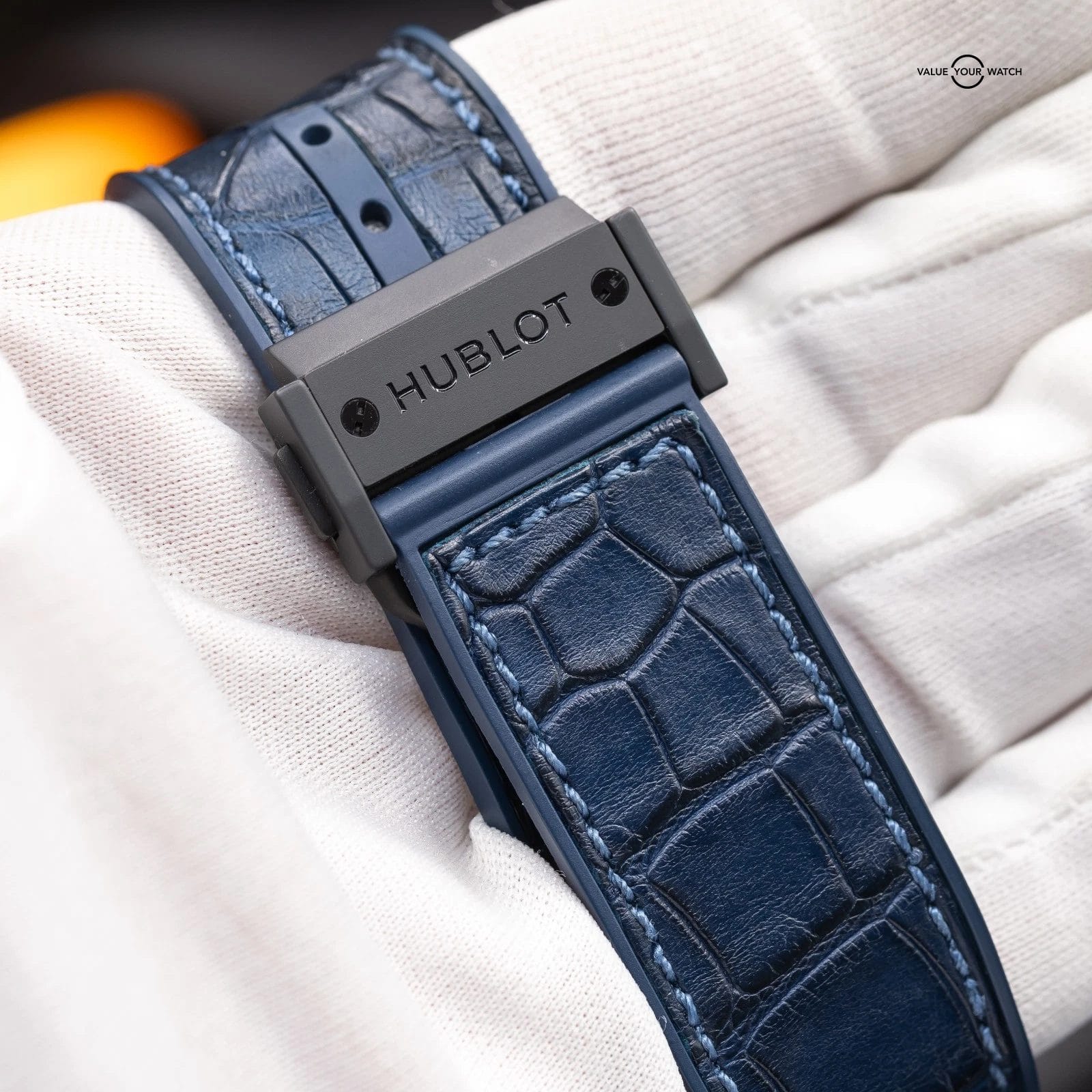 · Strap: Blue structured rubber with black alligator leather inlay