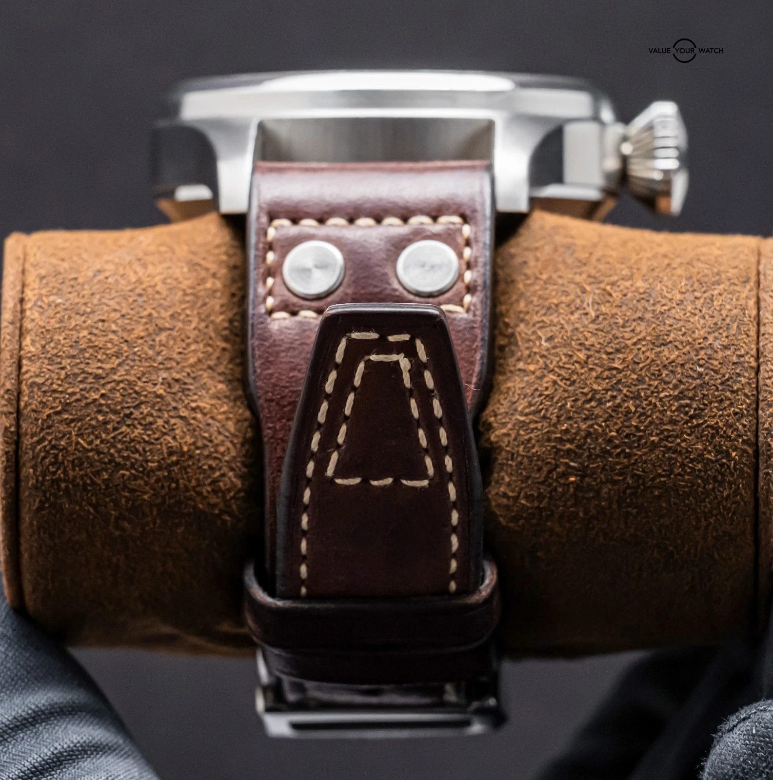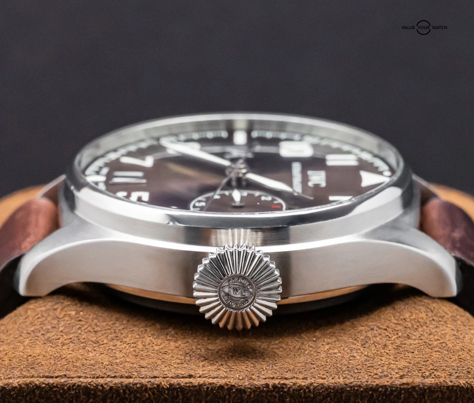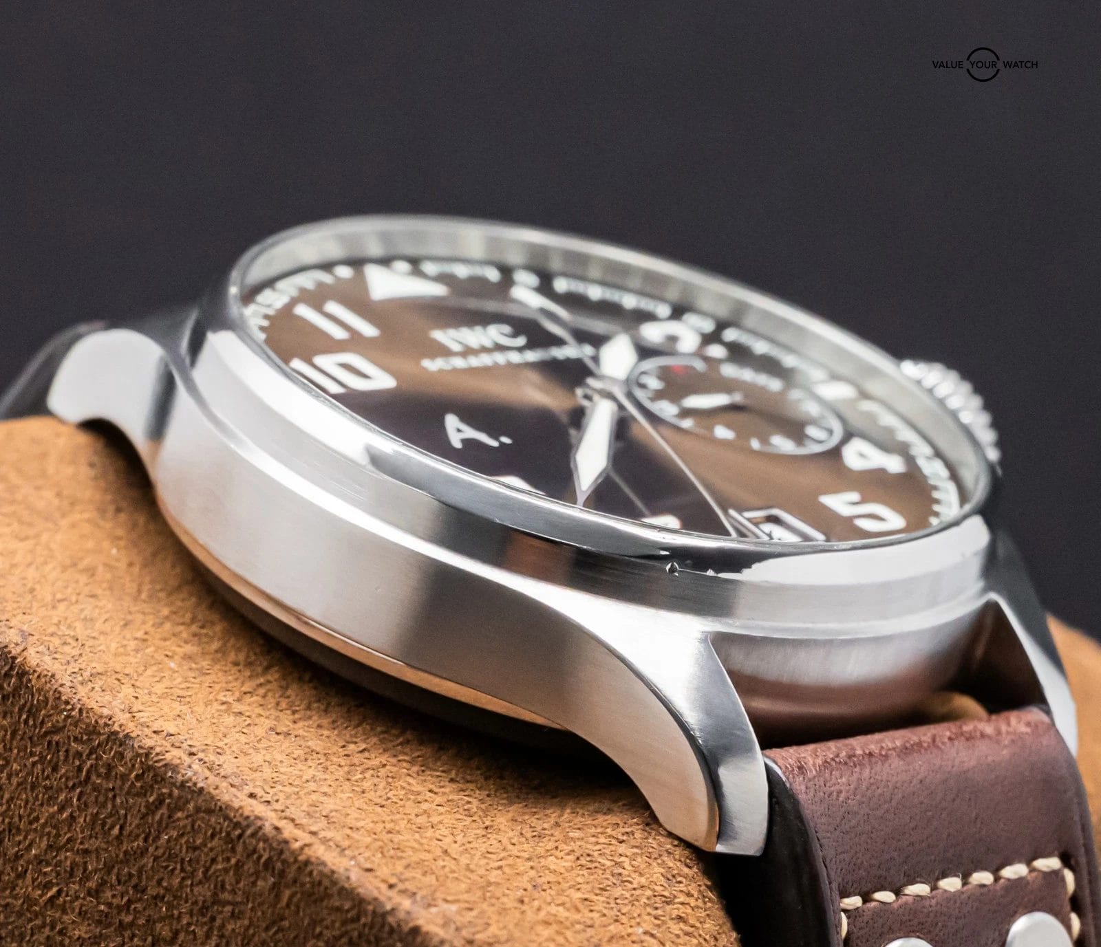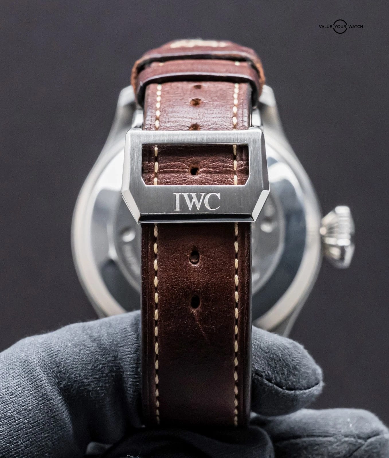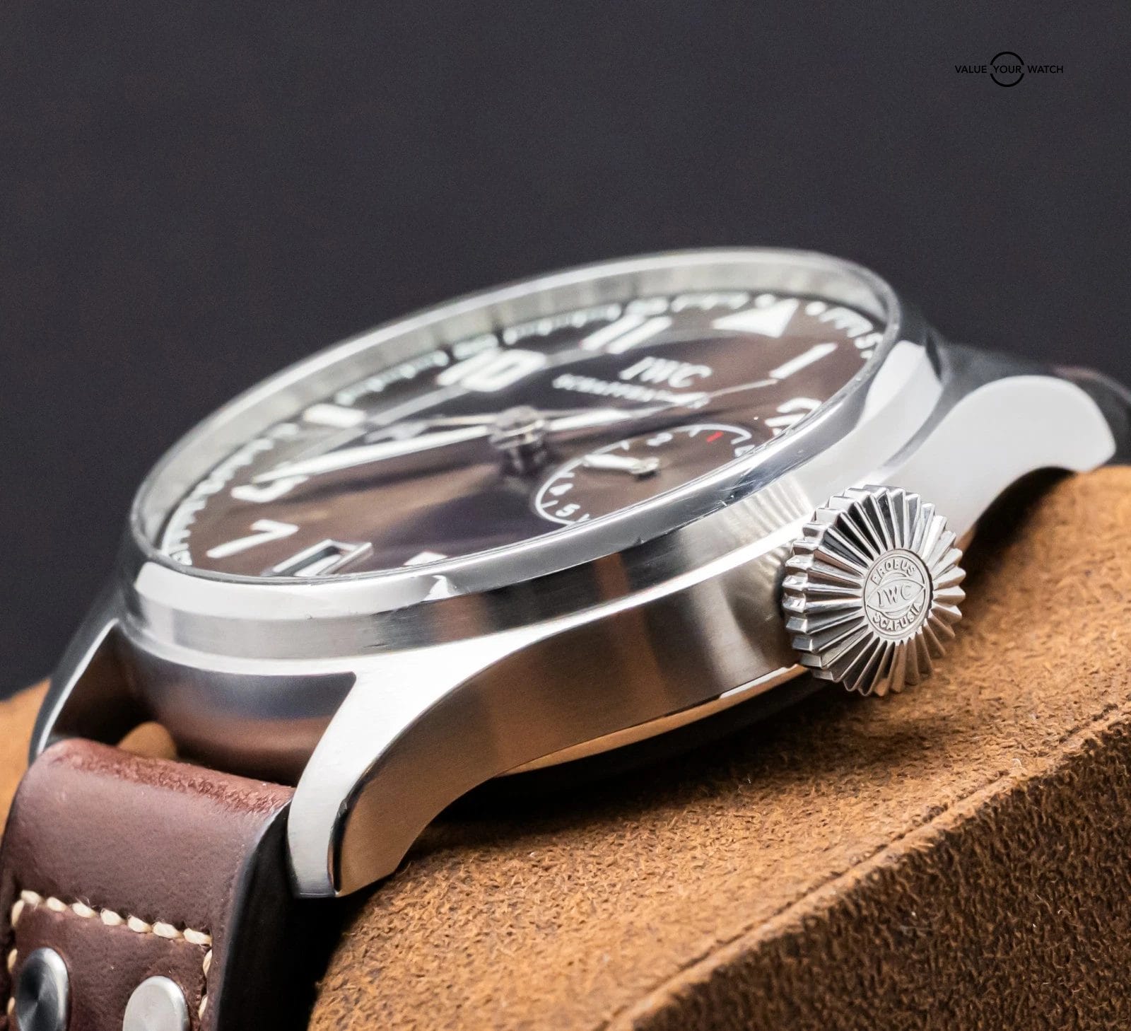 STUNNING IWC Big Pilot’s Watch Antoine De Saint Exupery Limited Edition of 1149 in Stainless Steel 46 mm with Brown Dial on Brown IWC Leather & Deploy Clasp! Arrives as a complete set with original IWC boxes and papers including the international warranty card. This Antoine De Saint Exupery Limited Edition of 1149 is essentially the classic Seven Day Power Reserve Big Pilot with Brown Dial & Leather to commemorate the historic French writer & aviator, Antoine De Saint Exupery. Ready to be on wrist!