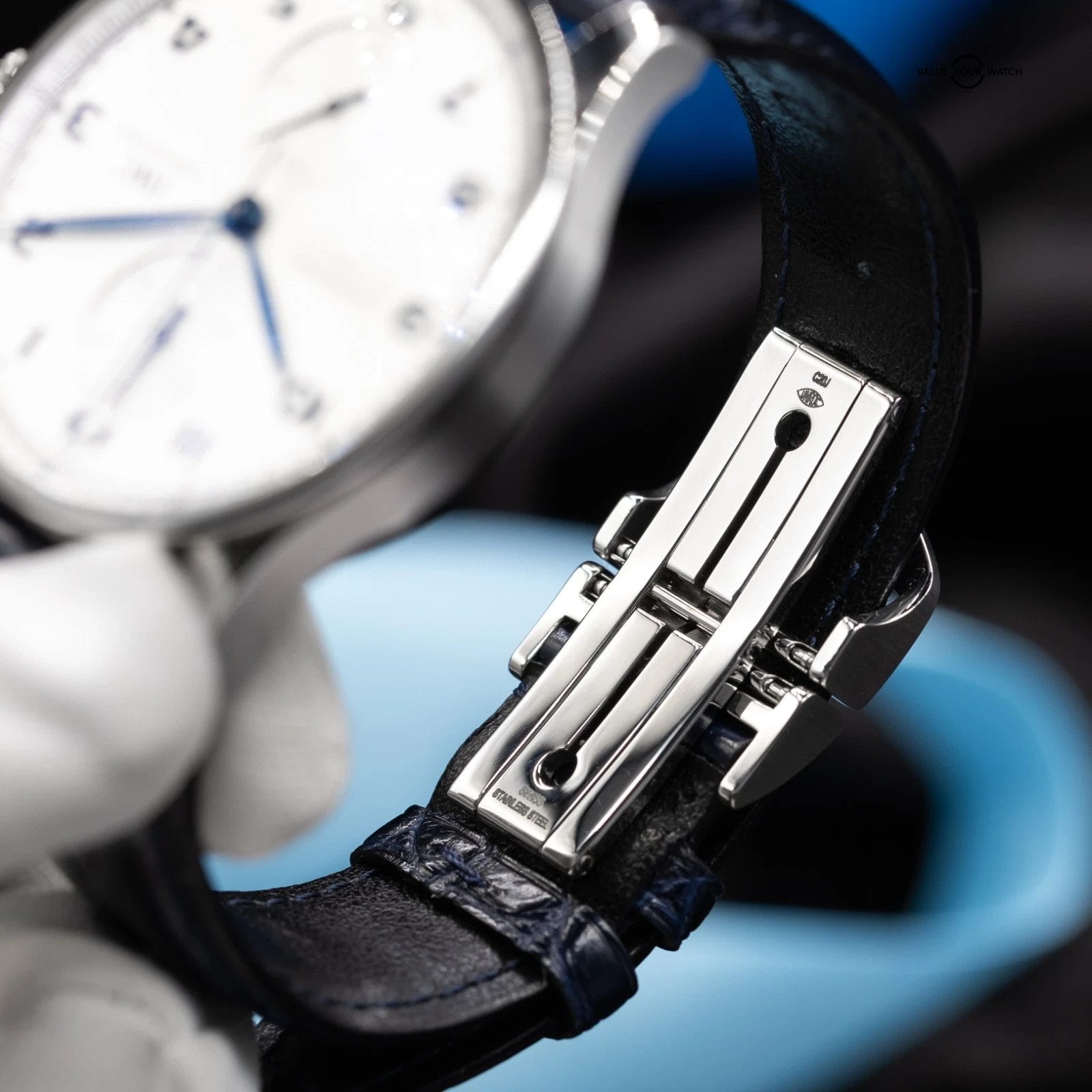 · Strap: Blue alligator leather strap providing strong contrast and refined presence