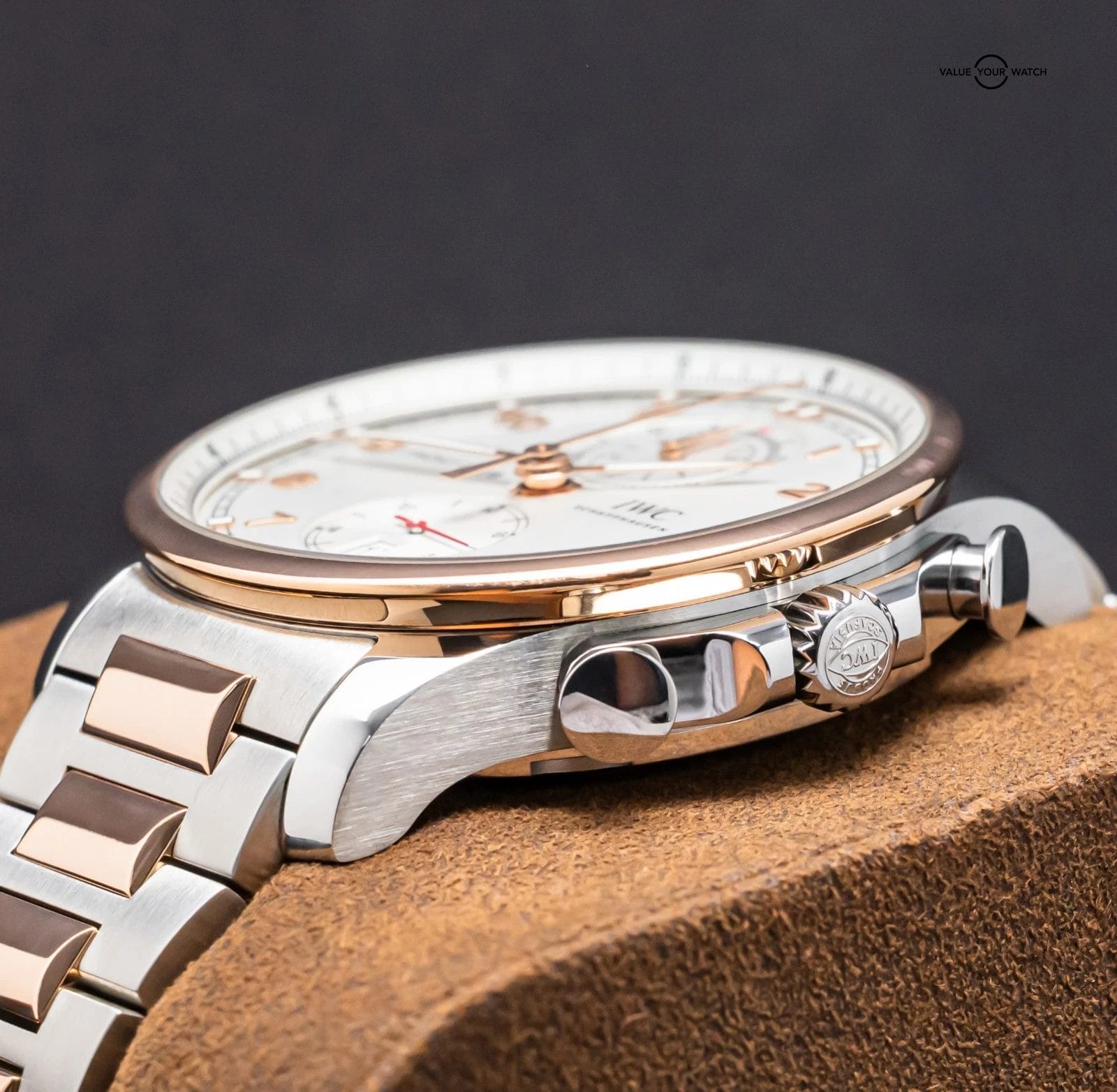 STUNNING IWC Portugieser Yacht Club Chronograph in 18K Rose Gold & Stainless Steel with Silver Dial on Matching 18K Rose Gold & Stainless Steel Bracelet! Arrives as watch only and was purchased from IWC in April 2022. Have peace of mind, this piece is WARRANTIED through IWC until April 2030, a huge value-add! IWC is one of the oldest watch brands in existence, and the Portugieser is an iconic chronograph in the watch community with big brand heritage. This is a RARE find, I’ve never been offered another of these Two-Tone Yacht Clubs, take advantage of a striking watch on wrist!