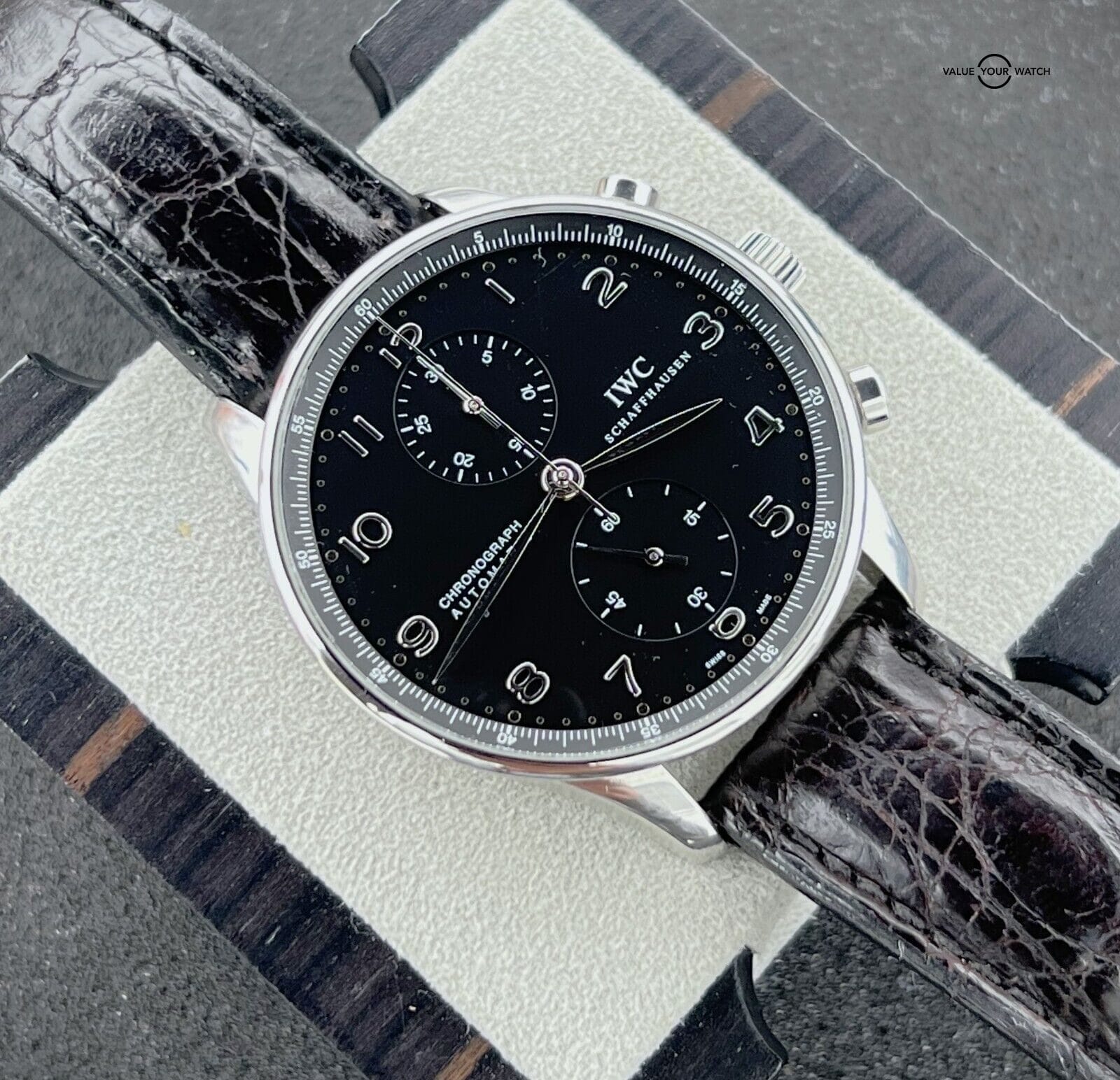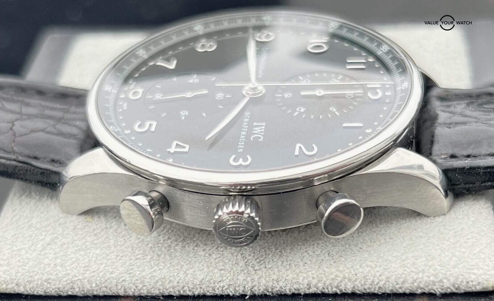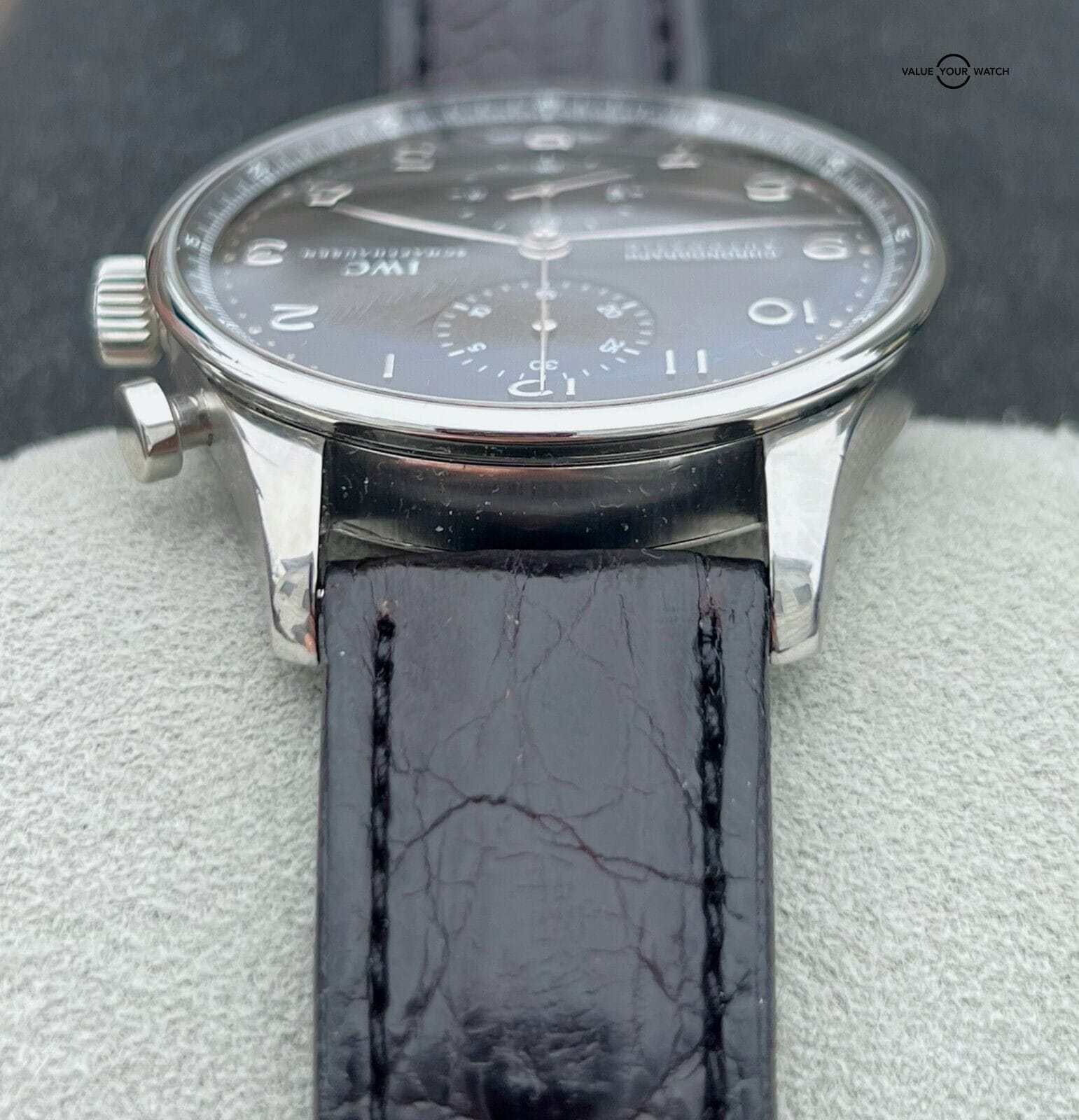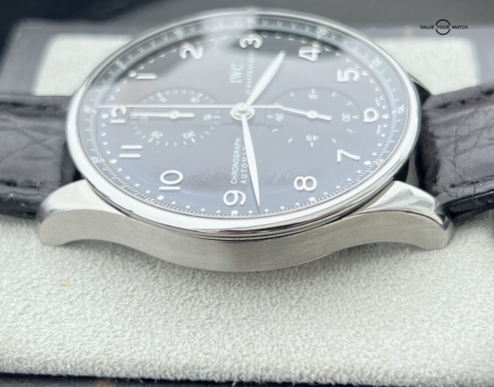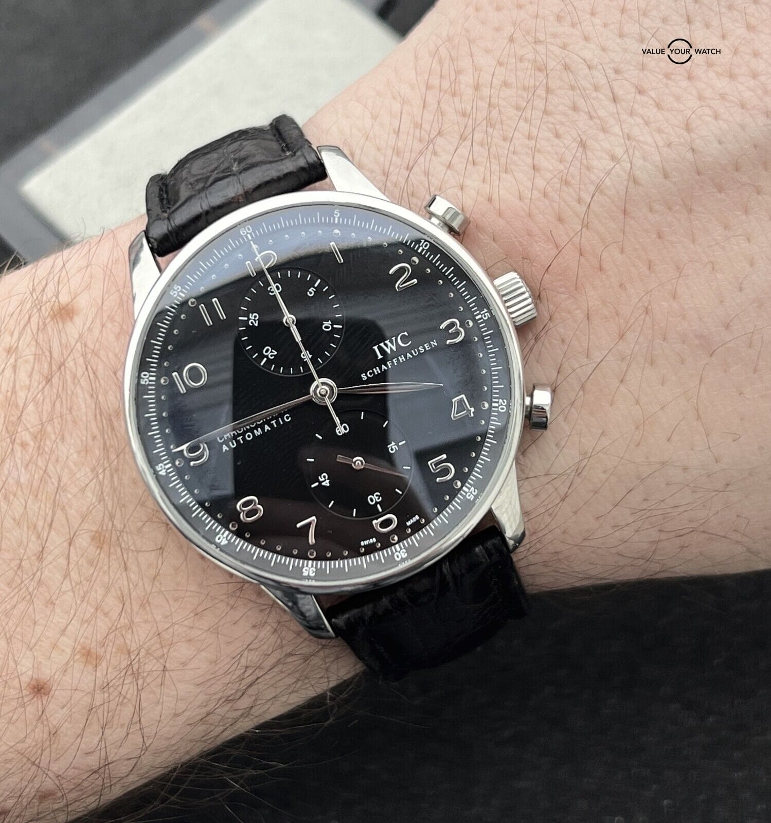 IWC Portuguese Chronograph Automatic 40.9mm Stainless Steel IW371438 This beautiful IWC is in nice pre-owned t condition and comes as a watch only sale. MSRP on this watch when purchased new was $7,400. The strap is still in decent condition. The AR coating on the crystal has some light wear. Mechanically the watch is functioning well. The crystal is clean with no nicks or scratches. Serial numbers & names are blurred in photos only for privacy reasons. I am happy to answer all questions about the watch. Just reach out to me via messages. I have many references in the watch world and am happy to provide as many as needed. Feel free to search my username “thegolferguy” in the Rolex Forums under the “Who’s Who” section and see ample feedback.