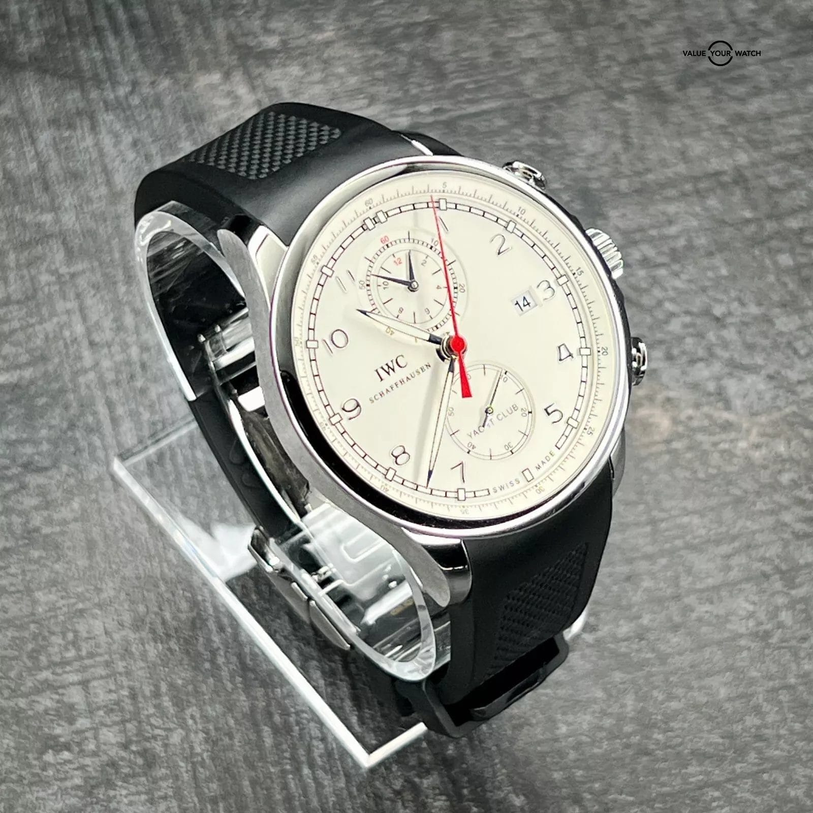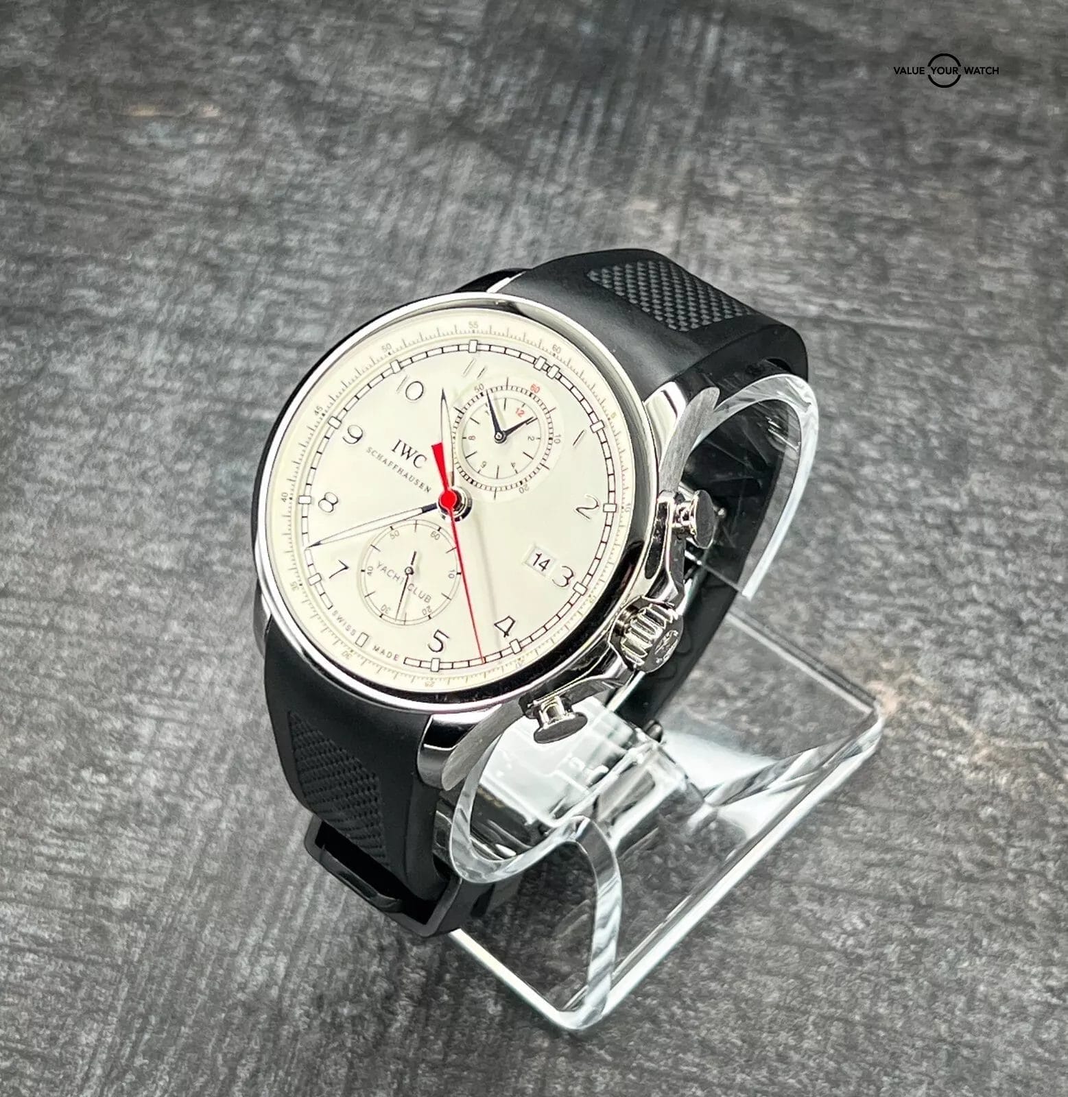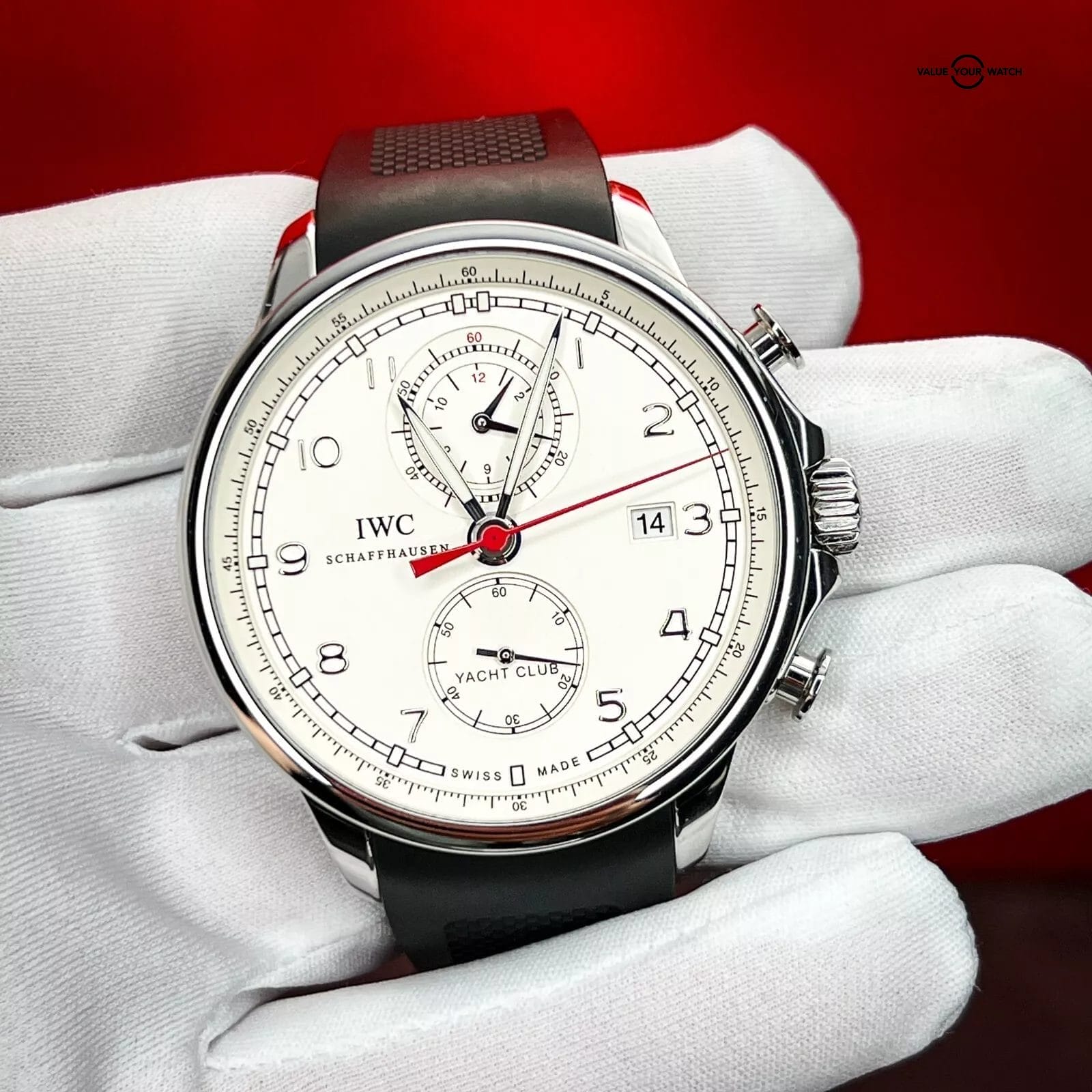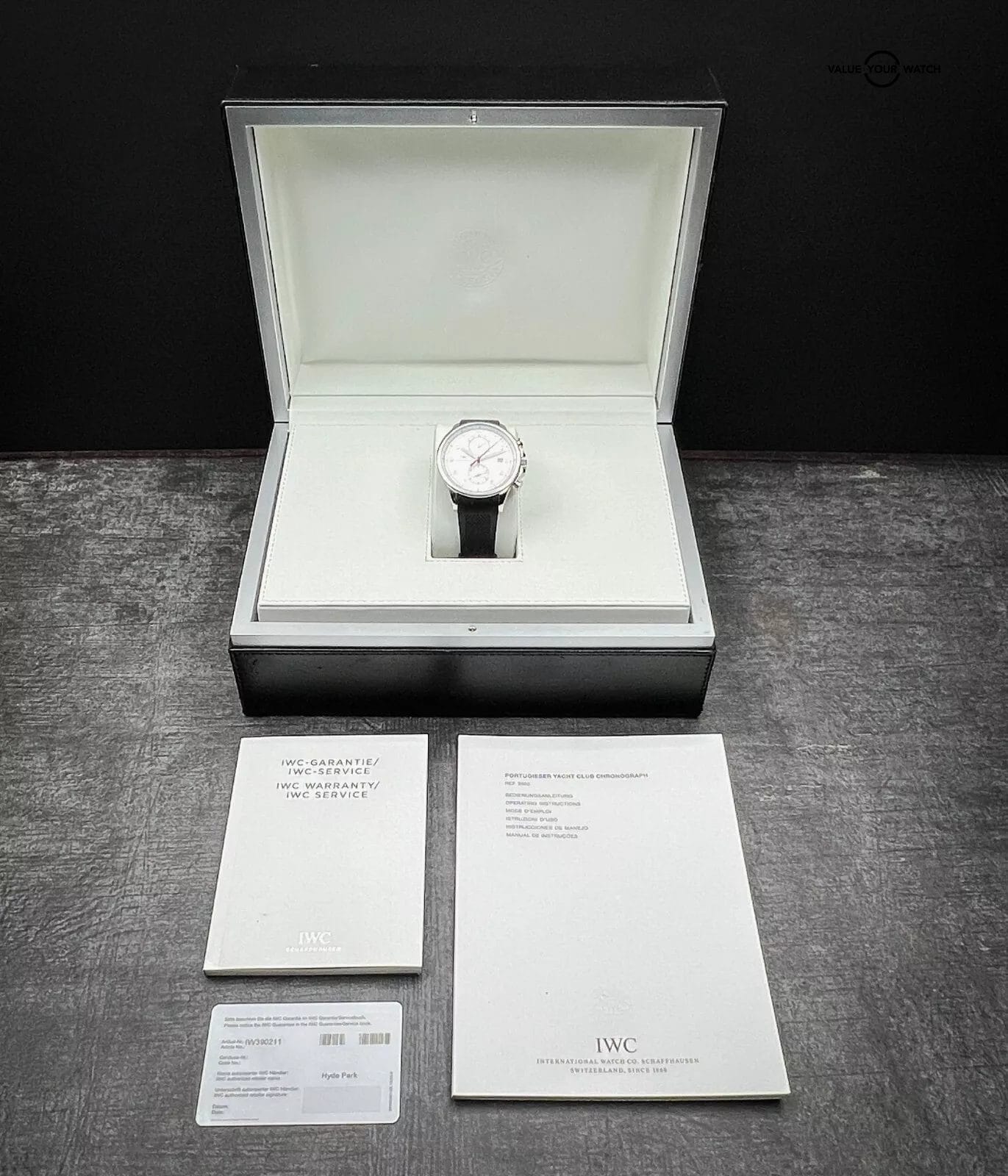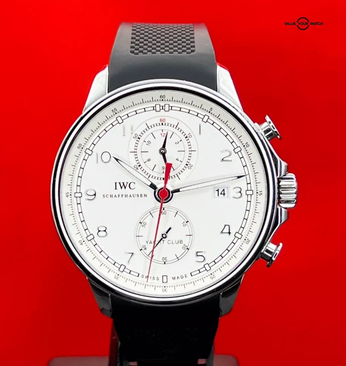 DESCRIPTION The IWC Schaffhausen Portuguese Yacht Club Chronograph IW390211 is a true masterpiece of timekeeping that captures the essence of maritime adventure and luxury. With its stunning design and precision engineering, this watch is the perfect companion for anyone who loves style, function and values excellence in craftsmanship.With a stainless steel case that boasts a bold and versatile design. It can complement both formal and casual occasions. Additionally, the watch features a unique Flyback function that enables the wearer to reset the chronograph without needing to stop it first. The white dial is accentuated with black and red details. The watch boasts polished steel Arabic numerals and hands, with only the hands filled with luminescent material for visibility in low-light conditions. Additionally, the seconds hand is colored red, providing a striking contrast against the dial. The watch features two subdials positioned at the 6 and 12 o’clock positions, while the date display is located at 3 o’clock.This exceptional timepiece is powered by an automatic self-winding movement and is renowned for its unparalleled accuracy and dependability and boasts an impressive power reserve of up to 68 hours. With a remarkable water resistance of up to 60 meters, this watch is perfect for water-related activities while maintaining its unparalleled precision and reliability.The IWC Portuguese Yacht Club Chronograph is a unique luxurious timepiece for those who enjoy sports activities and want a reliable and accurate experience. If you are looking for a high-quality wristwatch that combines style and functionality, then this watch is perfect for you.Includes watch, IWC Box, Manual, Booklet and warranty card.CONDITION Watch is in excellent condition. All photos are taken by our in-house photographer of the actual item and is the best visual description of the condition we can provide. We do not use any stock photos. Please refer to the photos for condition. If you need additional photos or have any questions, please feel free to contact us. AUTHENTICITY We fully stand behind and guarantee that all our pieces are 100% authentic. For your extra peace of mind, all of our pieces are backed by eBay’s Authenticity Guarantee. Each piece is inspected by an independent expert before you receive it, so you can buy in complete confidence that it is authentic and just as we have explained in our listing. SHIPPING TERMS All domestic shipments have a 2-day handling time and are shipped using Fed Ex 2 Day Service. All shipments are fully insured, and tracking numbers provided. For International Shipping please contact us directly for assistance to your destination. RETURNS Returns accepted for 14 days from purchase. Buyer responsible for any return shipping costs and must be in the exact condition they were delivered with all boxes, manuals and paperwork included. WARRANTY & DISCLAIMER Adrenaline Timepieces is not a dealer nor affiliated with any of the brands that we sell. All items are considered as pre-owned. Any warranty provided is the remaining factory warranty if still valid. ABOUT THE SELLER I am a professional watch collector and love anything and everything about watches. I am 100% committed to providing you with beautiful timepieces at reasonable prices backed by my exceptional customer service. I am happy to answer any questions about the watch you might have. Just reach out to me via messages. I have many references in the watch world and am happy to provide them as needed. I look forward to helping you secure your next timepiece!