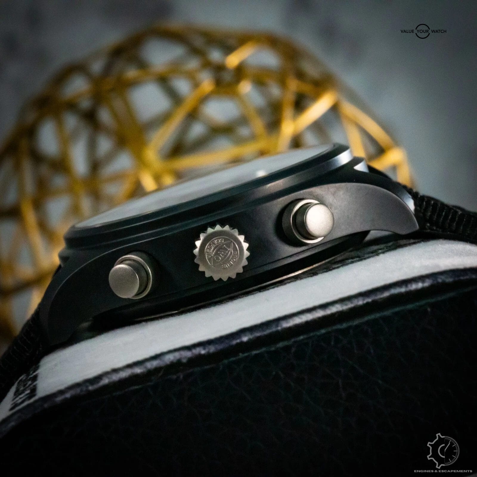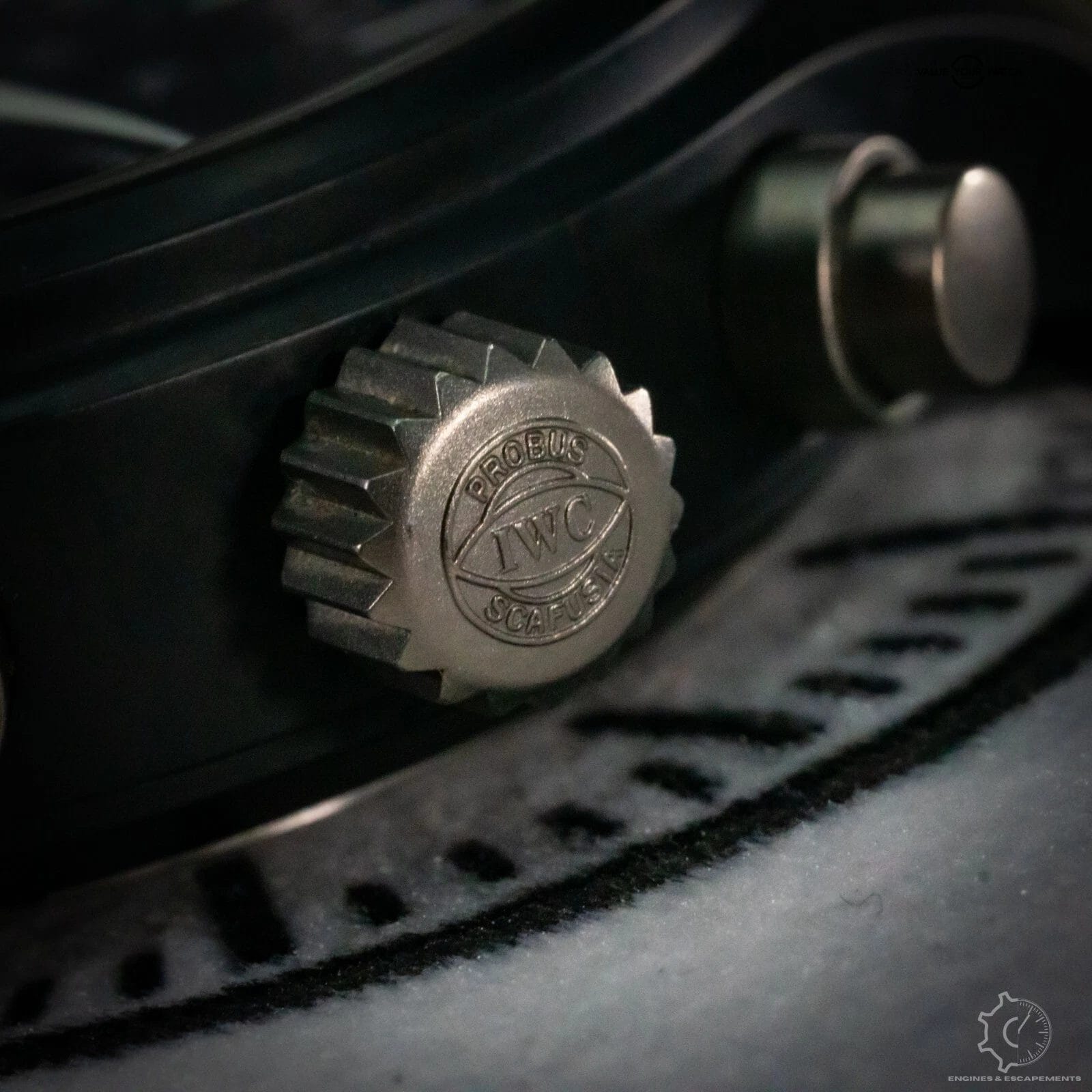 This is more than a chronograph—it’s a tool engineered for action. Inside, IWC’s in-house automatic movement beats with unwavering resolve, protected by a soft-iron inner case that shields it from magnetic interference. The chronograph layout is surgical and balanced, built to track time with the same intensity as the pilots who inspired it.