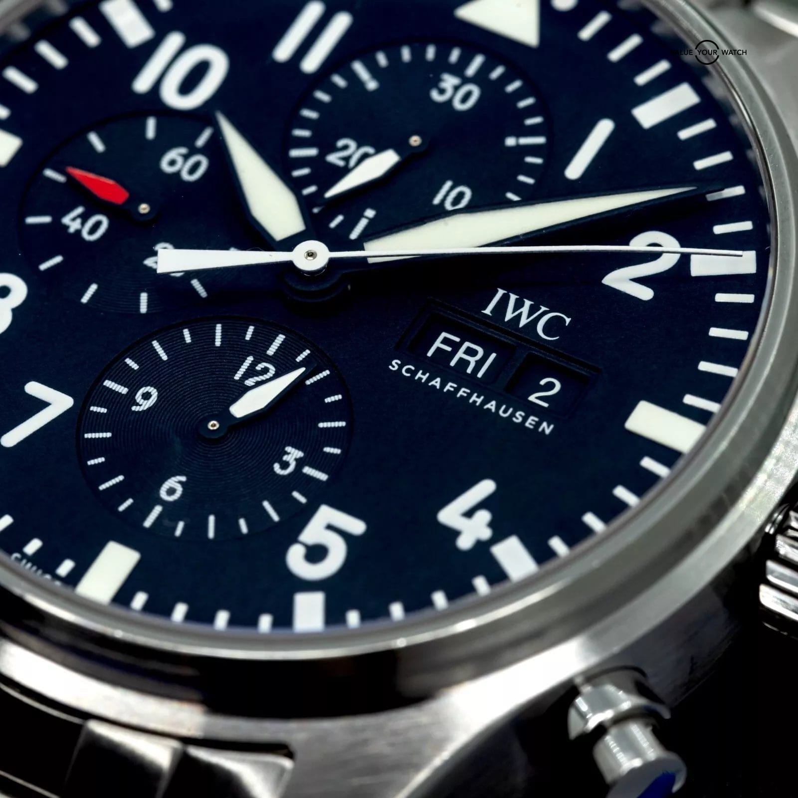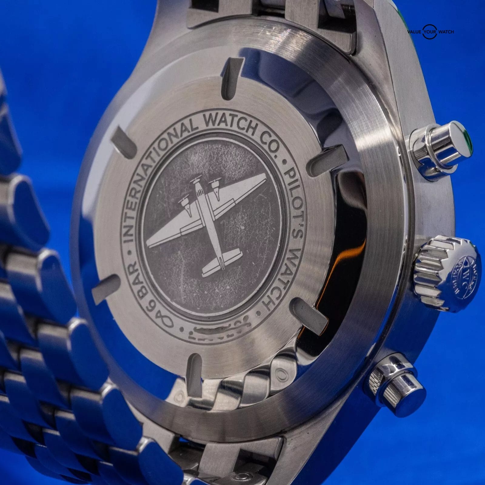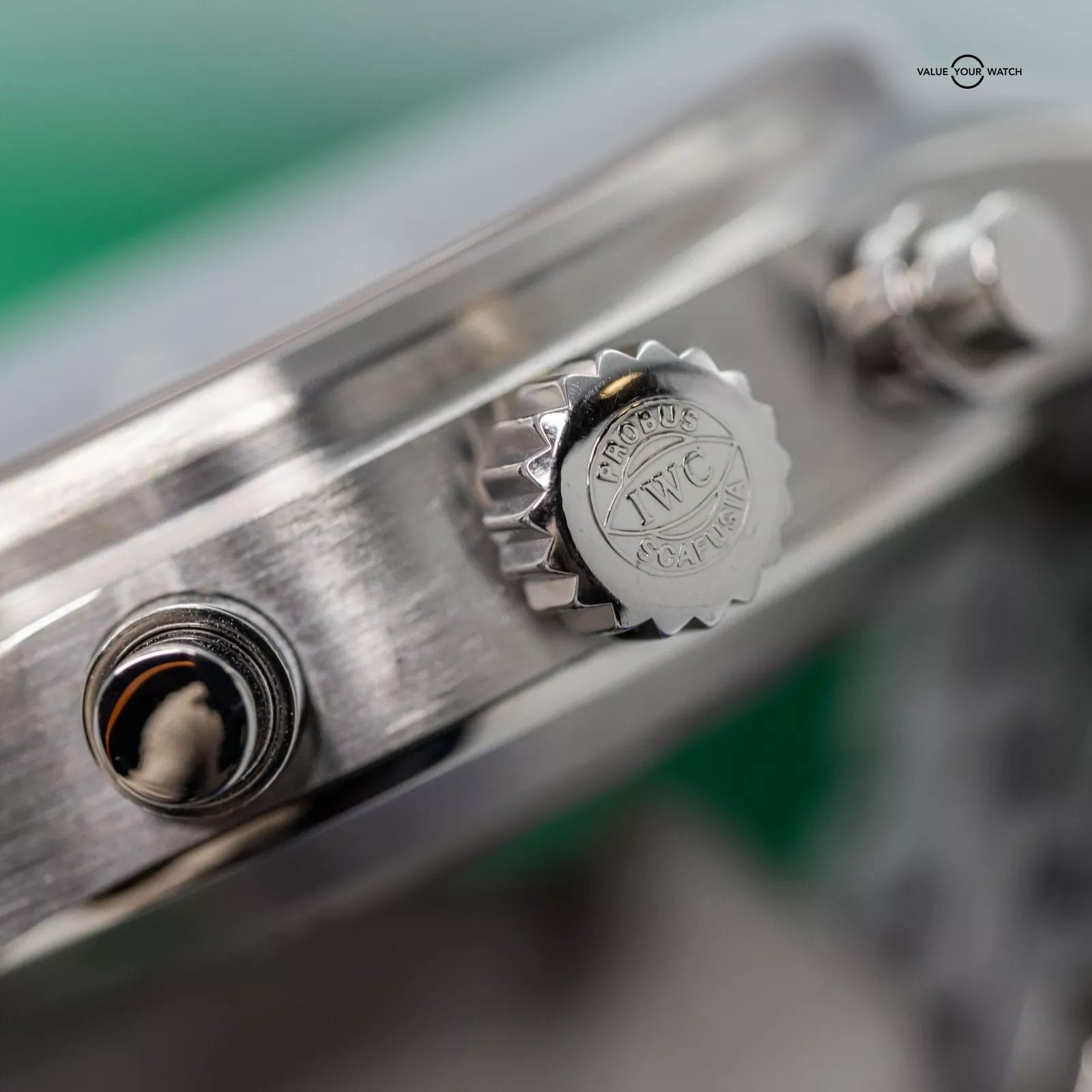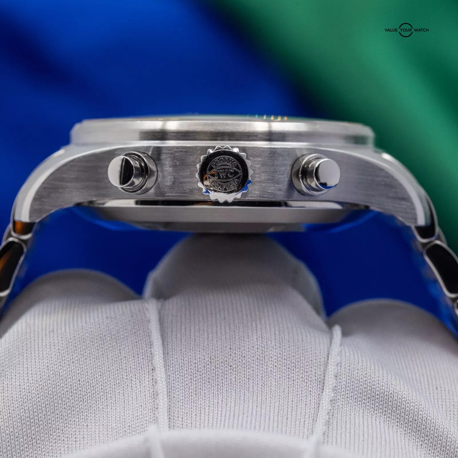 The IWC Schaffhausen Pilot Chronograph IW377710 serves as a shining testament to the brand’s unwavering commitment to exceptional engineering, innovation and excellence in watchmaking making it a coveted piece for collectors and enthusiasts alike. Its harmonious blend of timeless design and impeccable craftsmanship makes it an outstanding choice for individuals who value both style and precision in their timepieces.