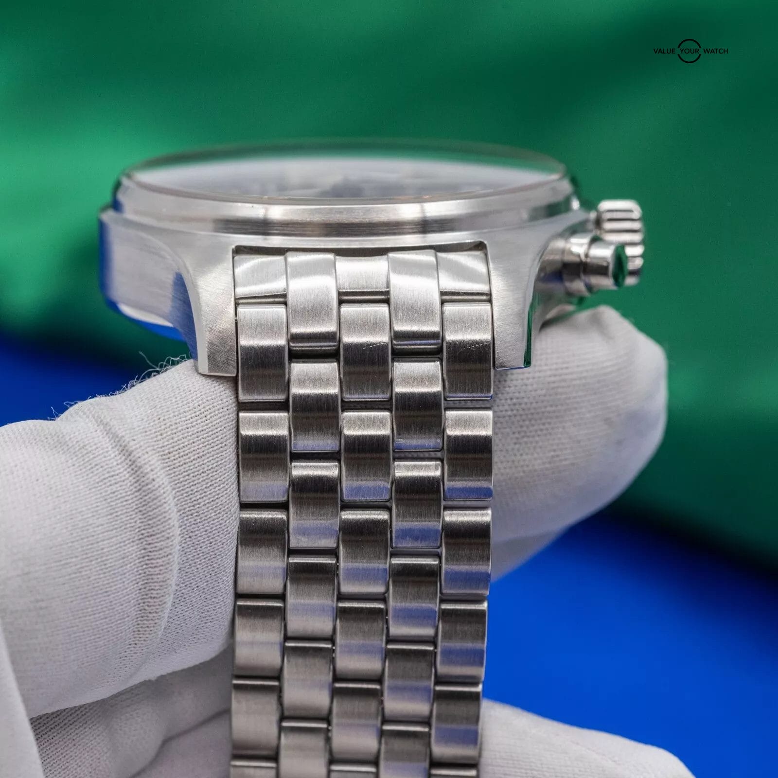 Watch is in Excellent condition. All functions are working properly and keeping accurate time on timegrapher. Serial numbers are obscured in photos for privacy reasons. All photos are taken by our in-house photographer of the actual item and is the best visual description of the condition we can provide. We do not use any stock photos. Please refer to the photos closely for condition. If you need additional photos or have any questions, please feel free to contact us.