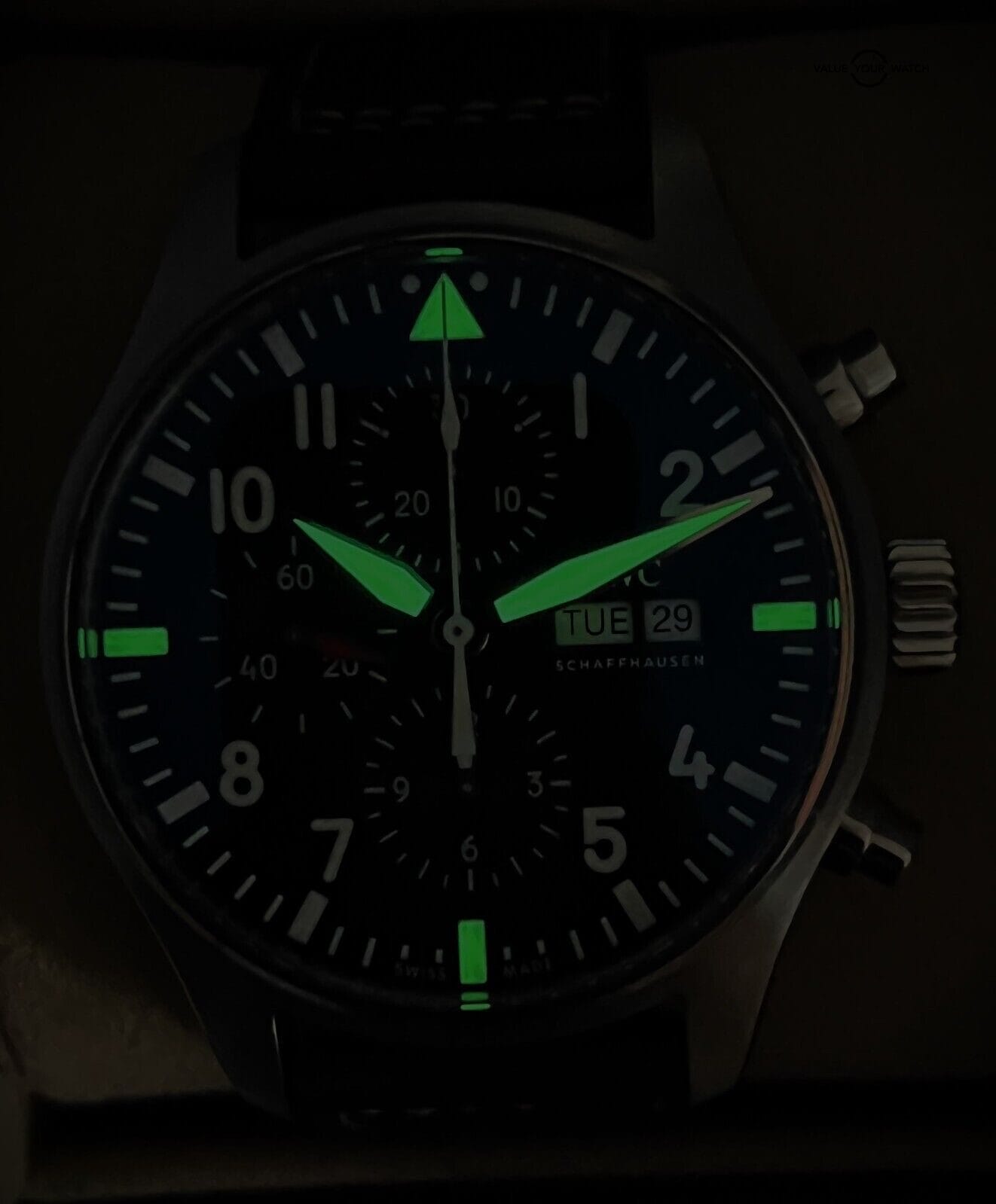 Specification: IWC Pilot’s Chronograph Racing Green Dial 43mm IW377726 BOXES/PAPERS!