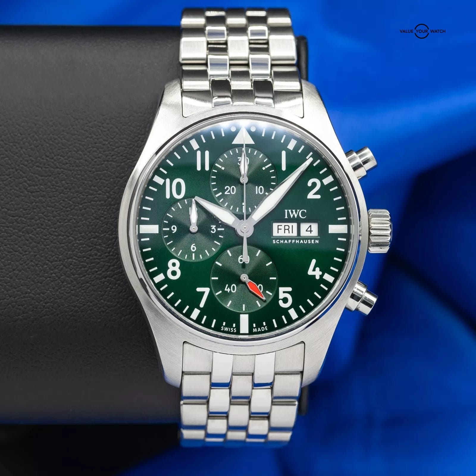 The IWC Schaffhausen Pilot Chronograph (IW388104) serves as a shining testament to the brand’s unwavering commitment to excellence in watchmaking. Its harmonious blend of timeless design, precision performance and impeccable craftsmanship makes it an outstanding choice for individuals who value both style and precision in their timepieces.