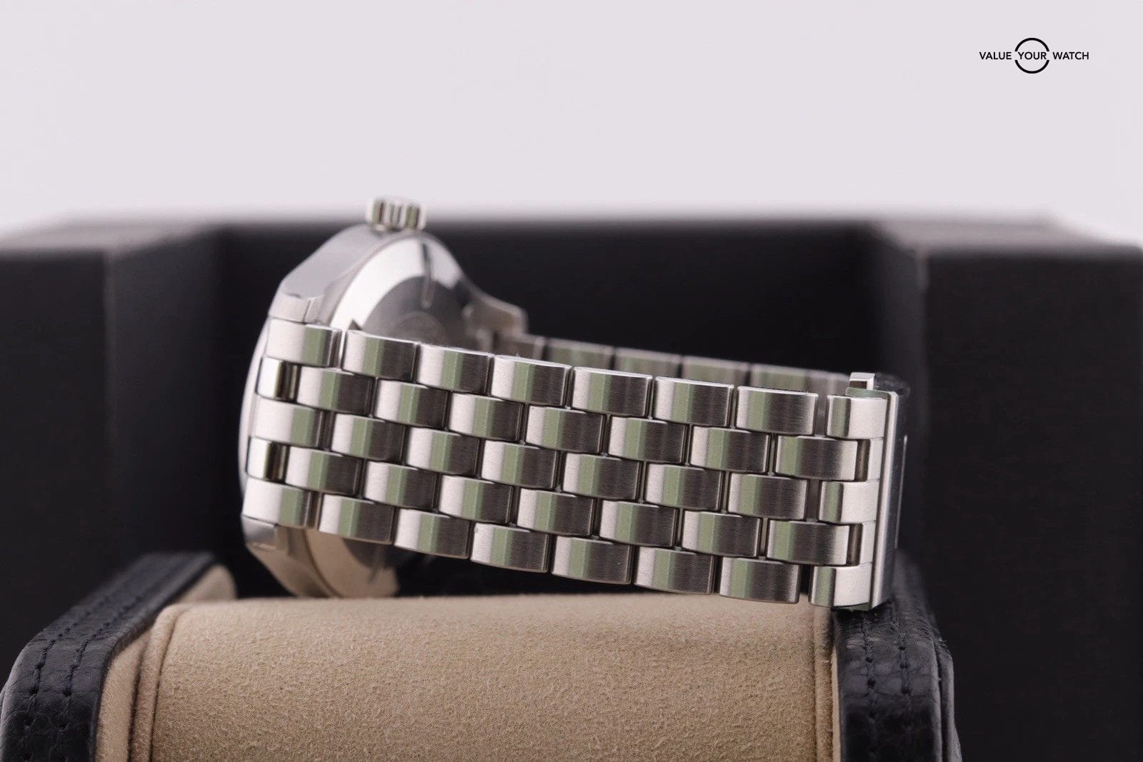 This Mark XVIII presents in beautiful overall condition. The black dial is flawless with crisp white numerals, and the AR-coated sapphire crystal is clean and scratch-free. The stainless steel case and bracelet show only minimal signs of gentle wear — light desk marks are present but nothing deep or distracting.