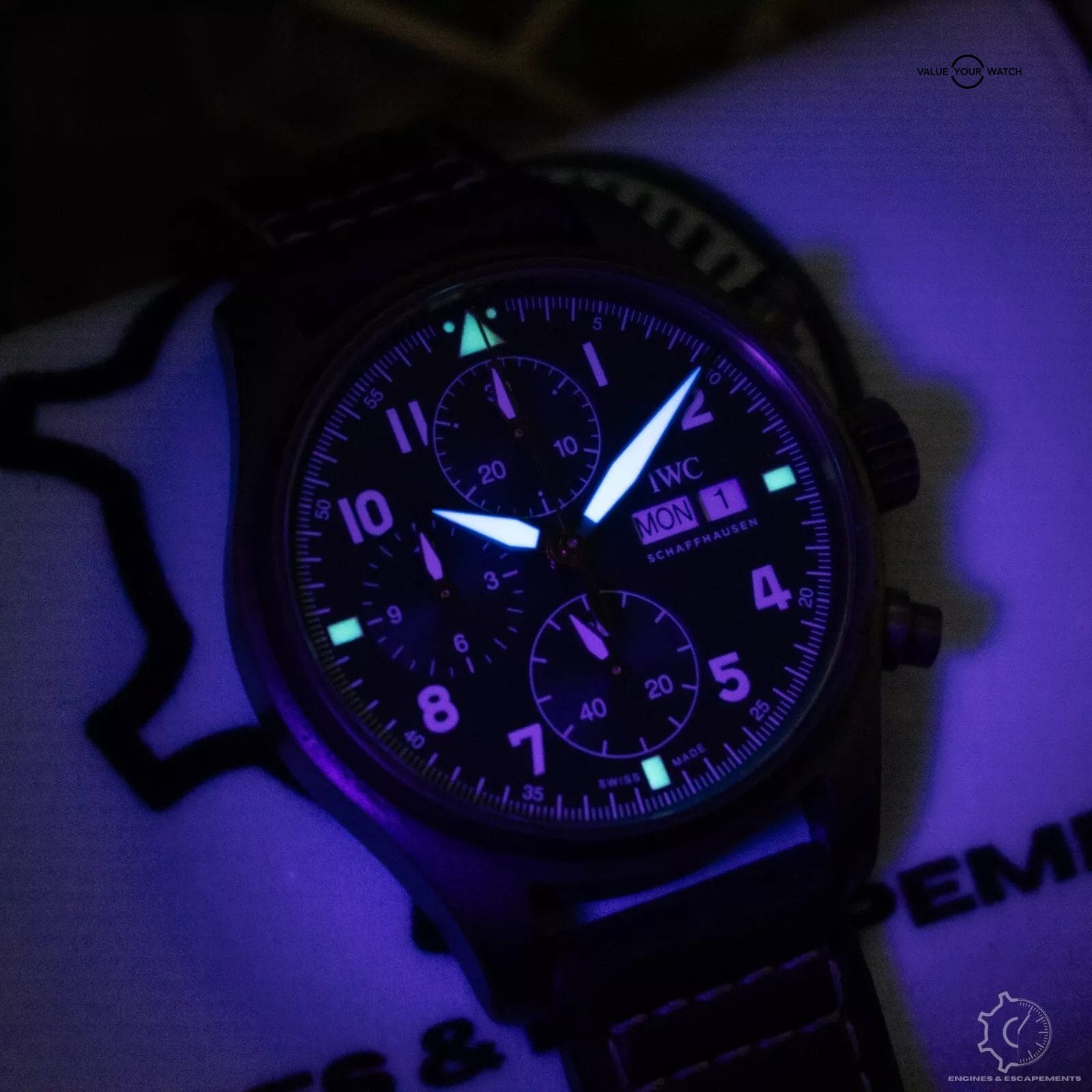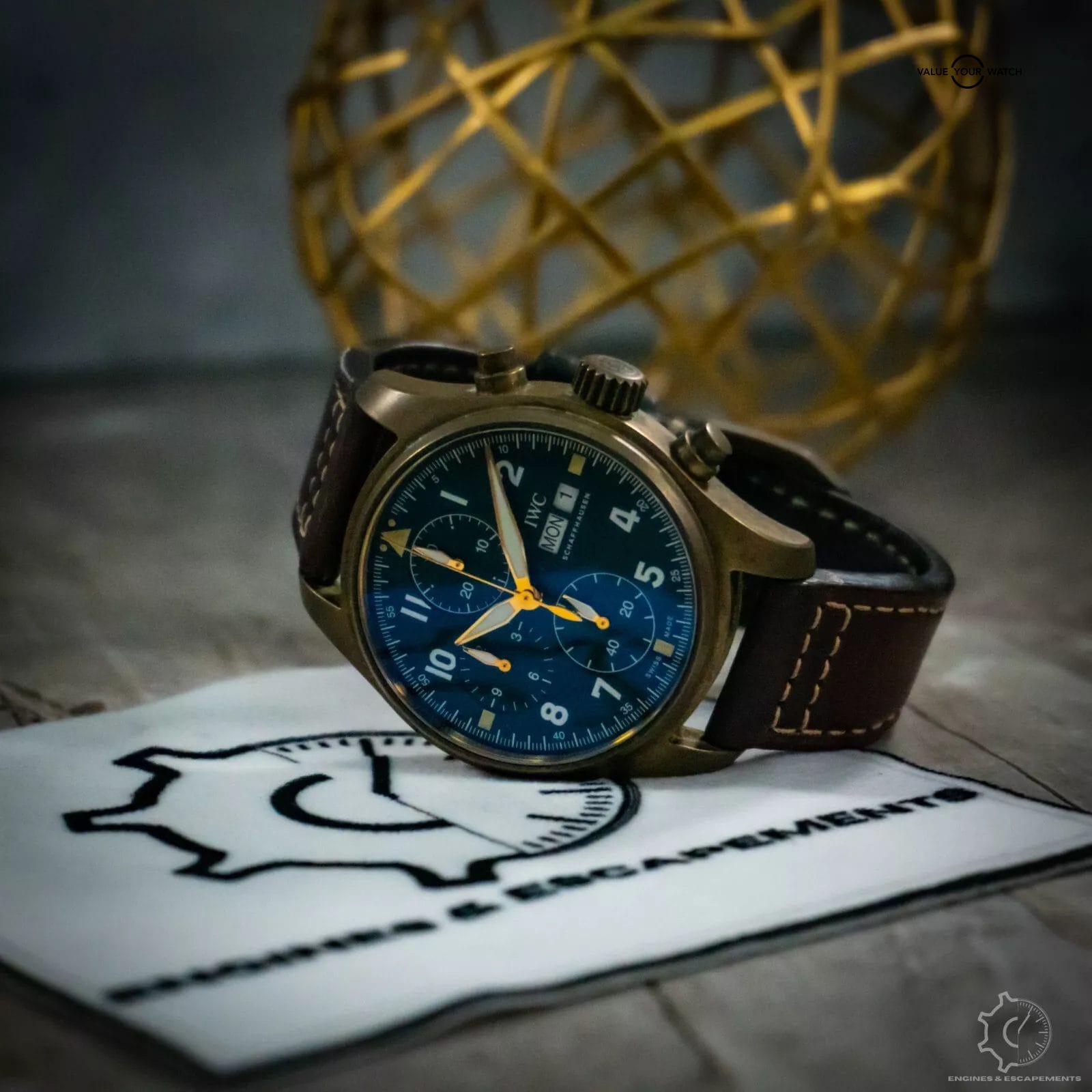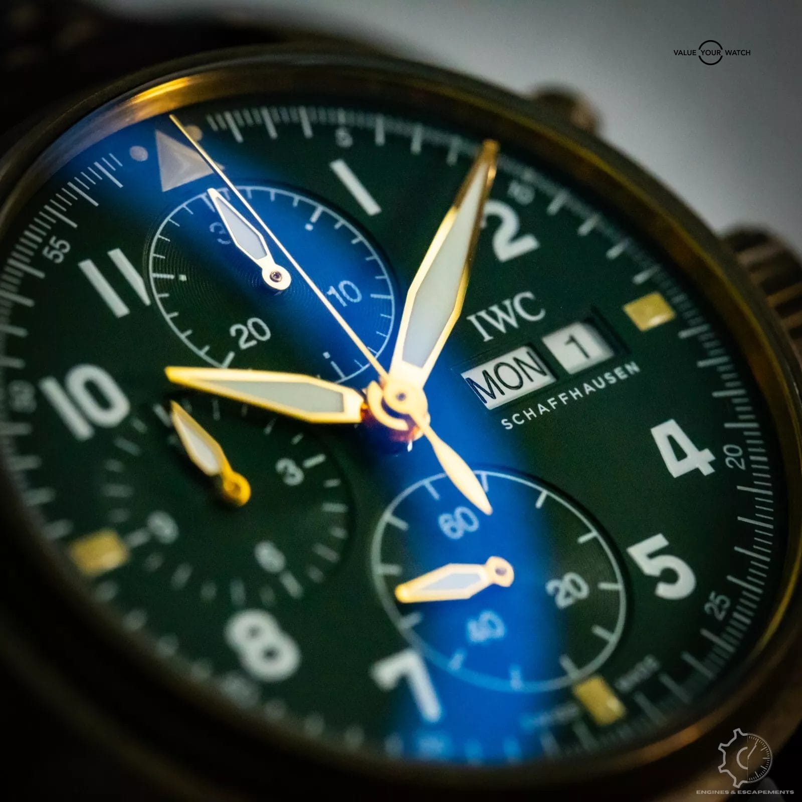 Introducing the IWC Pilot Spitfire Chronograph in bronze with a stunning green dial. A stunning timepiece that combines precision engineering with classic aviation-inspired design.